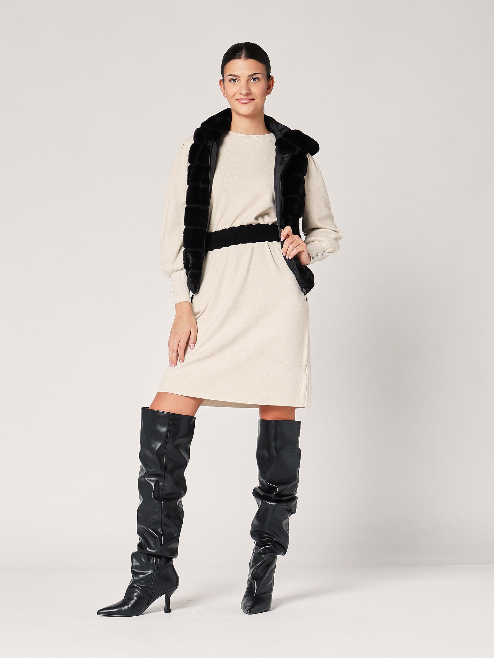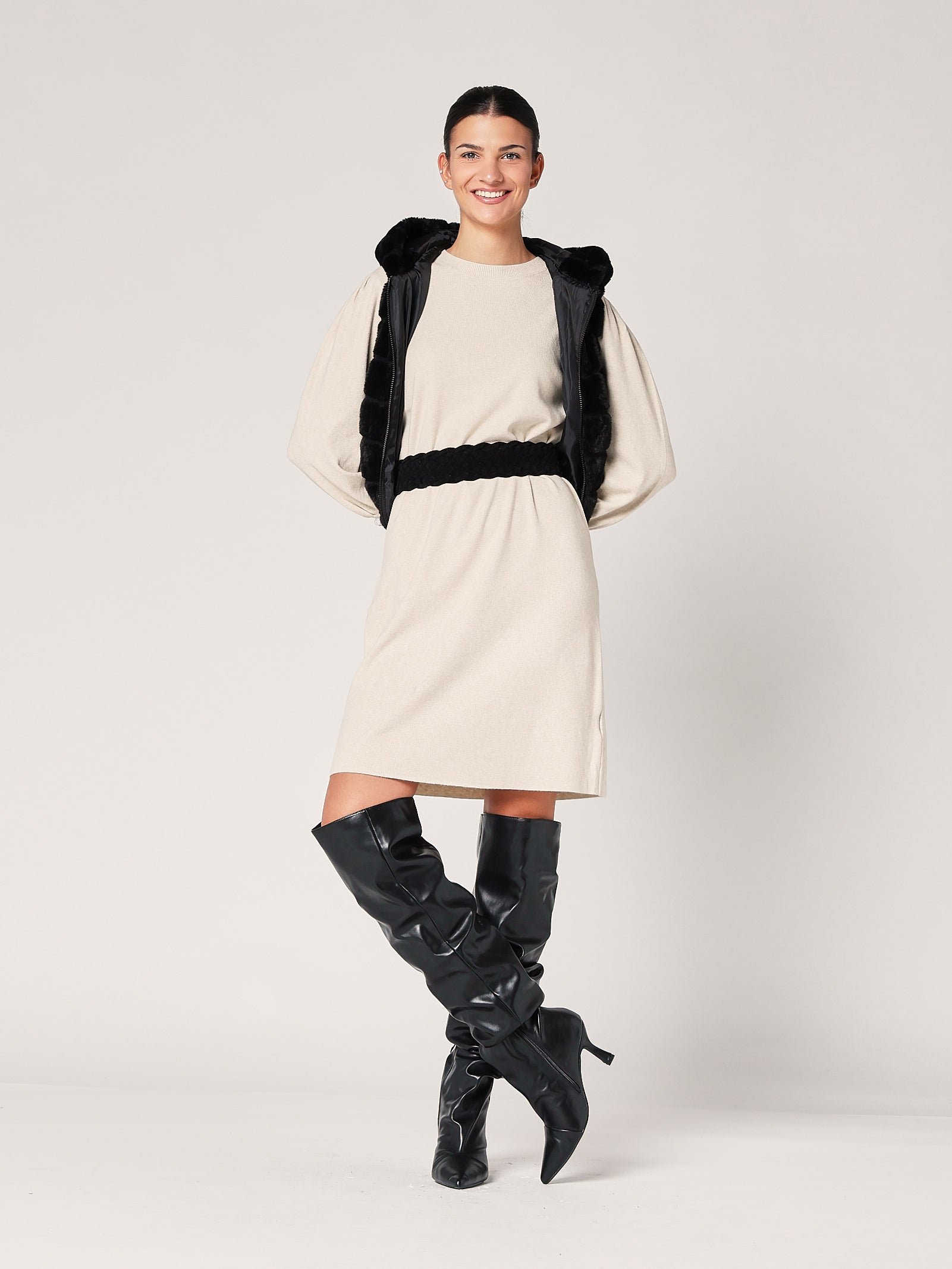 L’abito in maglia che risolve dal mattino alla sera, abito maglia donna con linea pulita, trama morbida e caduta fluida che valorizza senza segnare. Femminile e comodo, lavora bene nei look da ufficio e negli outfit casual, slancia con naturalezza e resta ordinato per ore. Si abbina in un attimo e cambia mood con gli accessori.