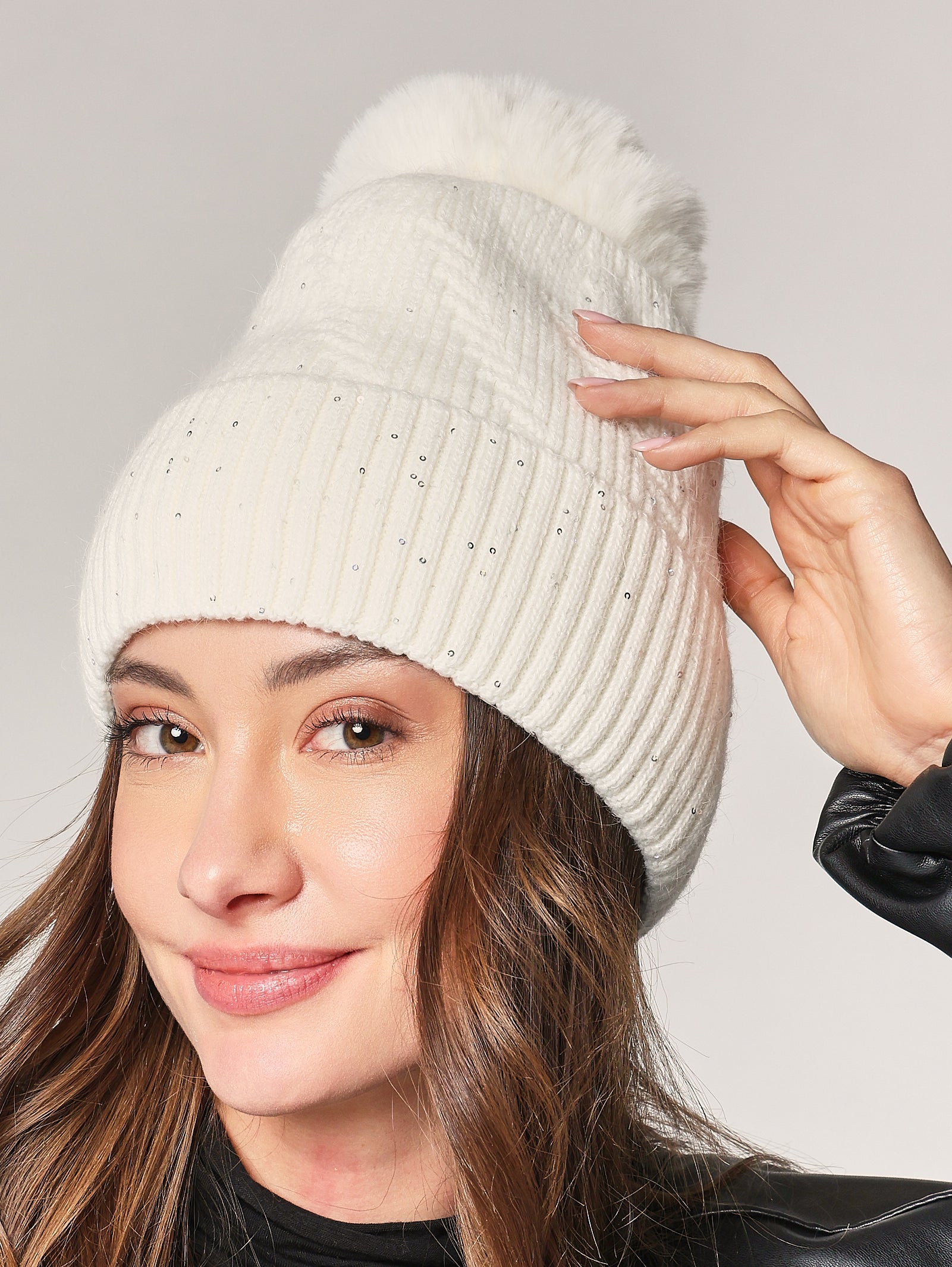 Cappello in maglia con filo lurex, perfetto per aggiungere un tocco luminoso ai look invernali. La texture morbida e la vestibilità elastica lo rendono un accessorio comodo e femminile, ideale per dare luce anche agli outfit più semplici.