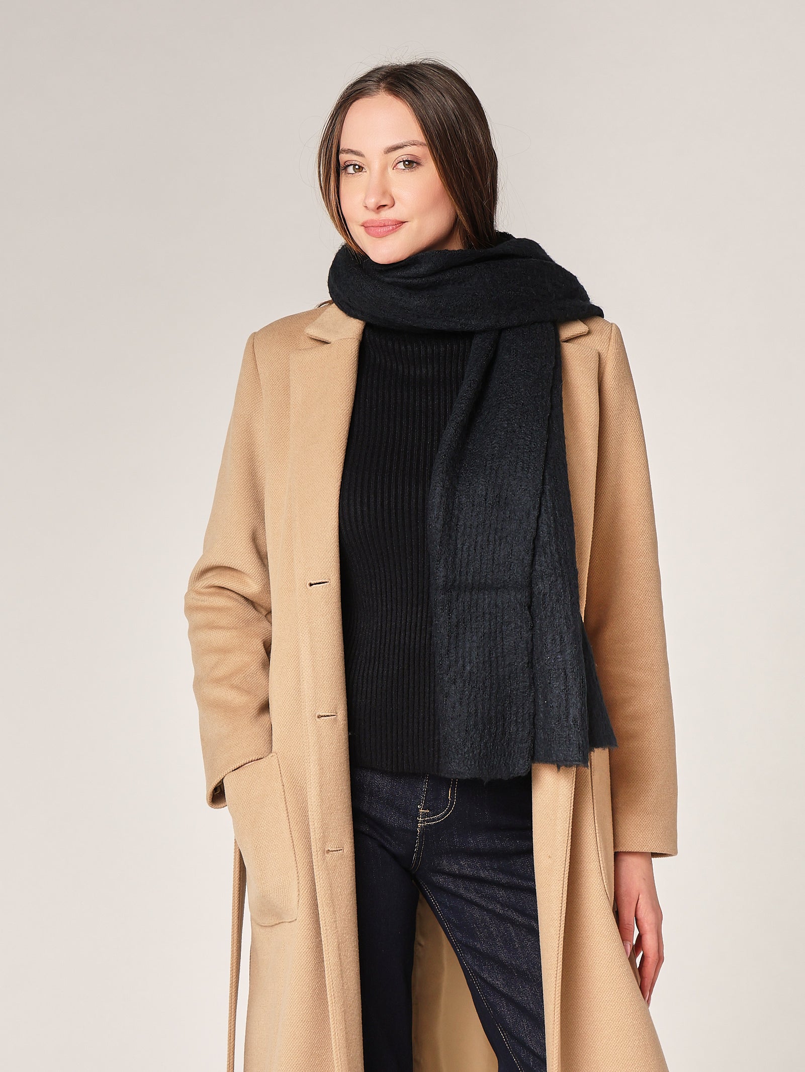 Sciarpa morbida dal design essenziale e avvolgente, perfetta per completare i look invernali con un tocco cozy. La texture soft e la lunghezza generosa la rendono un accessorio versatile, ideale da indossare ogni giorno.
