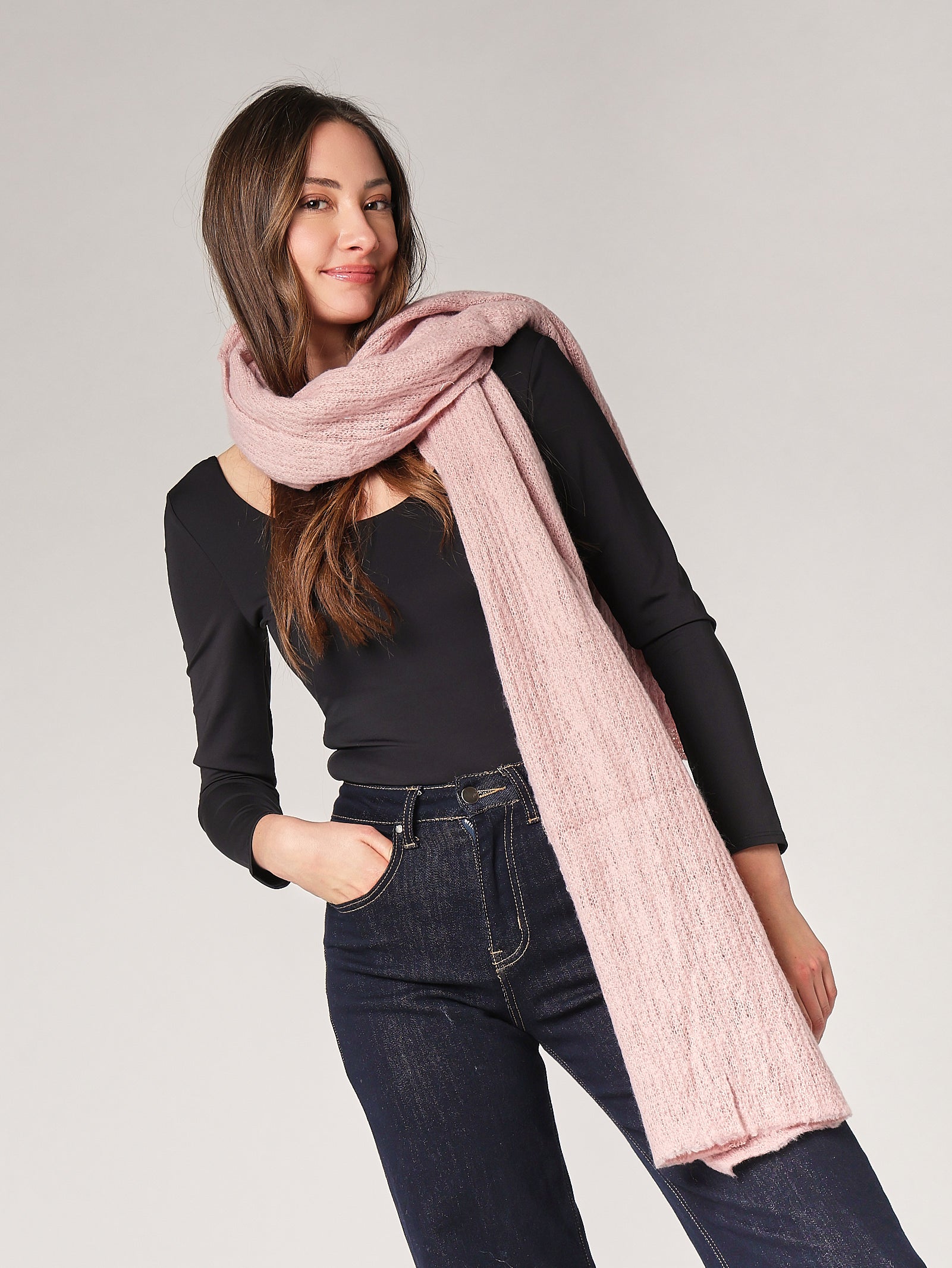 Sciarpa morbida dal design semplice e raffinato, ideale per aggiungere un tocco cozy ai look di stagione. La texture avvolgente e la finitura pulita la rendono un accessorio versatile, perfetto da indossare ogni giorno.