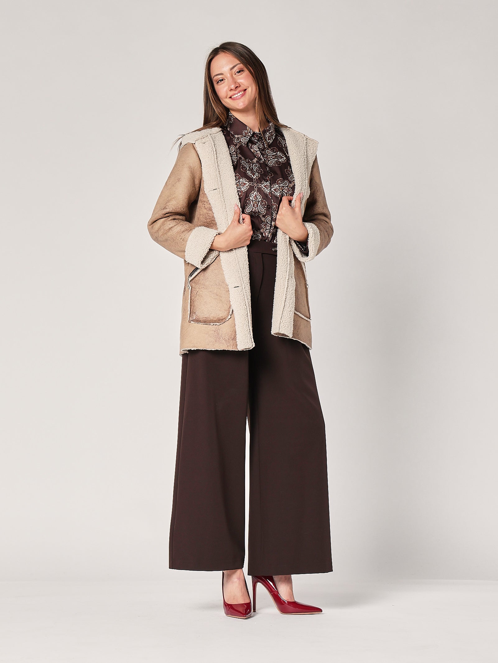 Dettaglio sartoriale: interno effetto pelliccia, bordi rifiniti