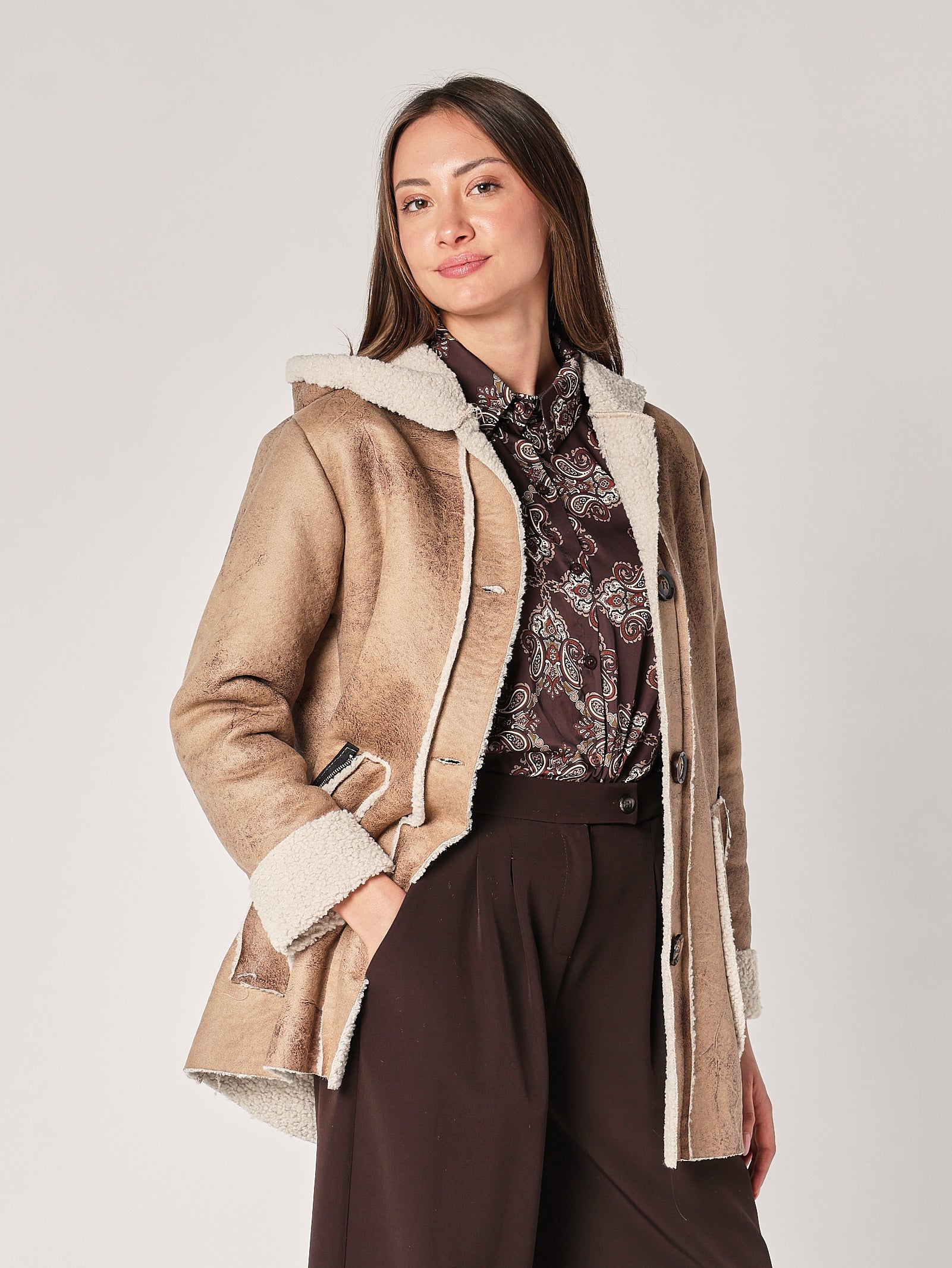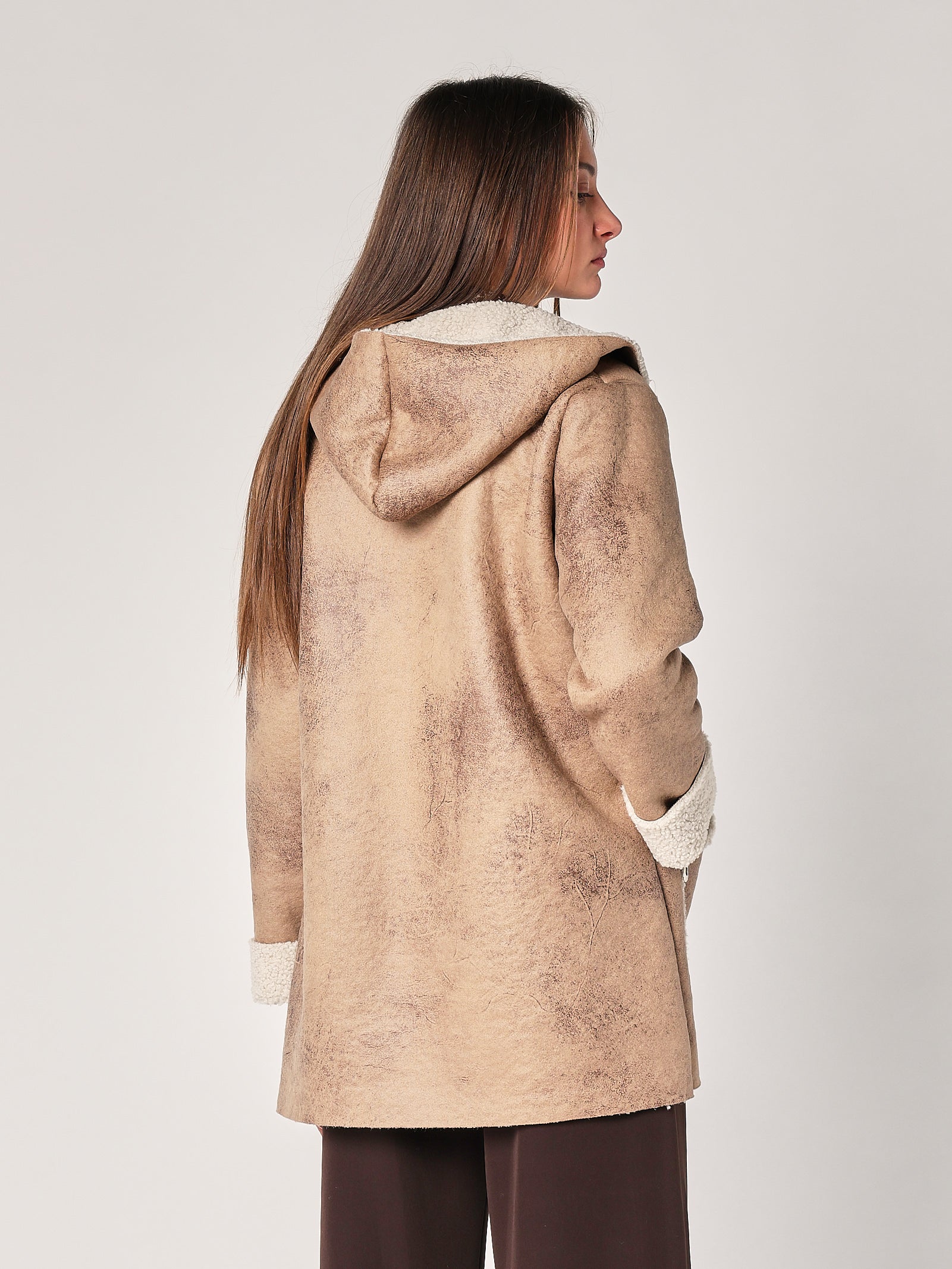 Montone con cappuccio dal taglio morbido e contemporaneo, perfetto per affrontare la stagione fredda con stile. L’interno effetto pelliccia regala calore e volume, mentre la linea pulita lo rende facile da abbinare sia a look casual che più eleganti. Indossalo sopra maglioni chunky, jeans o pantaloni dritti per un equilibrio tra comfort e carattere.