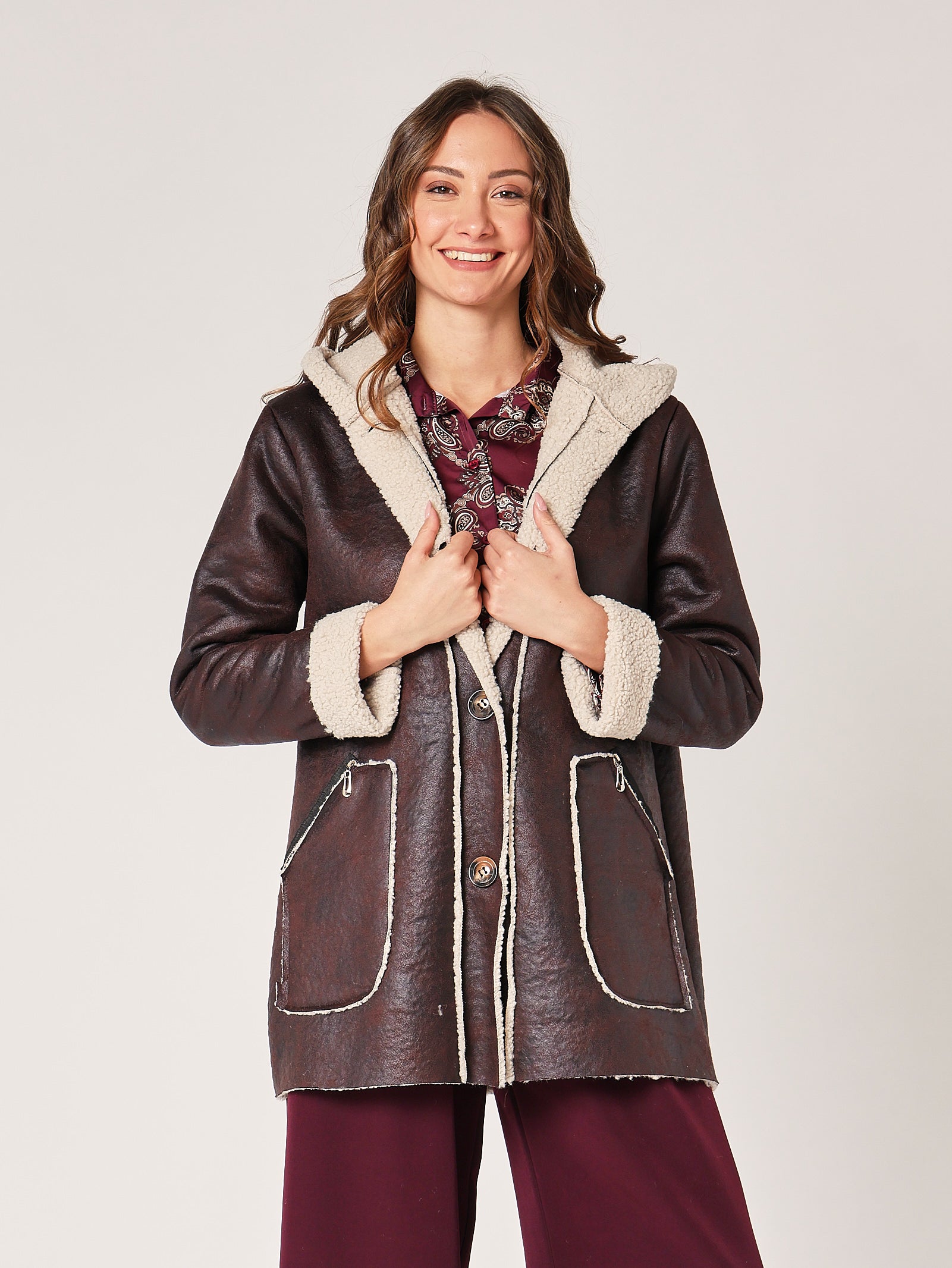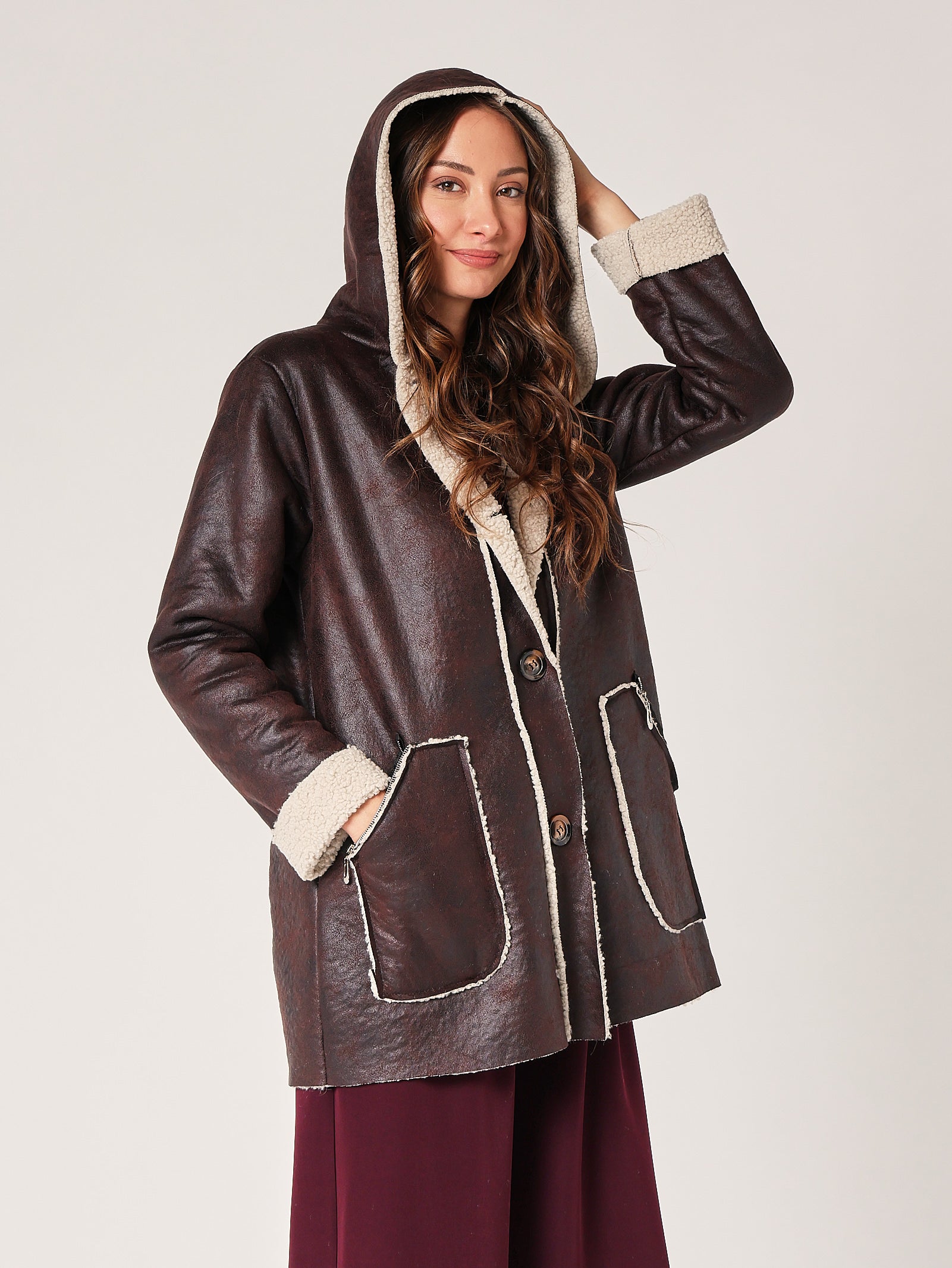Categoria: montone donna con cappuccio, outerwear contemporaneo
