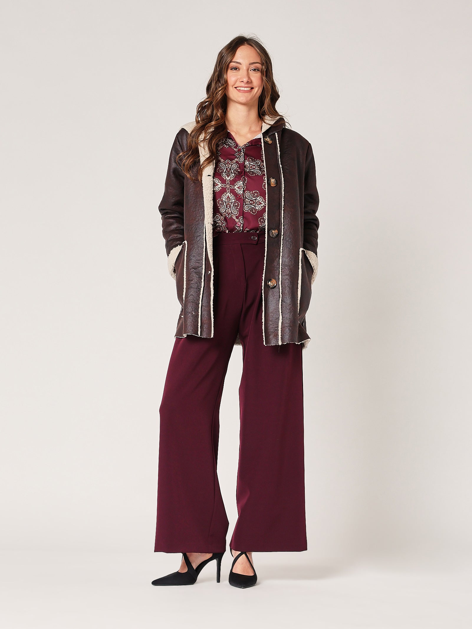 Montone con cappuccio caldo e avvolgente, caratterizzato da una texture morbida e un cappuccio che aggiunge un tocco sportivo al design elegante. Il taglio pulito e la vestibilità comoda lo rendono ideale per completare sia outfit casual che look più raffinati. Perfetto con maglioni dolcevita e pantaloni a vita alta, ma anche sopra abiti midi per un contrasto moderno e femminile.