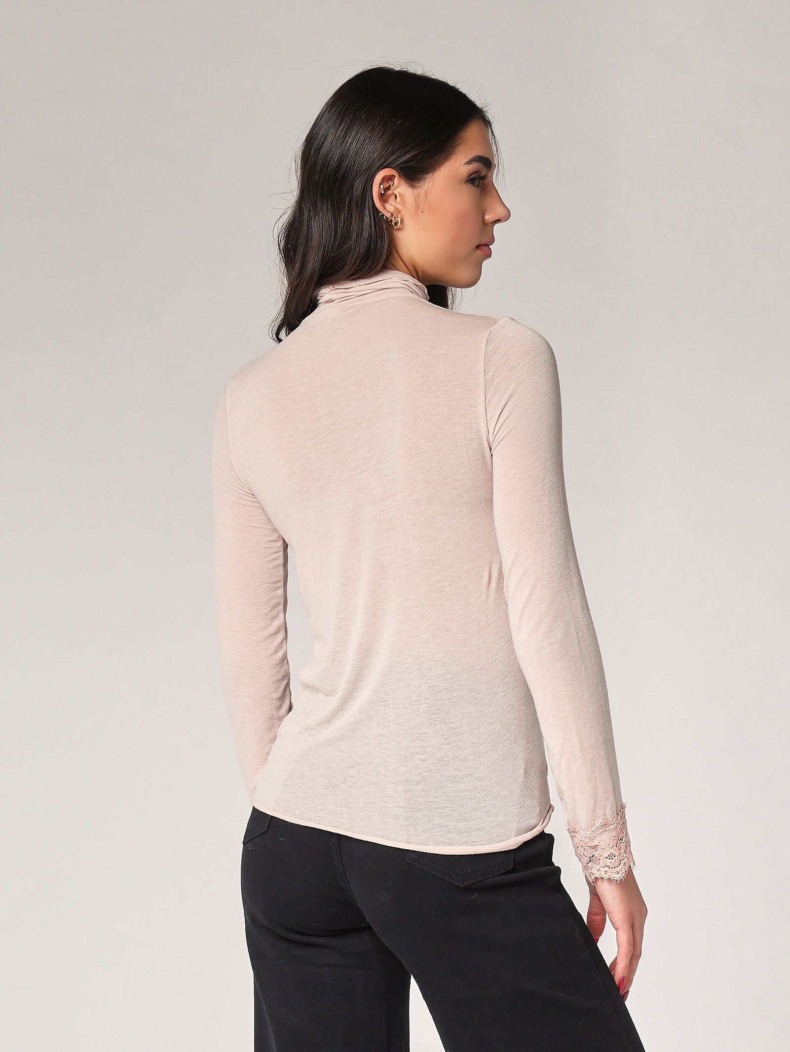 Dolcevita in cashmere con pizzo: un capo intramontabile arricchito da un dettaglio femminile che fa la differenza. Ideale per esaltare outfit minimal o completi più strutturati.