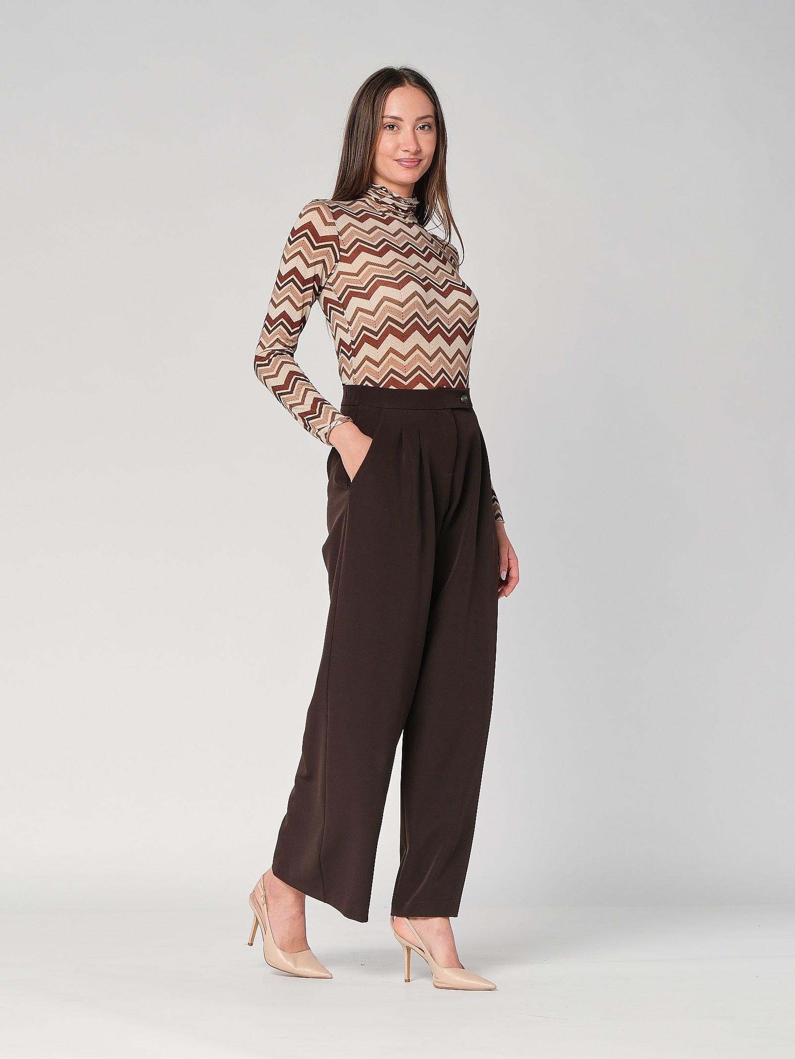 Il dolcevita a zigzag è la base smart che accende il look senza complicazioni: collo alto che incornicia, grafica ritmata che dà personalità, linea pulita che resta impeccabile. È una maglia dolcevita donna comoda ma decisa, perfetta da sola o sotto giacca per alzare subito il tono. Se cerchi un pullover donna che unisce carattere e praticità, questo dolcevita è l’asso facile da giocare tutti i giorni.