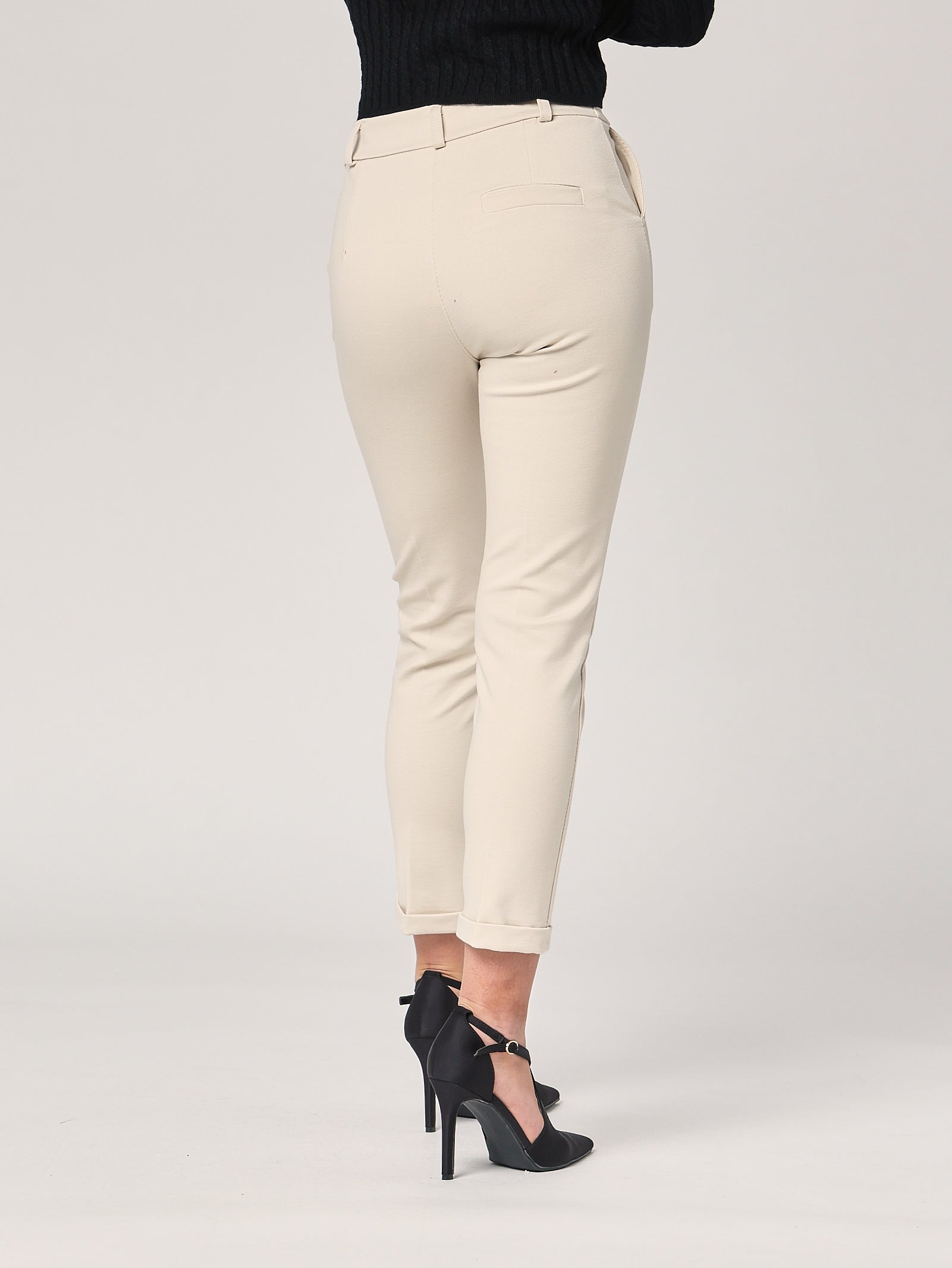 Dettaglio sartoriale: piega centrale e chiusura pulita