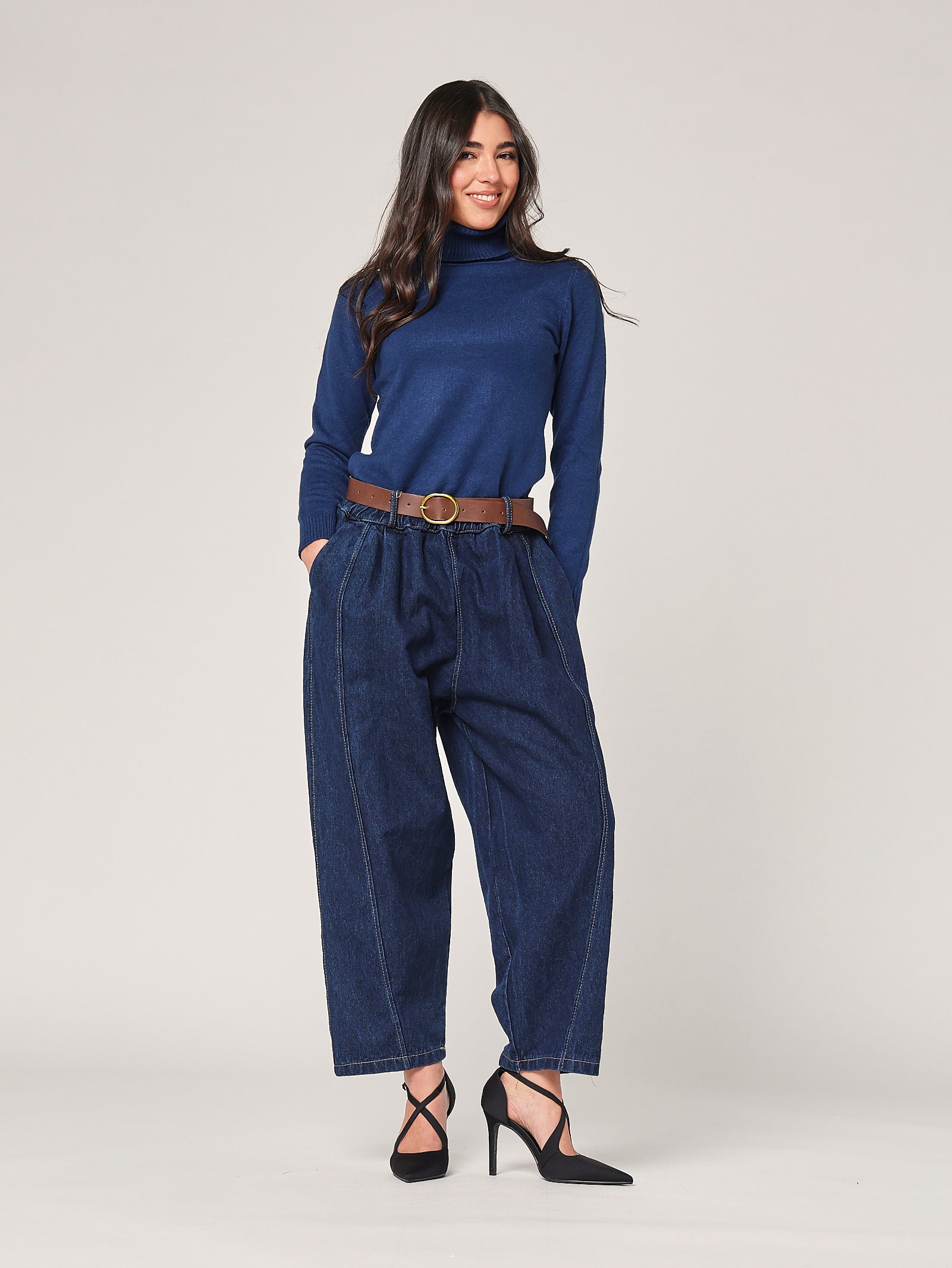 Jeans a vita alta dal taglio classico e femminile, perfetto per valorizzare la silhouette con eleganza. La linea dritta e leggermente affusolata accompagna le forme con naturalezza, mentre il denim morbido garantisce comfort e libertà di movimento. Un capo versatile, ideale per ogni stagione.