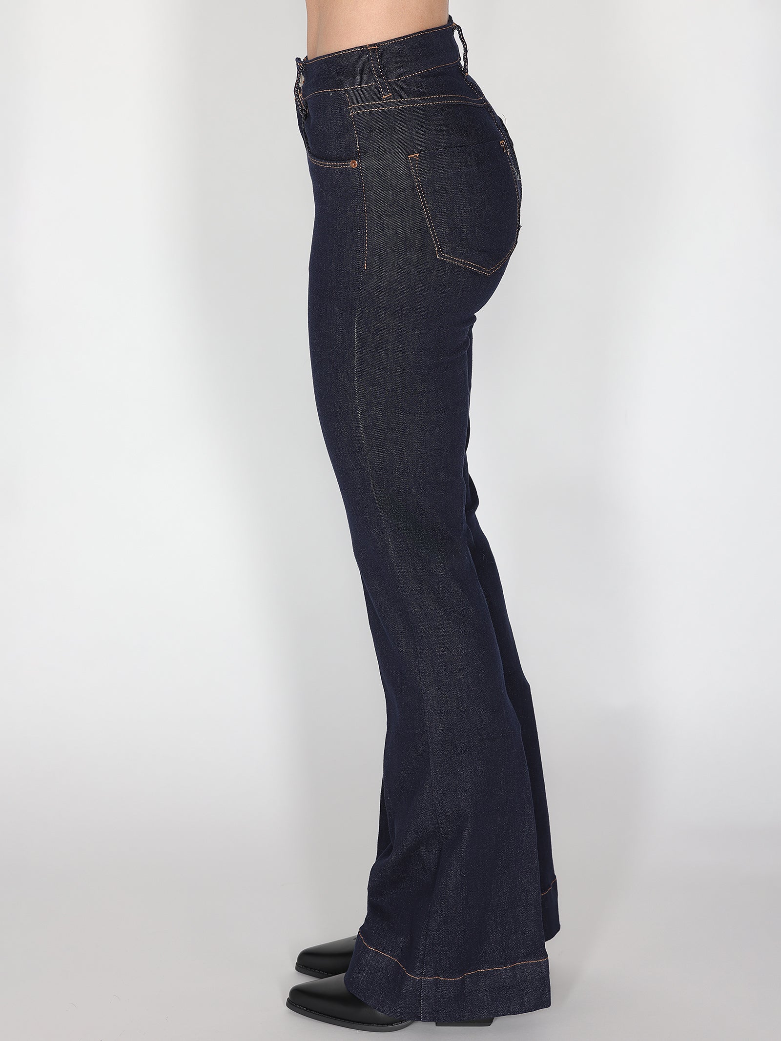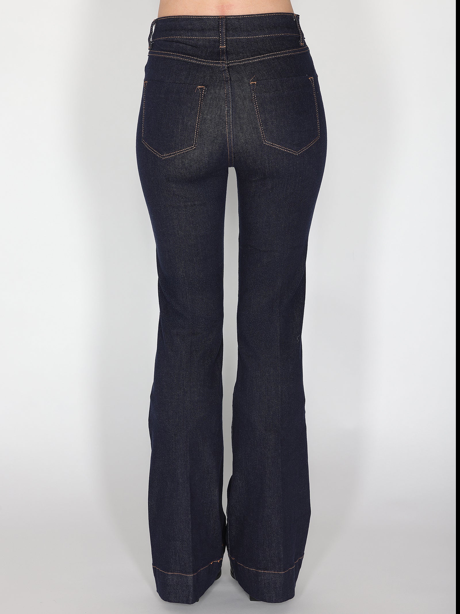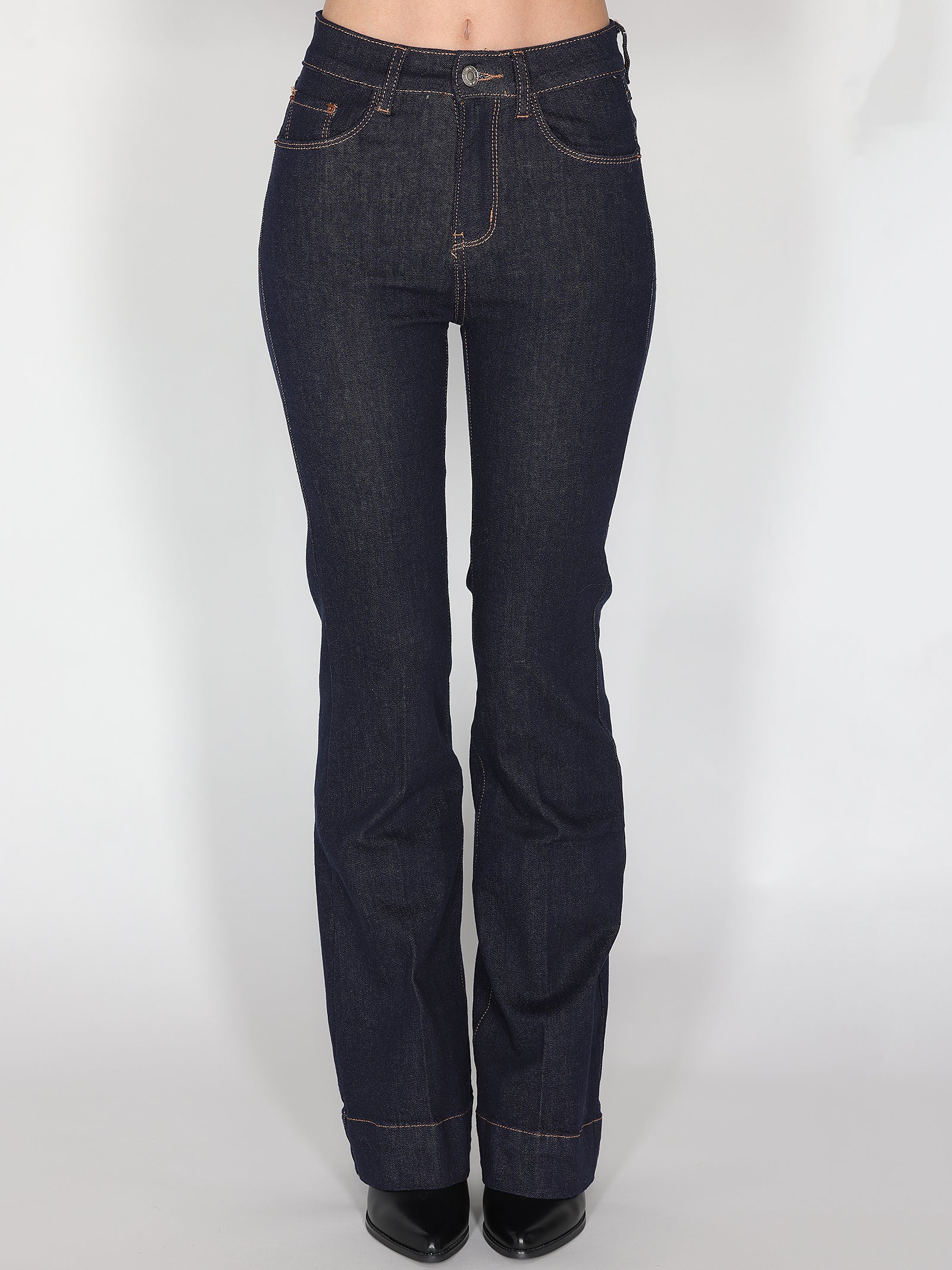 Jeans a zampa dal taglio slanciato e dalla linea vintage, perfetto per chi ama un look femminile e di tendenza. La vita regolare valorizza la figura, mentre la gamba svasata dona equilibrio e movimento. Un capo intramontabile, ideale per creare outfit casual chic o più raffinati, semplicemente cambiando accessori e scarpe.