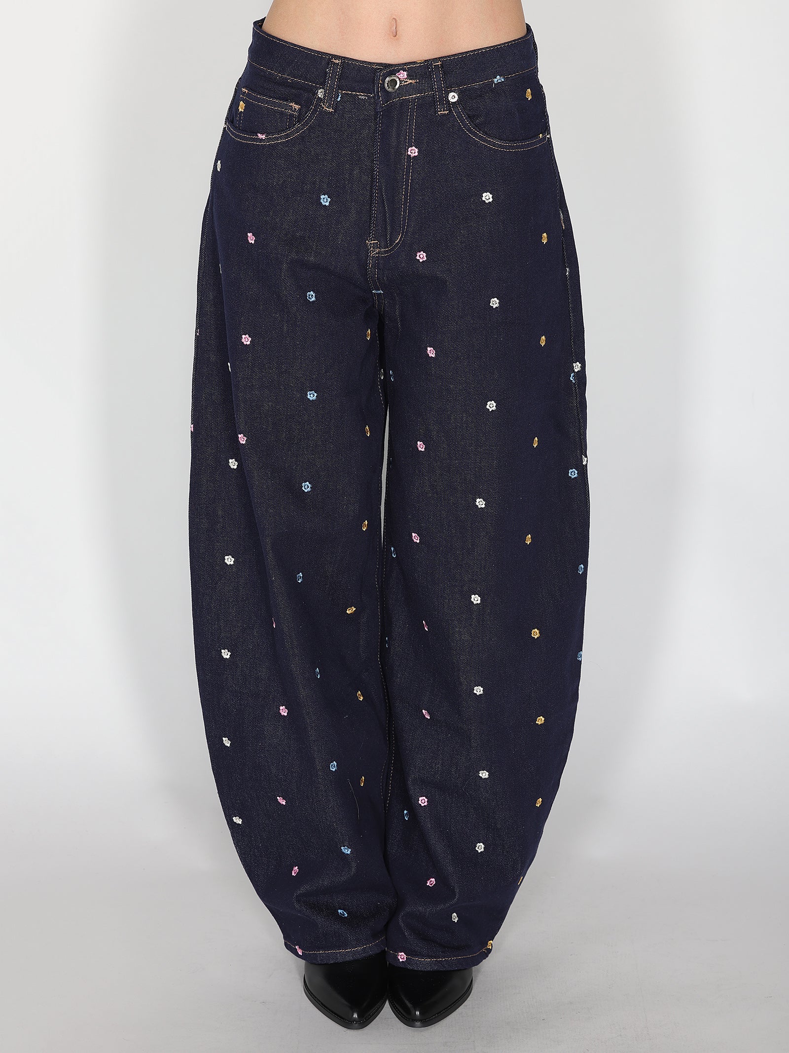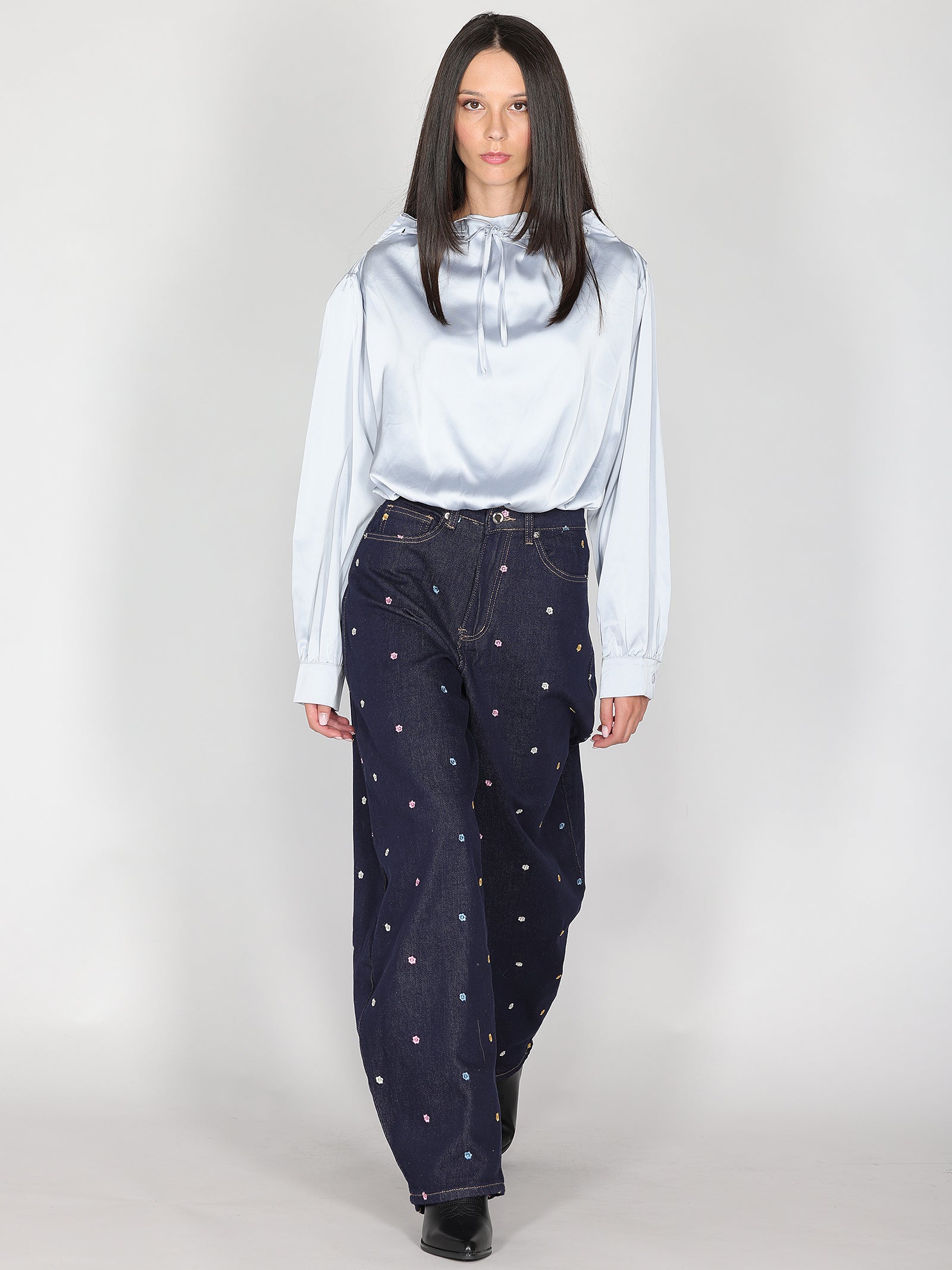 Jeans gamba larga ricamo fiori