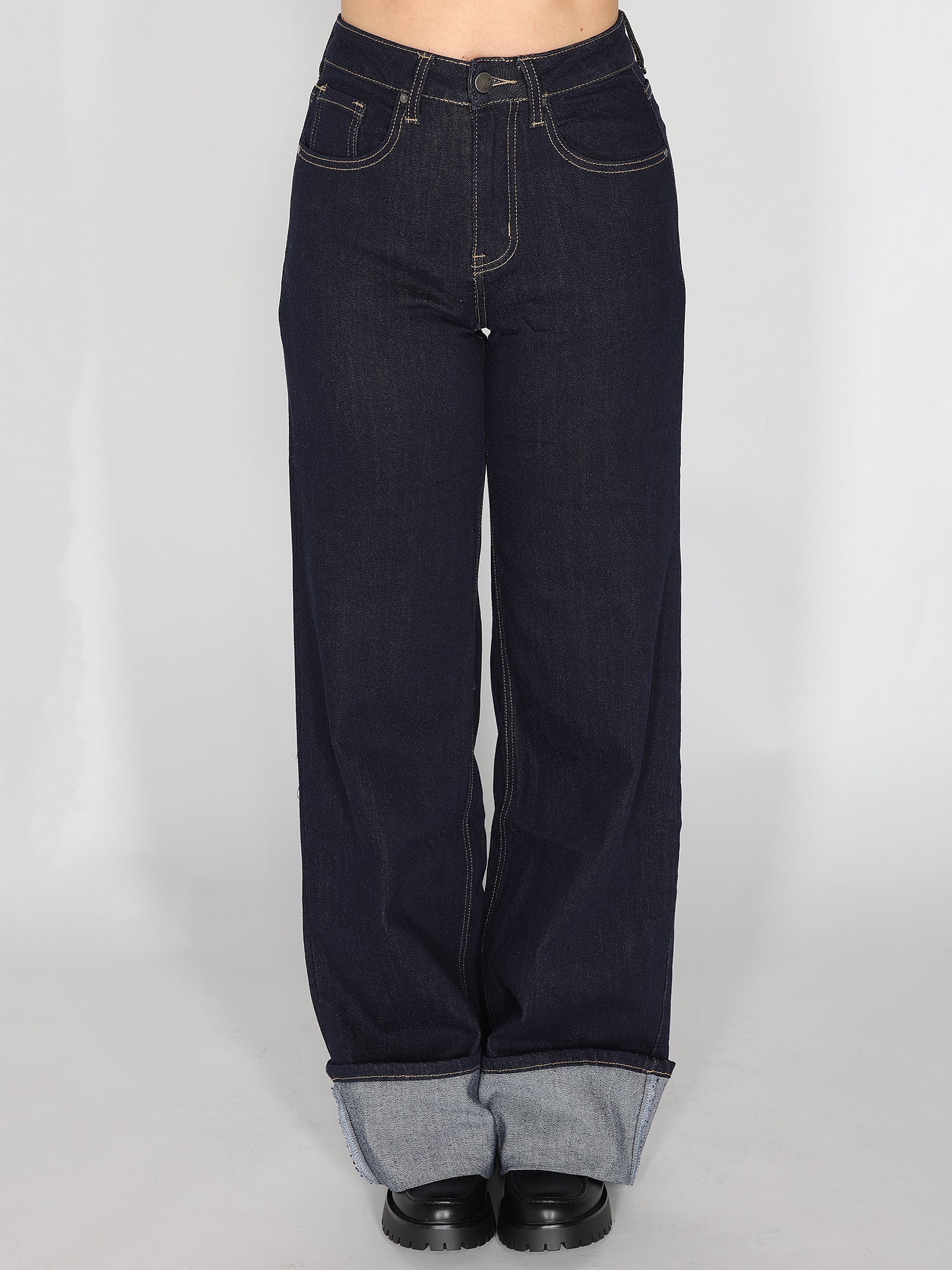 Jeans palazzo con risvolto