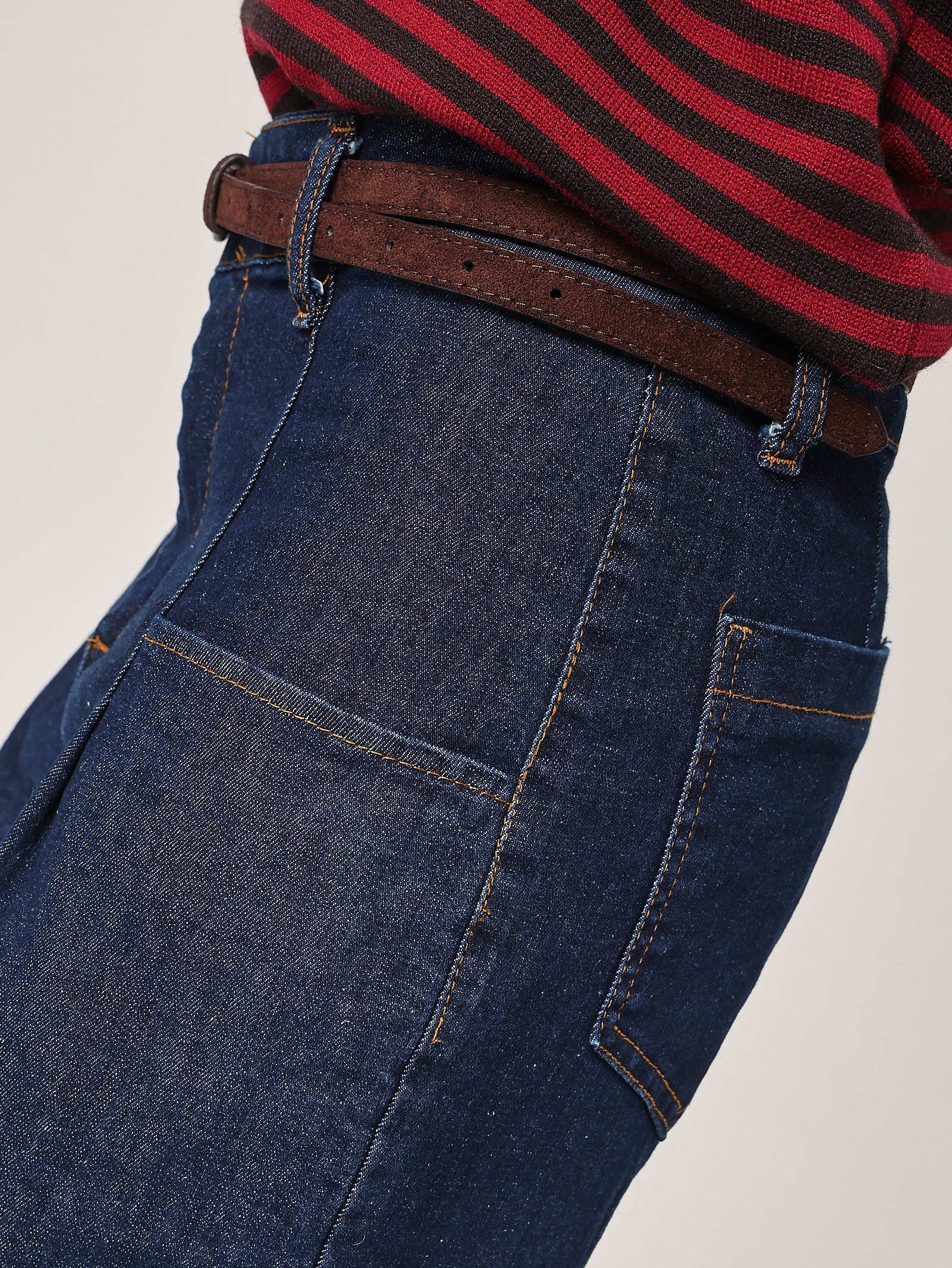 Dettaglio sartoriale: cuciture a contrasto e orlo pulito