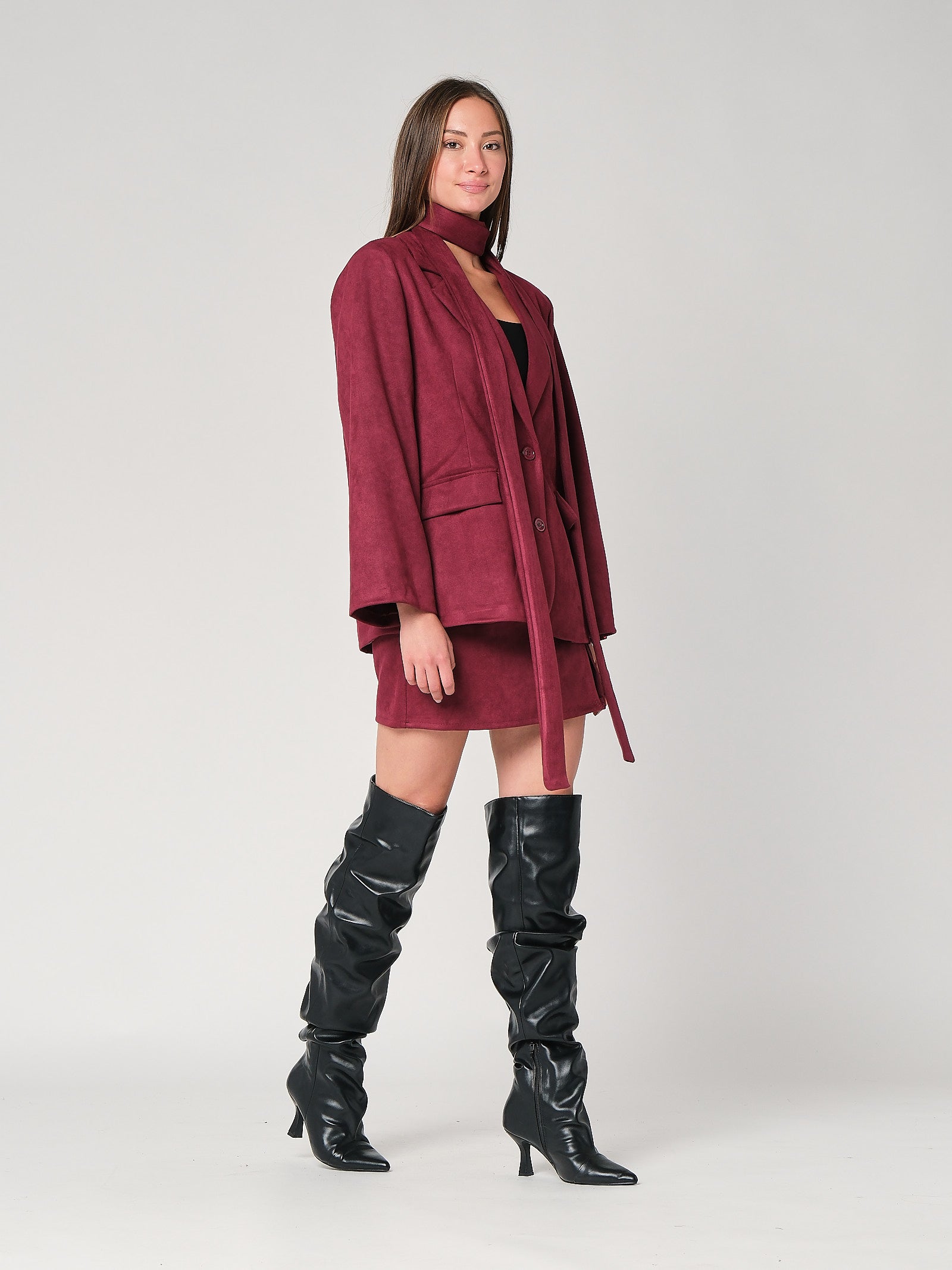 La giacca effetto daino che aggiunge sofisticazione senza sforzo, leggera da indossare, morbida al tatto, impeccabile nelle linee. È la giacca donna perfetta per chi cerca un capospalla comodo ma chic, da portare aperta per layering easy o chiusa per un profilo più netto. Sta bene con tutto e regge ore di città.