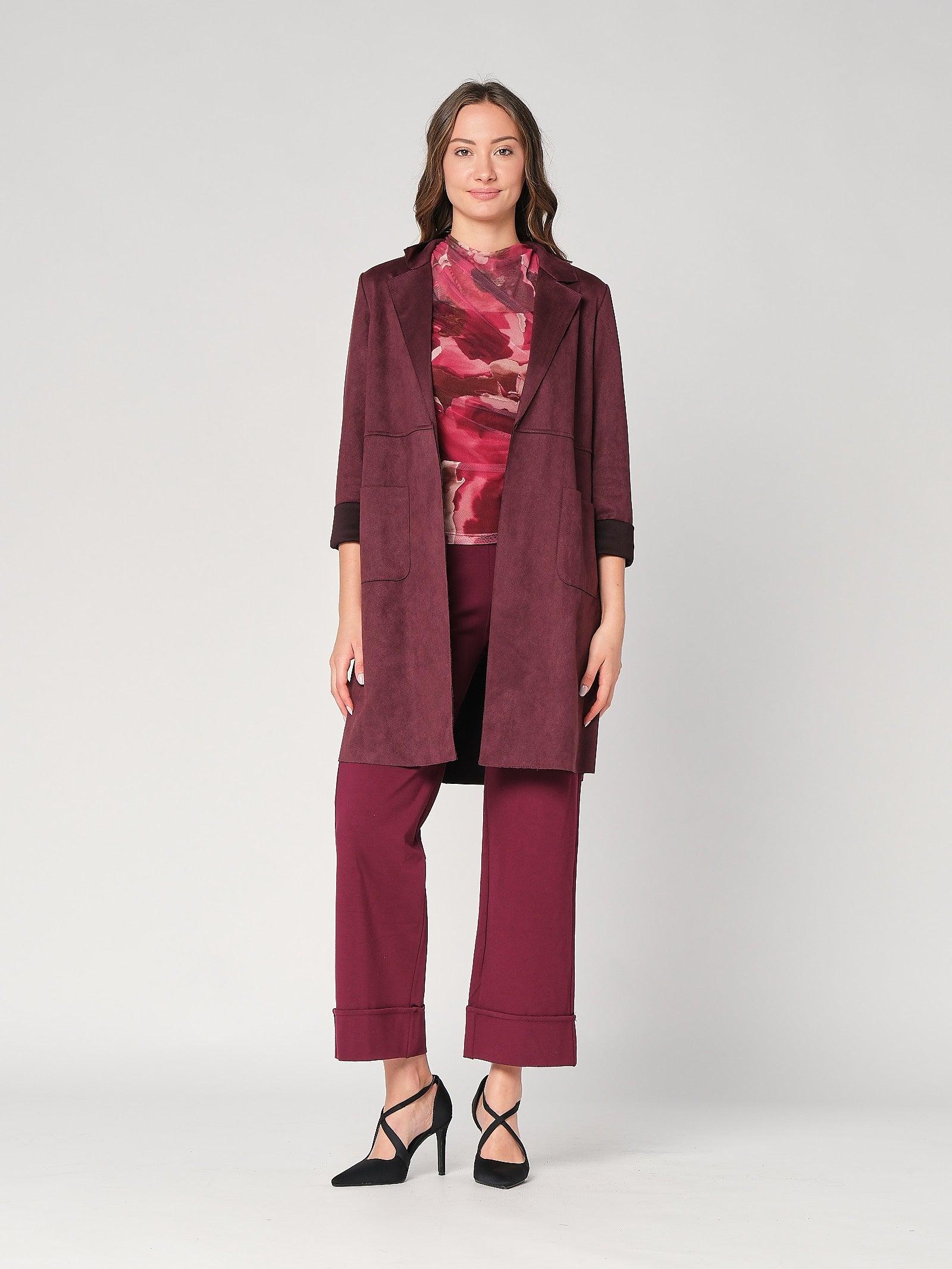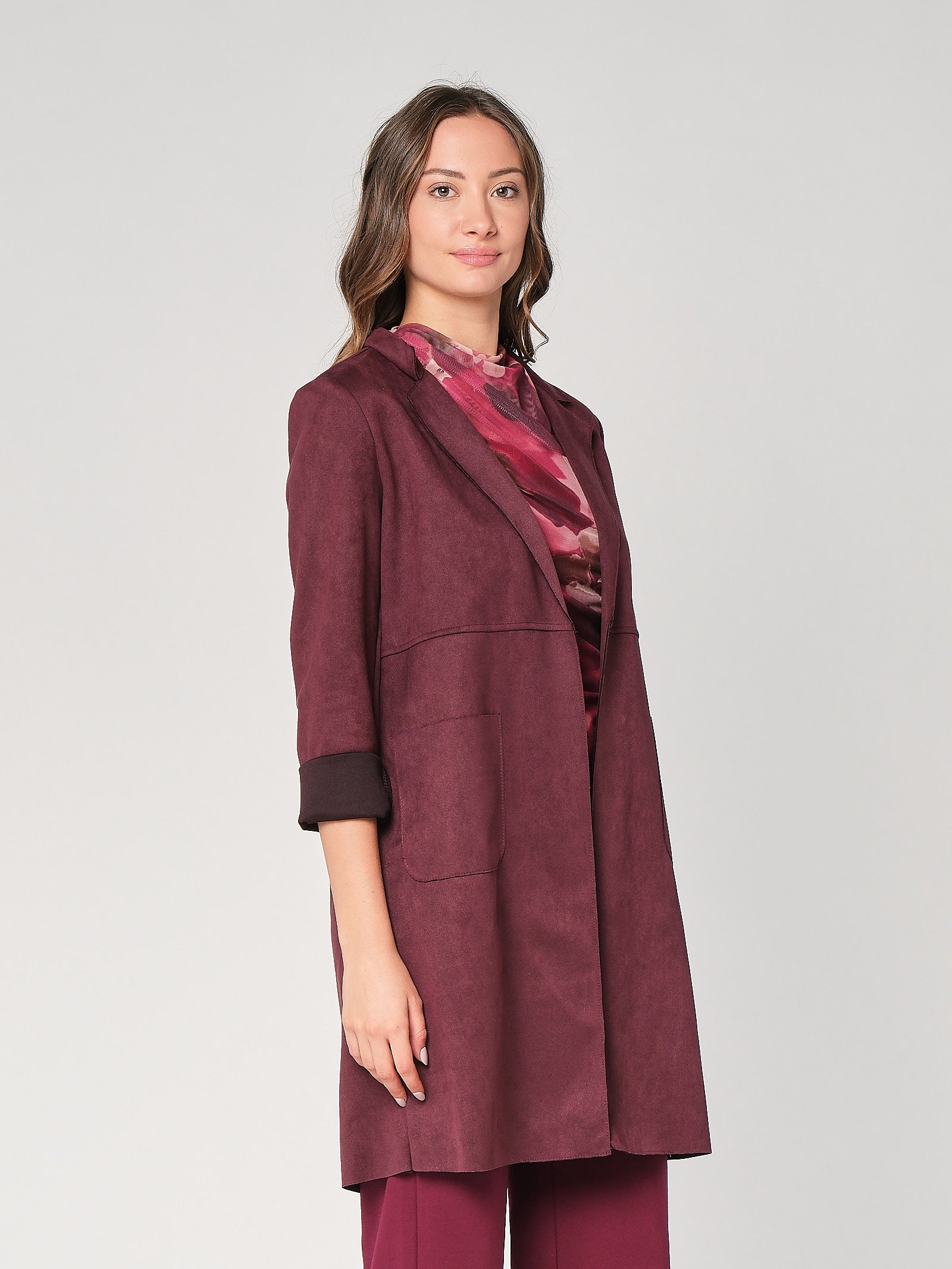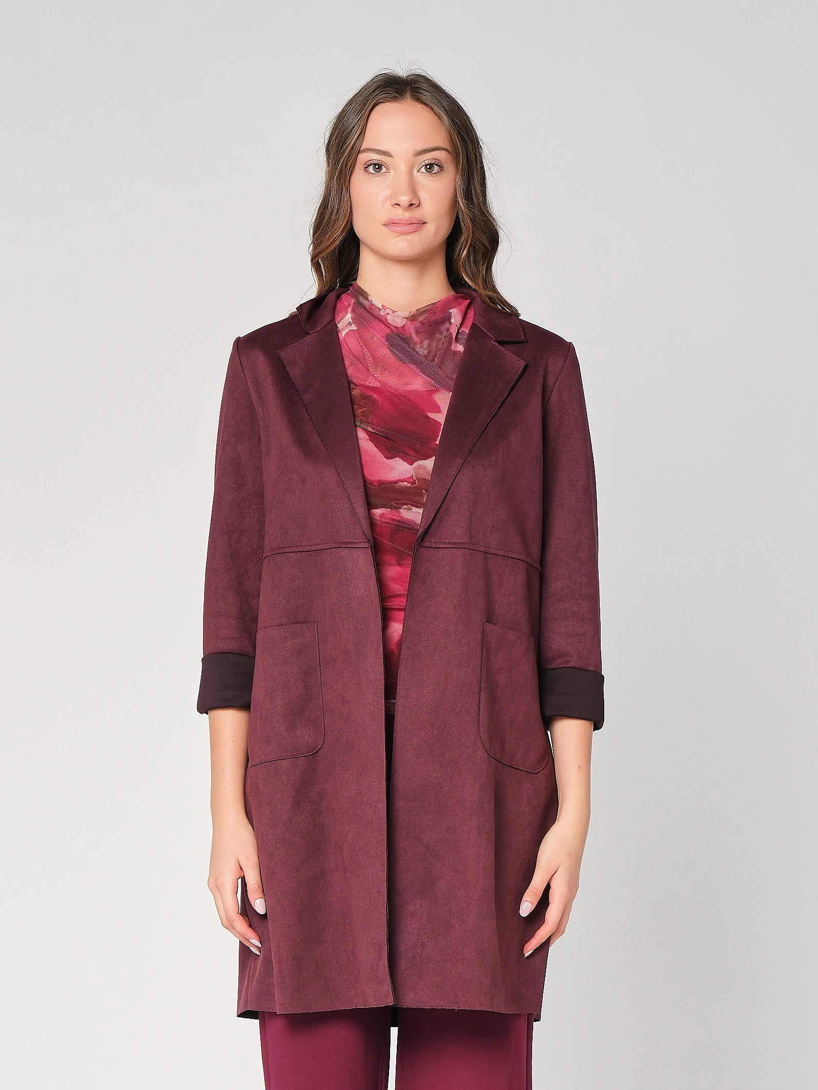 Aggiungi un tocco di eleganza sofisticata al tuo guardaroba con questa giacca lunga in tessuto morbido e avvolgente. Il taglio lineare, arricchito dalle pratiche tasche applicate, incontra le maniche a 3/4 con risvolto per un look casual-chic ideale da mattina a sera. Il colore intenso regala carattere e stile, rendendola il capo perfetto da abbinare sia a pantaloni sartoriali che a denim moderni.