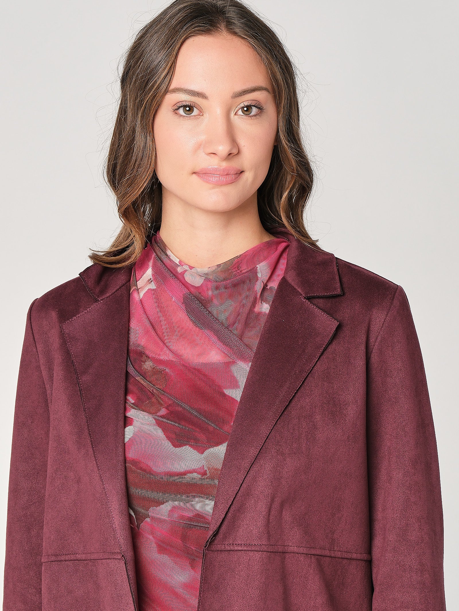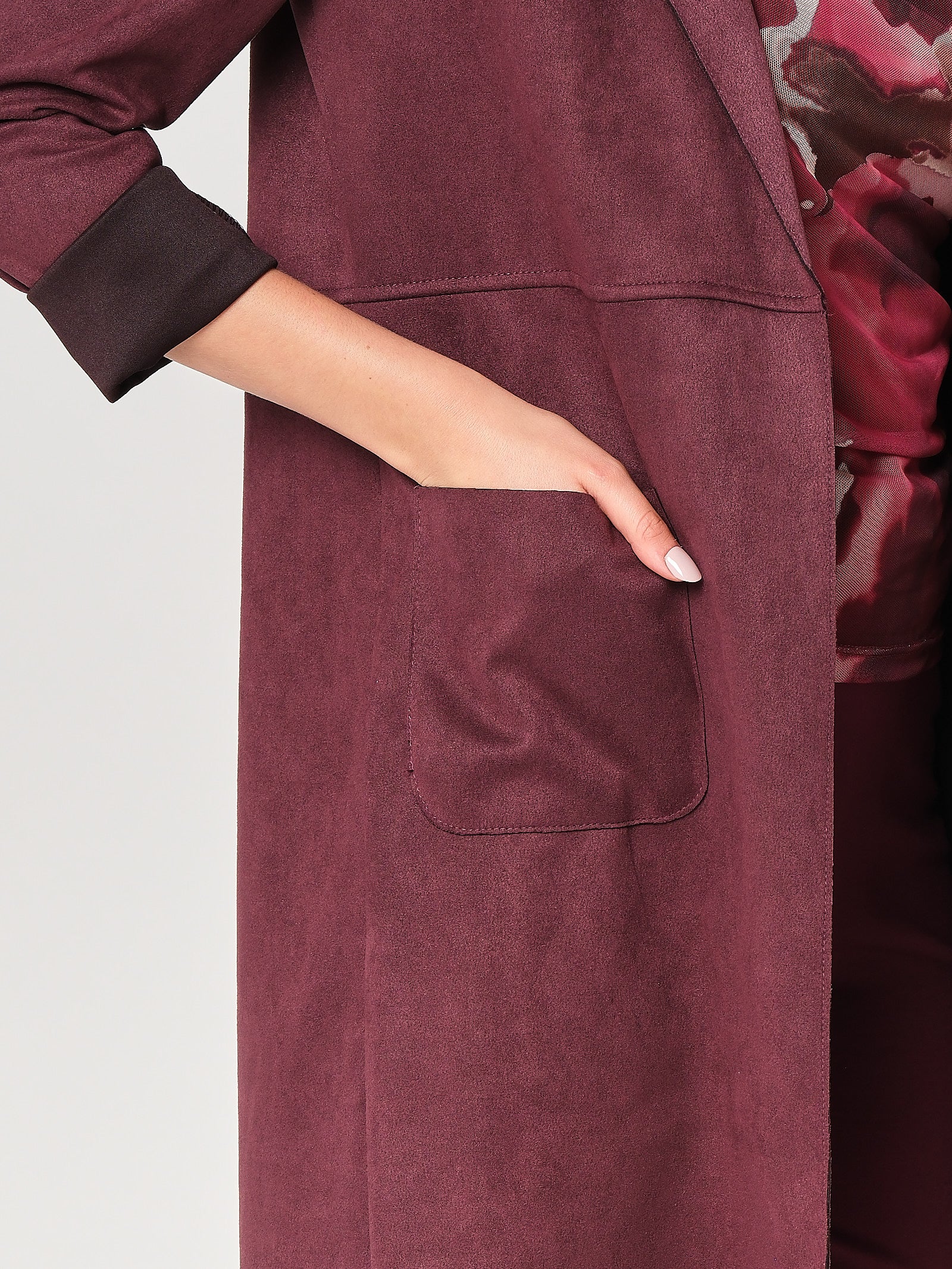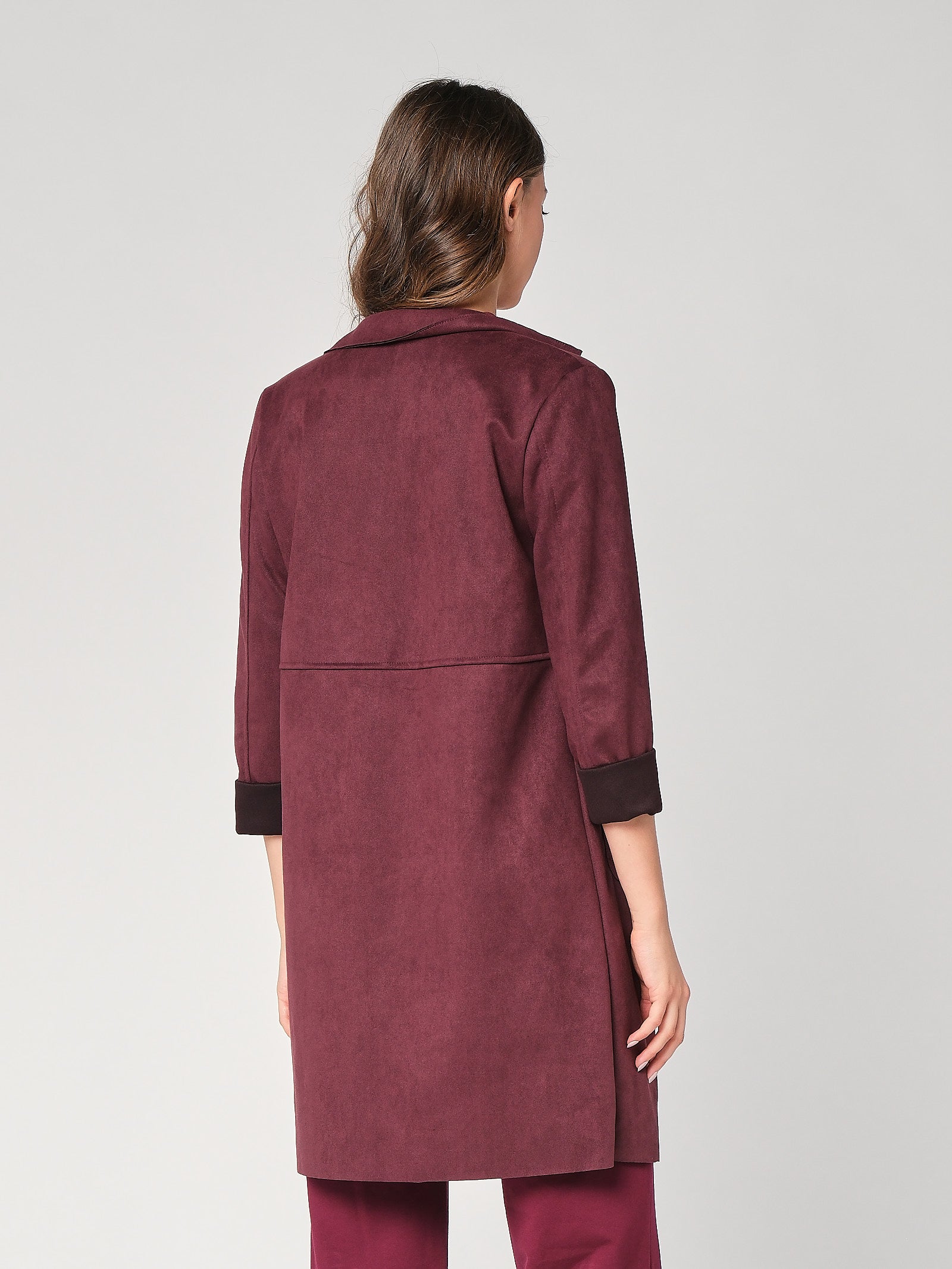 Aggiungi un tocco di eleganza sofisticata al tuo guardaroba con questa giacca lunga in tessuto morbido e avvolgente. Il taglio lineare, arricchito dalle pratiche tasche applicate, incontra le maniche a 3/4 con risvolto per un look casual-chic ideale da mattina a sera. Il colore intenso regala carattere e stile, rendendola il capo perfetto da abbinare sia a pantaloni sartoriali che a denim moderni.