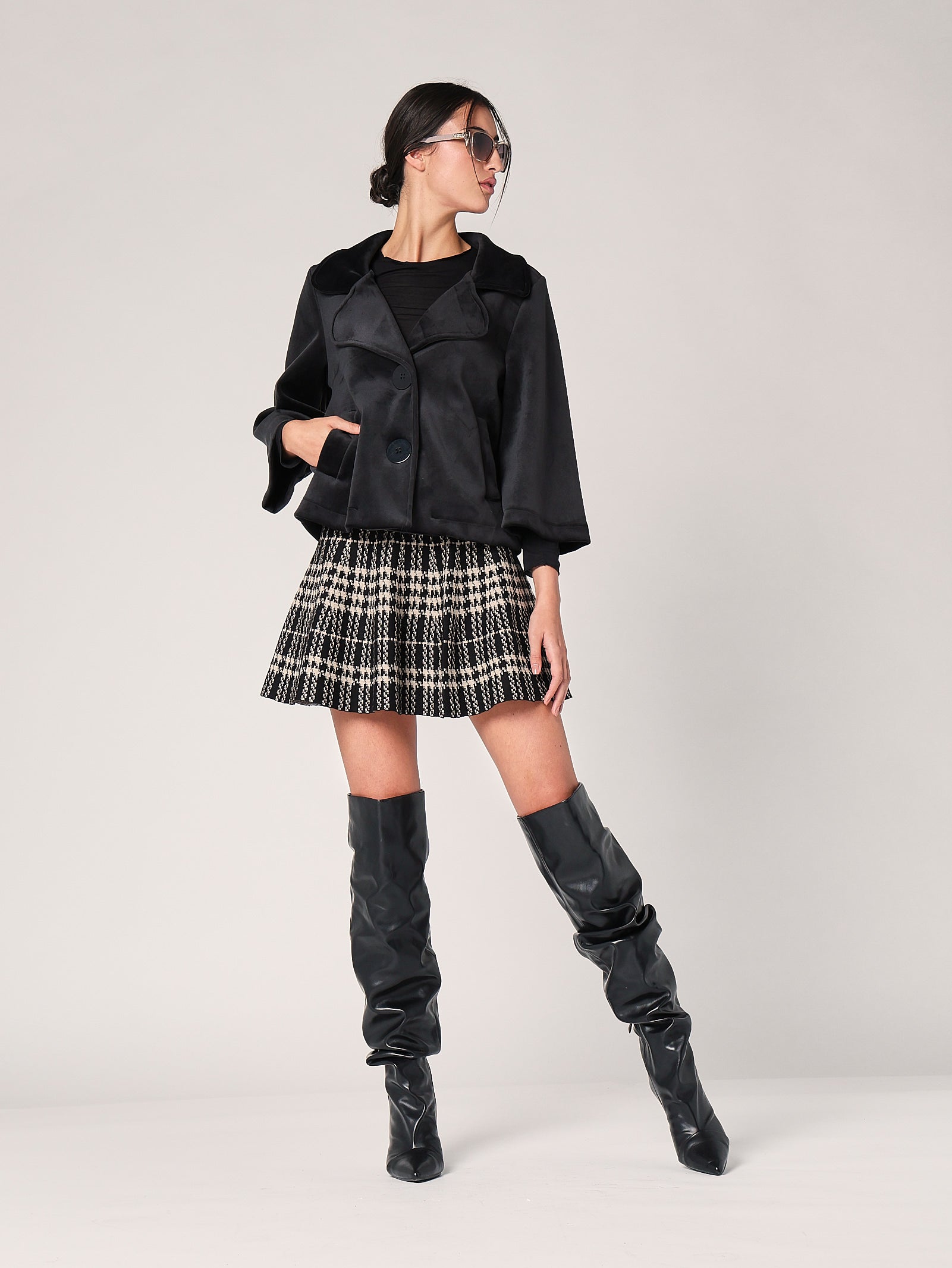 Dettaglio sartoriale: chiusura a due bottoni, cuciture precise