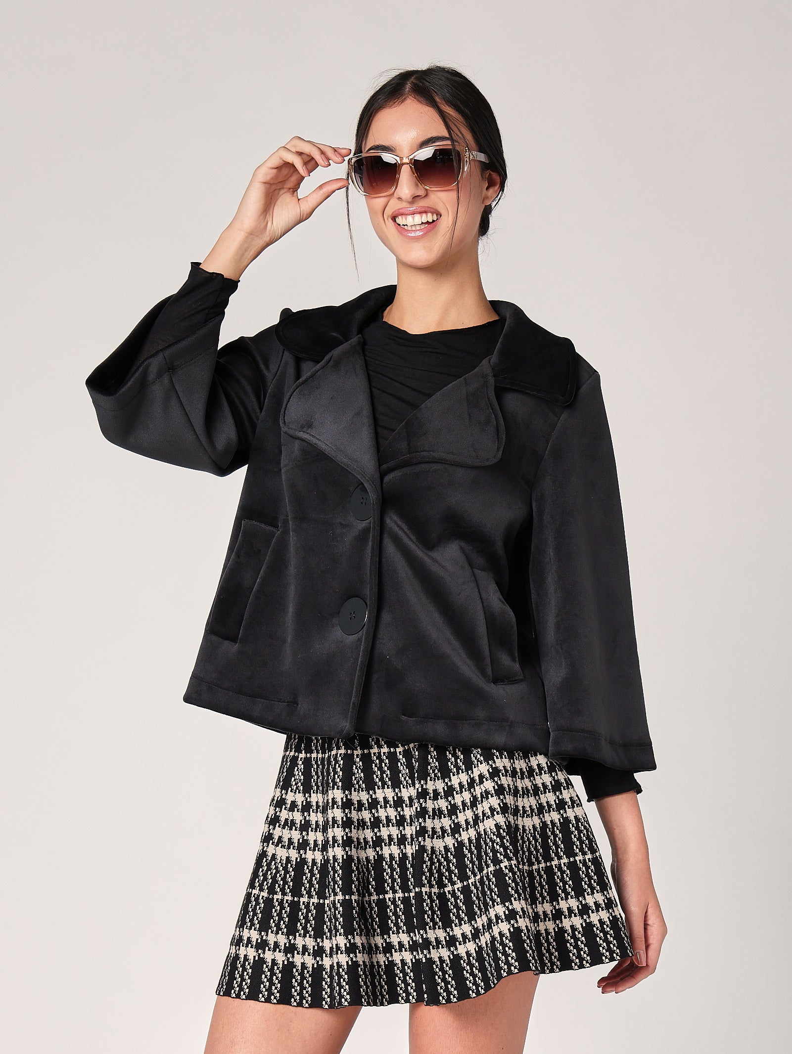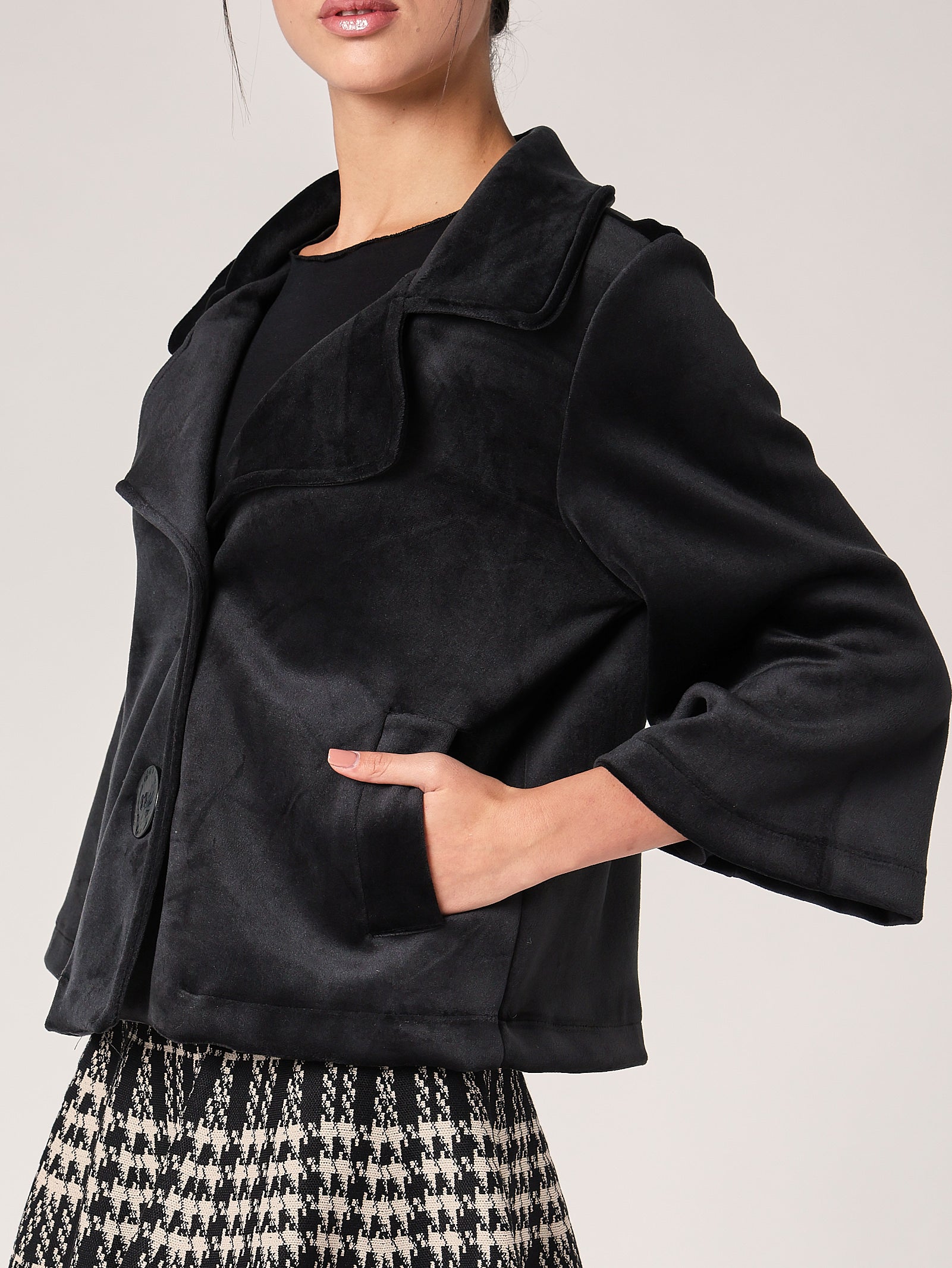 Giacca a due bottoni dal taglio pulito e dalla linea elegante, un capo essenziale che unisce stile e versatilità. Il design sartoriale con revers classico e struttura leggera la rende perfetta per look formali o casual chic. Da indossare con pantaloni coordinati per un effetto completo, oppure con jeans e t-shirt per un contrasto moderno e sofisticato.