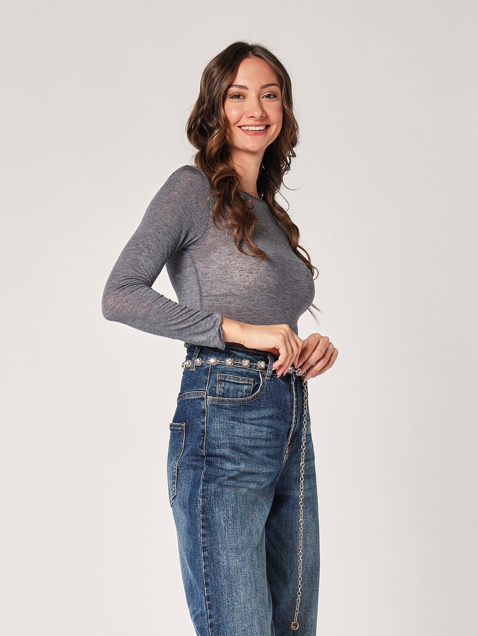 Maglia in cachemire dal fascino sobrio e versatile. Perfetta come strato intermedio: indossala sotto un cardigan lungo aperto o sopra camicie in contrasto. Oppure da sola con gonna plissé e calze velate per serate con carattere, completando con accessori metallici per valorizzarla.