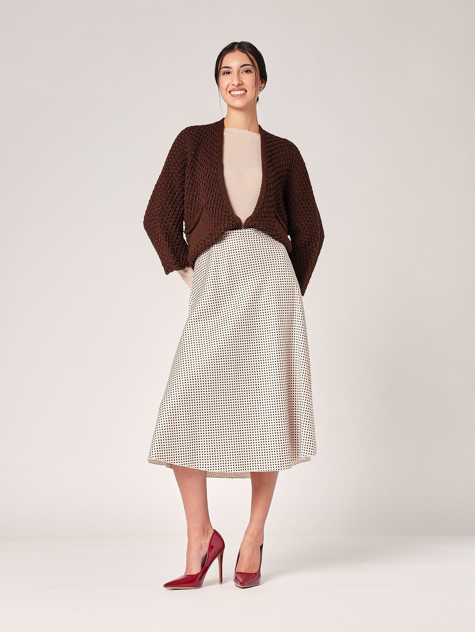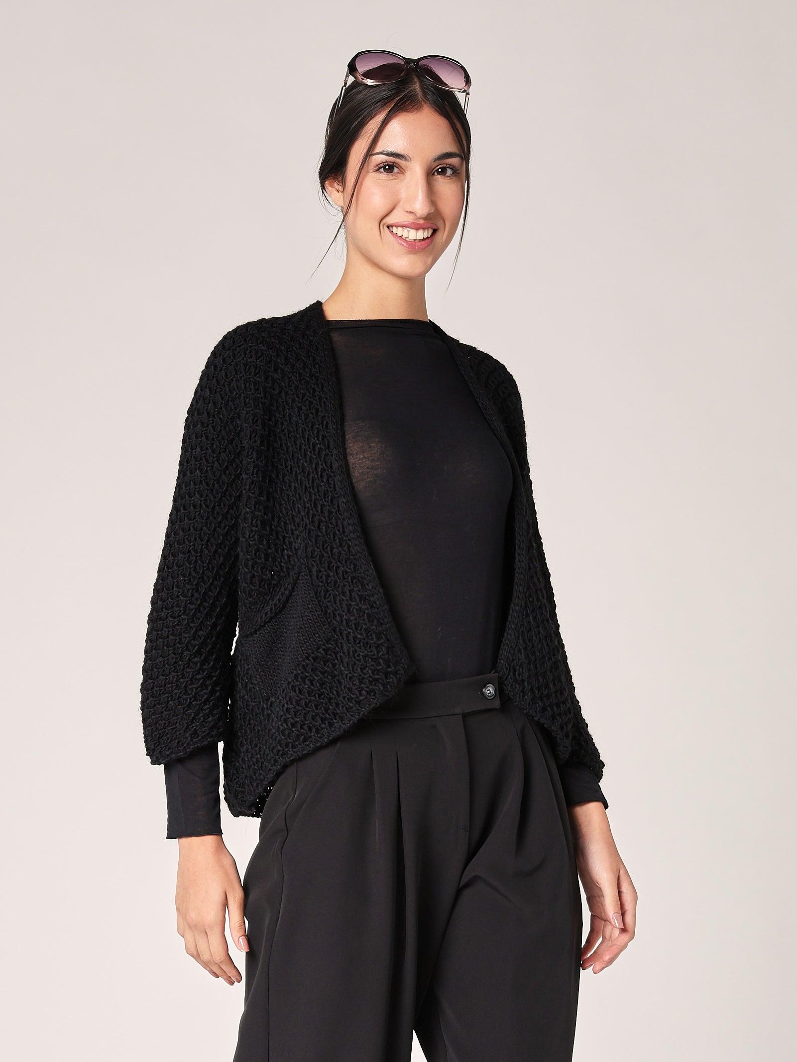 Cardigan lungo con tasche frontali, un capo comodo e versatile che unisce praticità e stile. La linea morbida e la maglia compatta lo rendono perfetto per creare look stratificati e rilassati. Può essere indossato sopra camicie o top basici per outfit casual chic, oppure con abiti midi per un effetto più femminile.