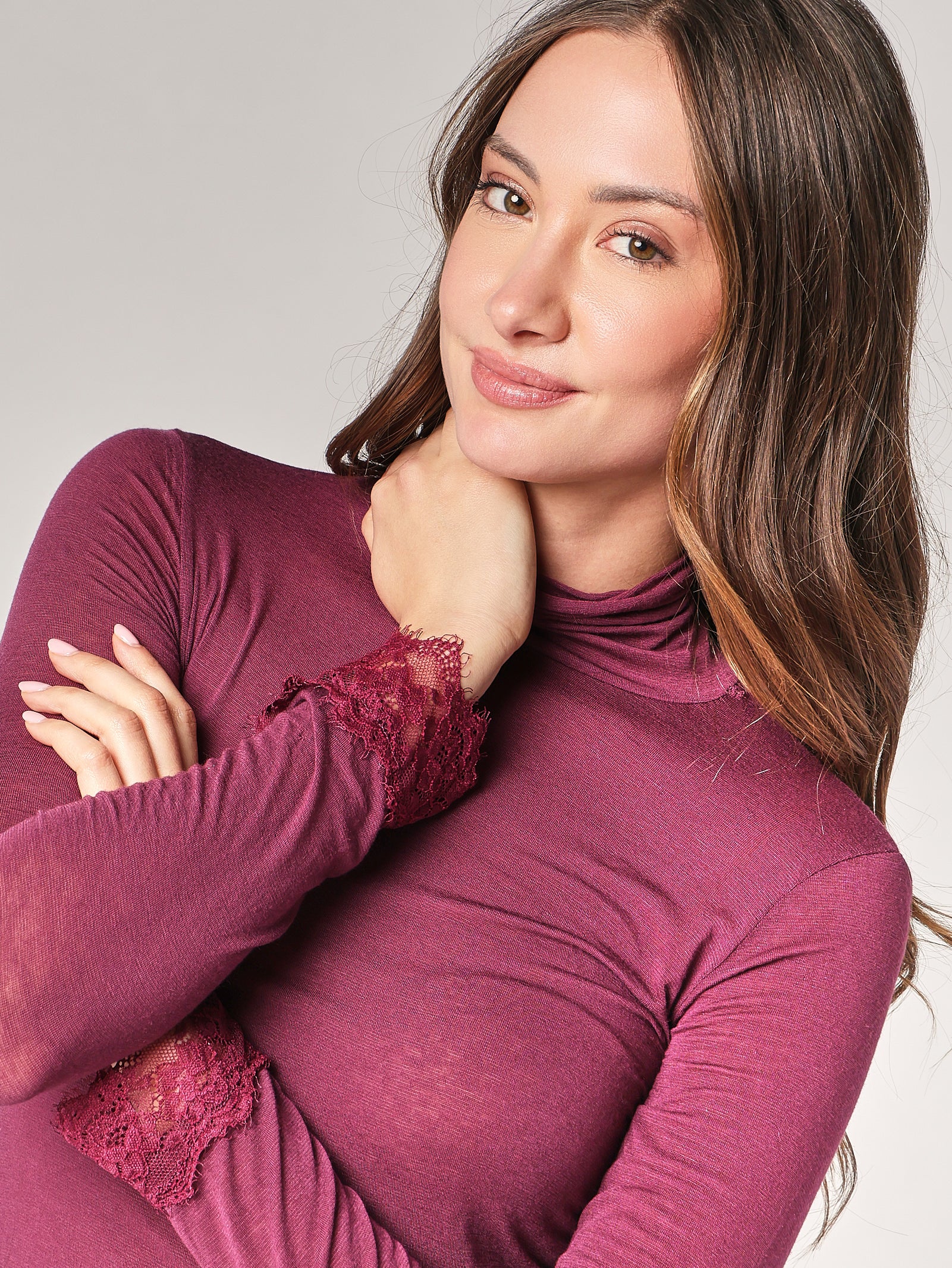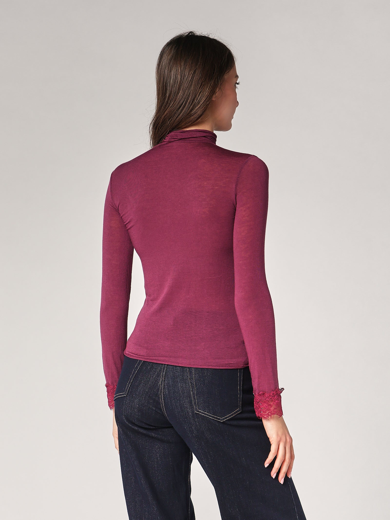 Maglia dolcevita elegante con pizzo, perfetta per chi ama capi caldi ma femminili. Il cashmere avvolge con delicatezza, mentre il dettaglio in pizzo aggiunge un tocco ricercato e luminoso.