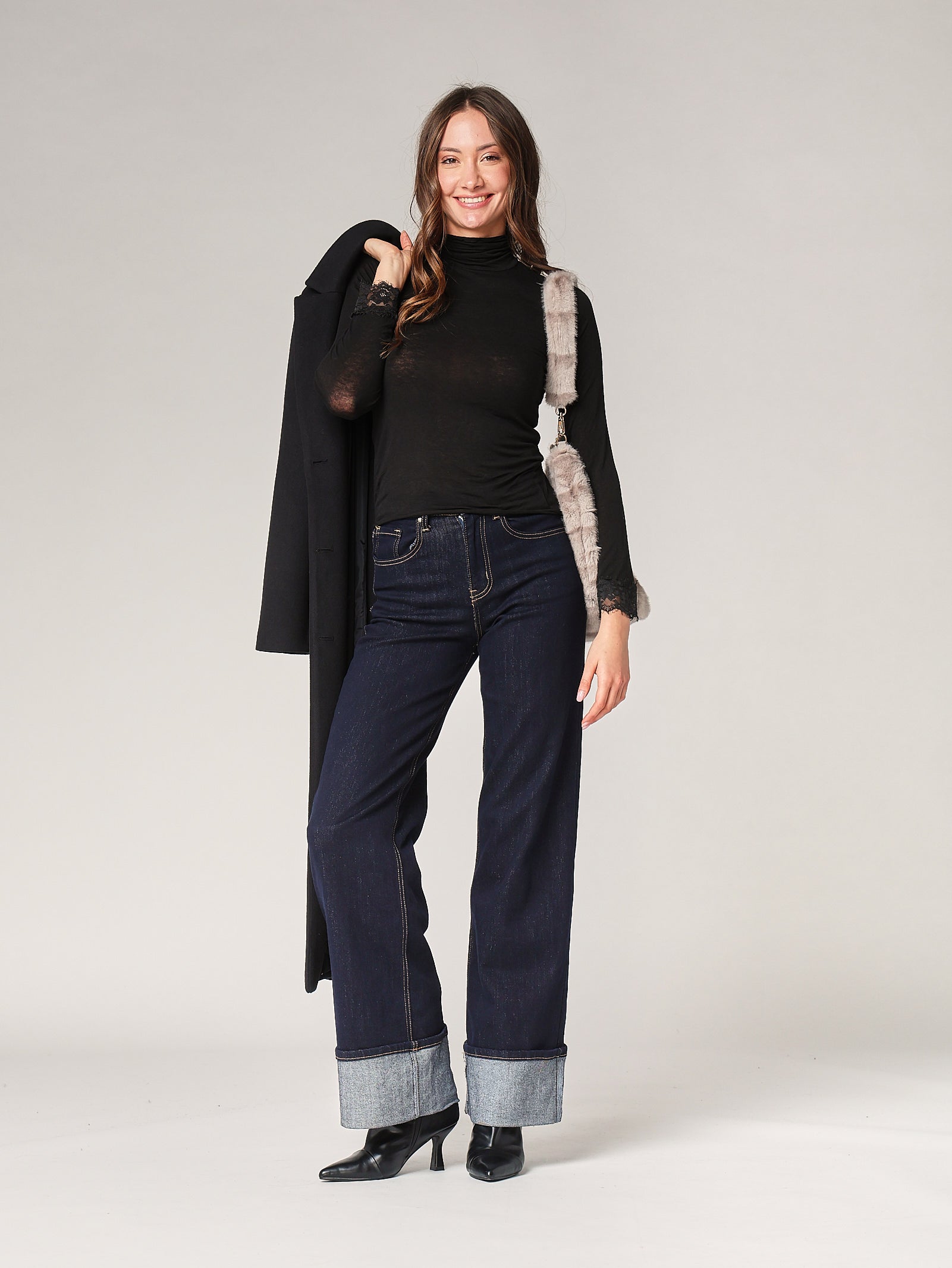 Dolcevita in cashmere con pizzo, ideale per creare look raffinati e contemporanei. Il design essenziale incontra un dettaglio romantico che dona carattere al capo senza appesantire l’outfit.