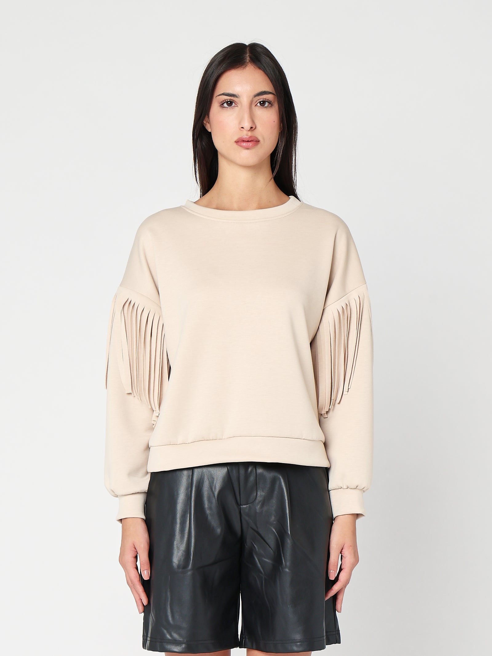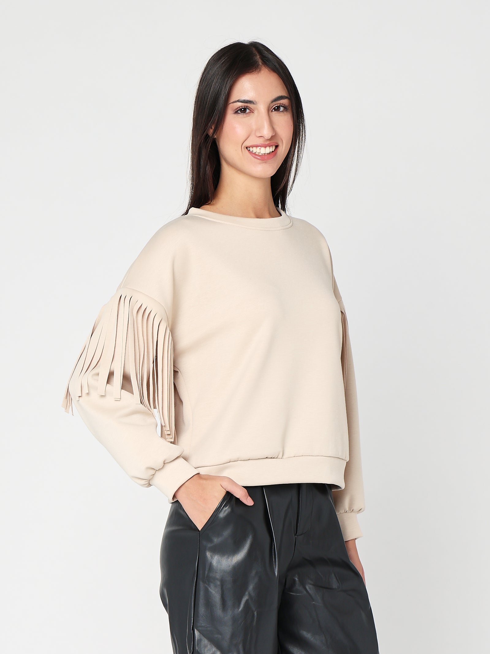 Felpa con elemento grafico distintivo: perfetta come pezzo statement nei look casual. Indossala sopra un top basic con jeans straight leg oppure sotto il tuo cappotto preferito lasciando intravedere la stampa. Gioca con accessori minimal come orecchini piccoli o collane sottili per dare vita al look.