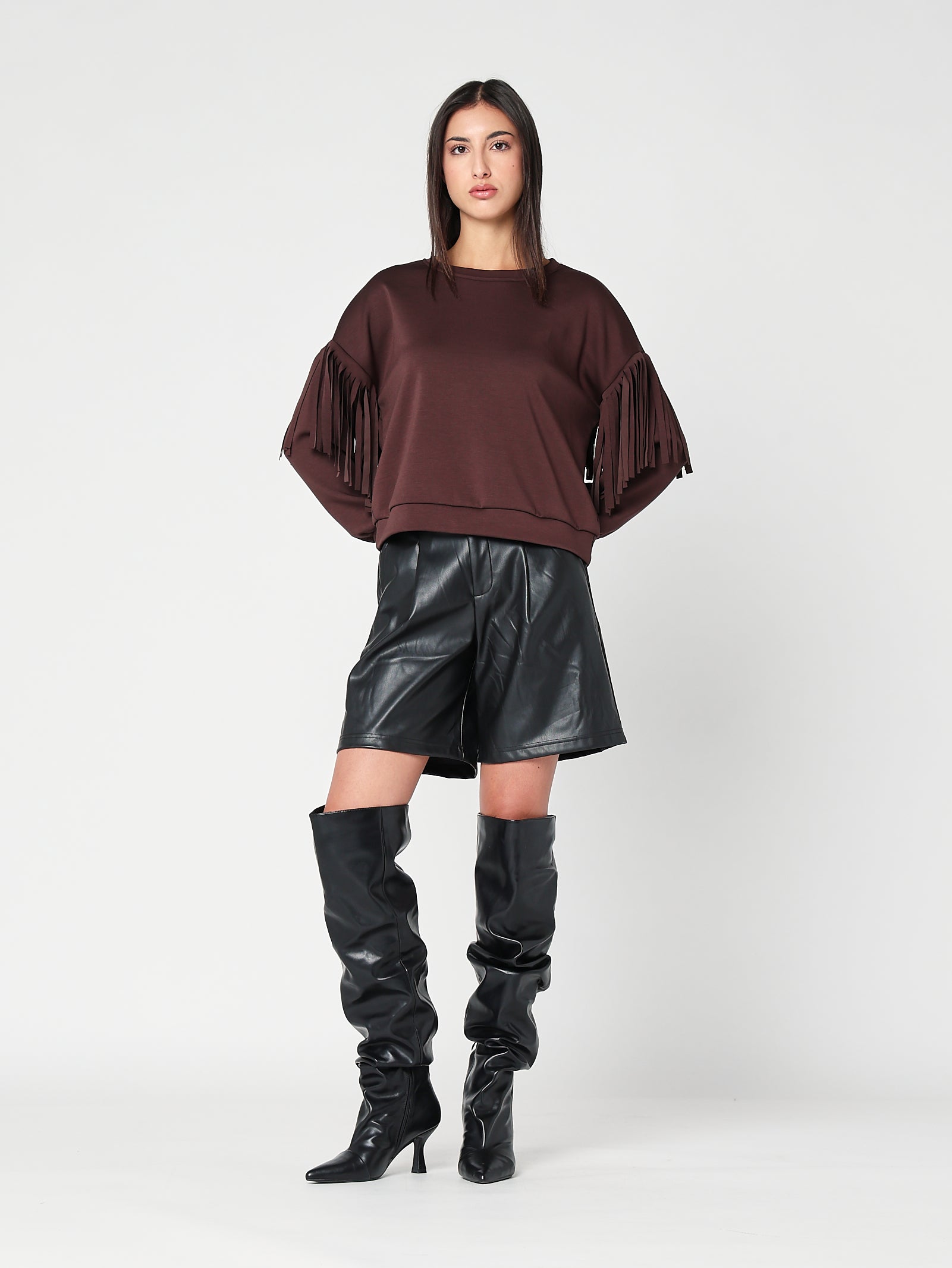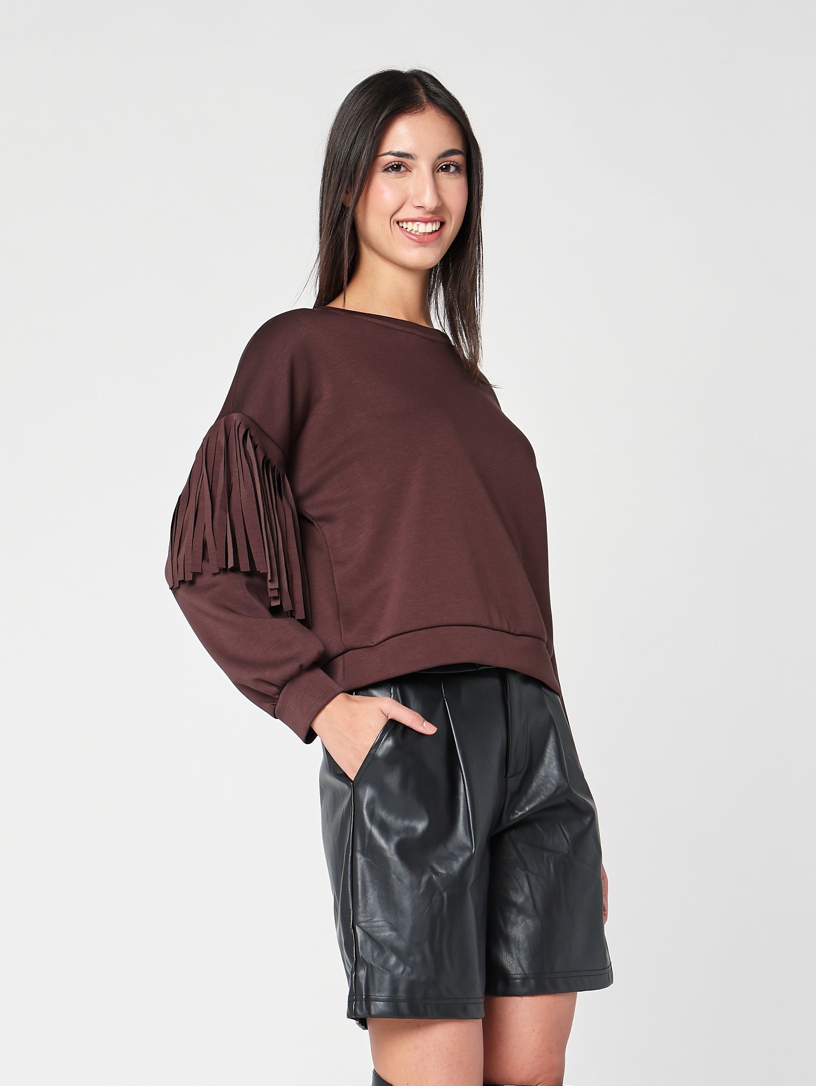 Felpa con grange dal mood street contemporaneo: una stampa decisa che dona carattere anche agli outfit più minimalisti. Usala con pantaloni in pelle sintetica o leggins tecnici per contrasto testurale, oppure con blazer sartoriali per rompere le regole. Completa con stivaletti o scarpe da corsa fashion.