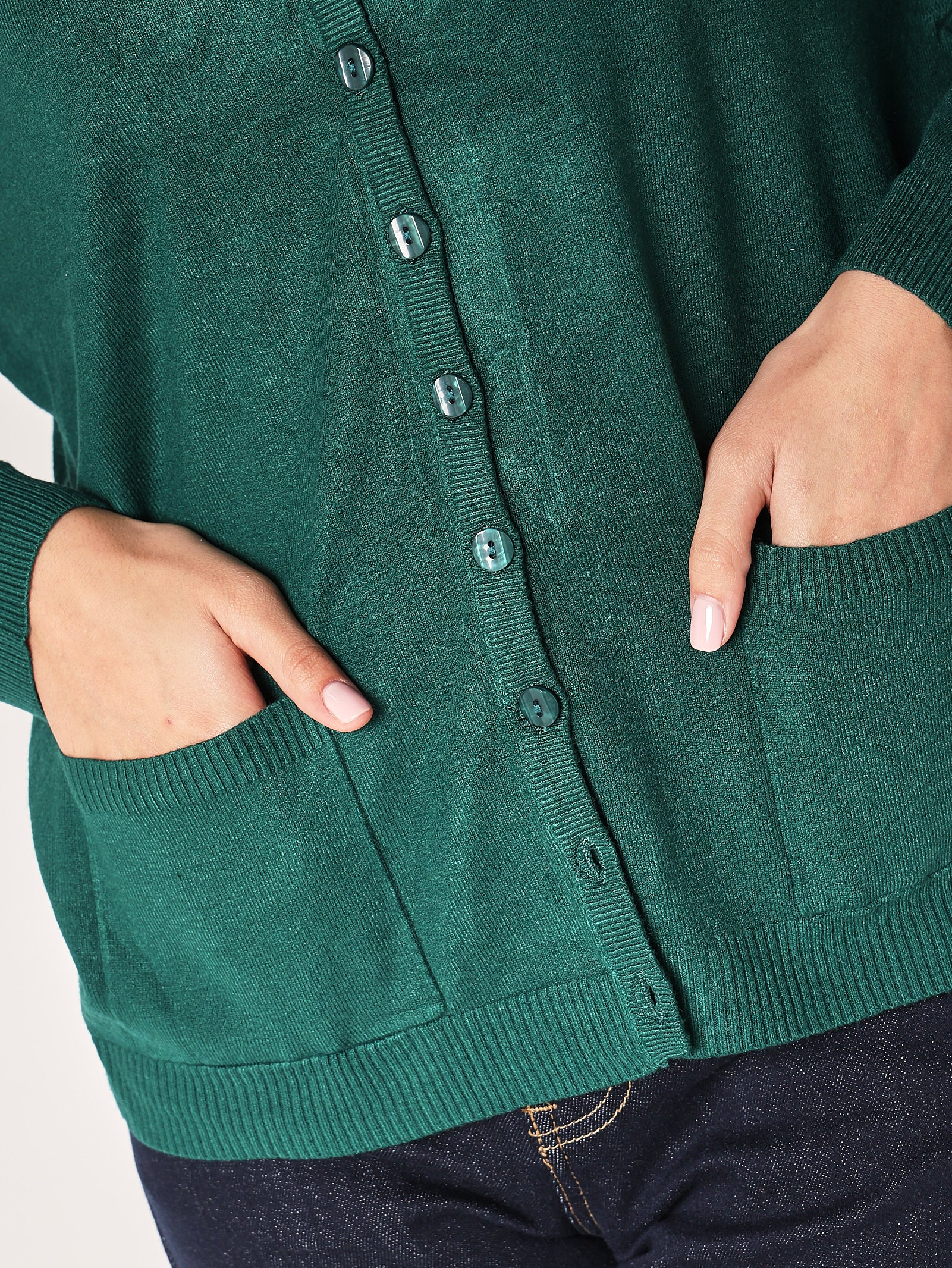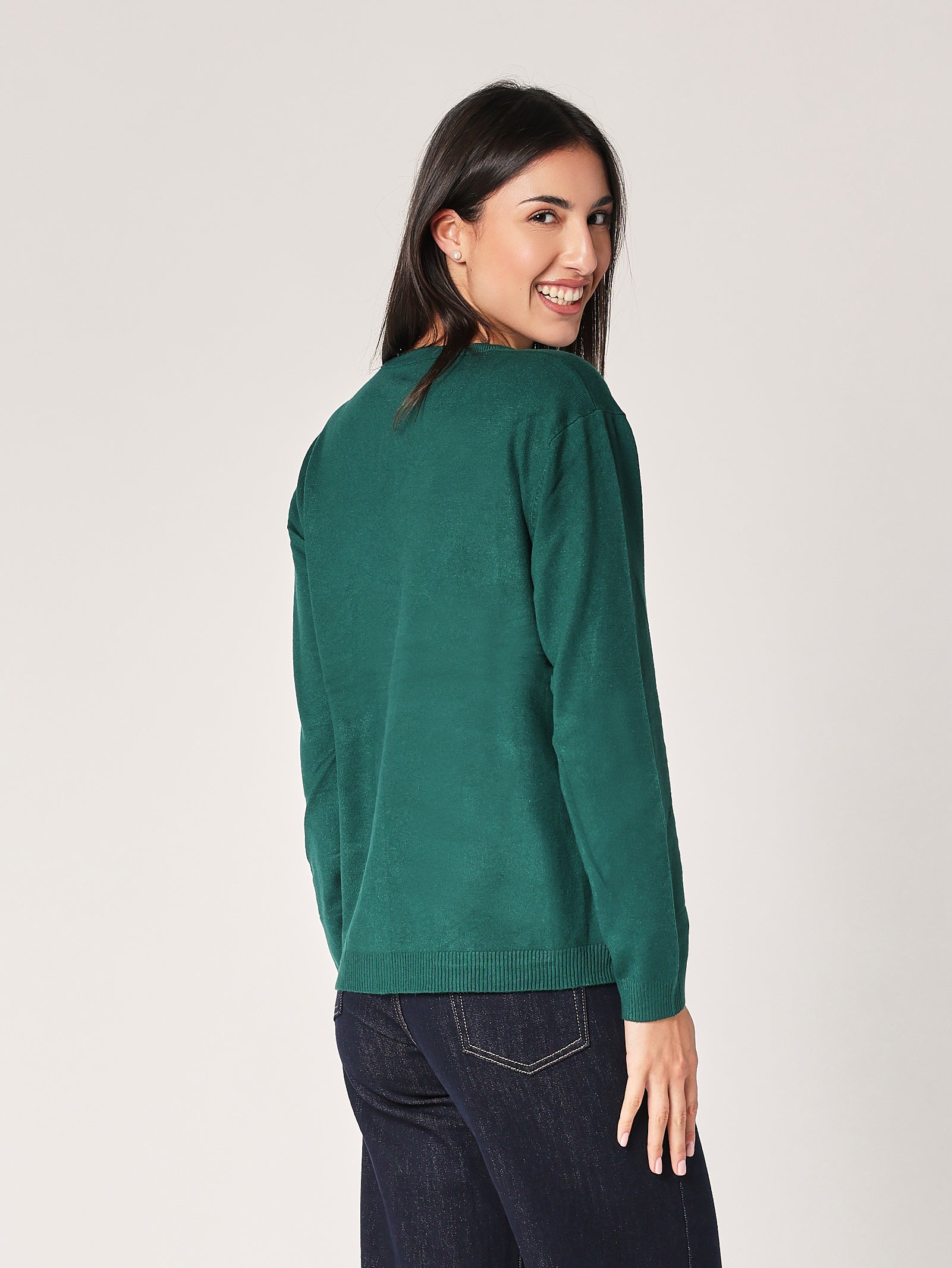Dettaglio sartoriale: scollo a V e bordi a costine