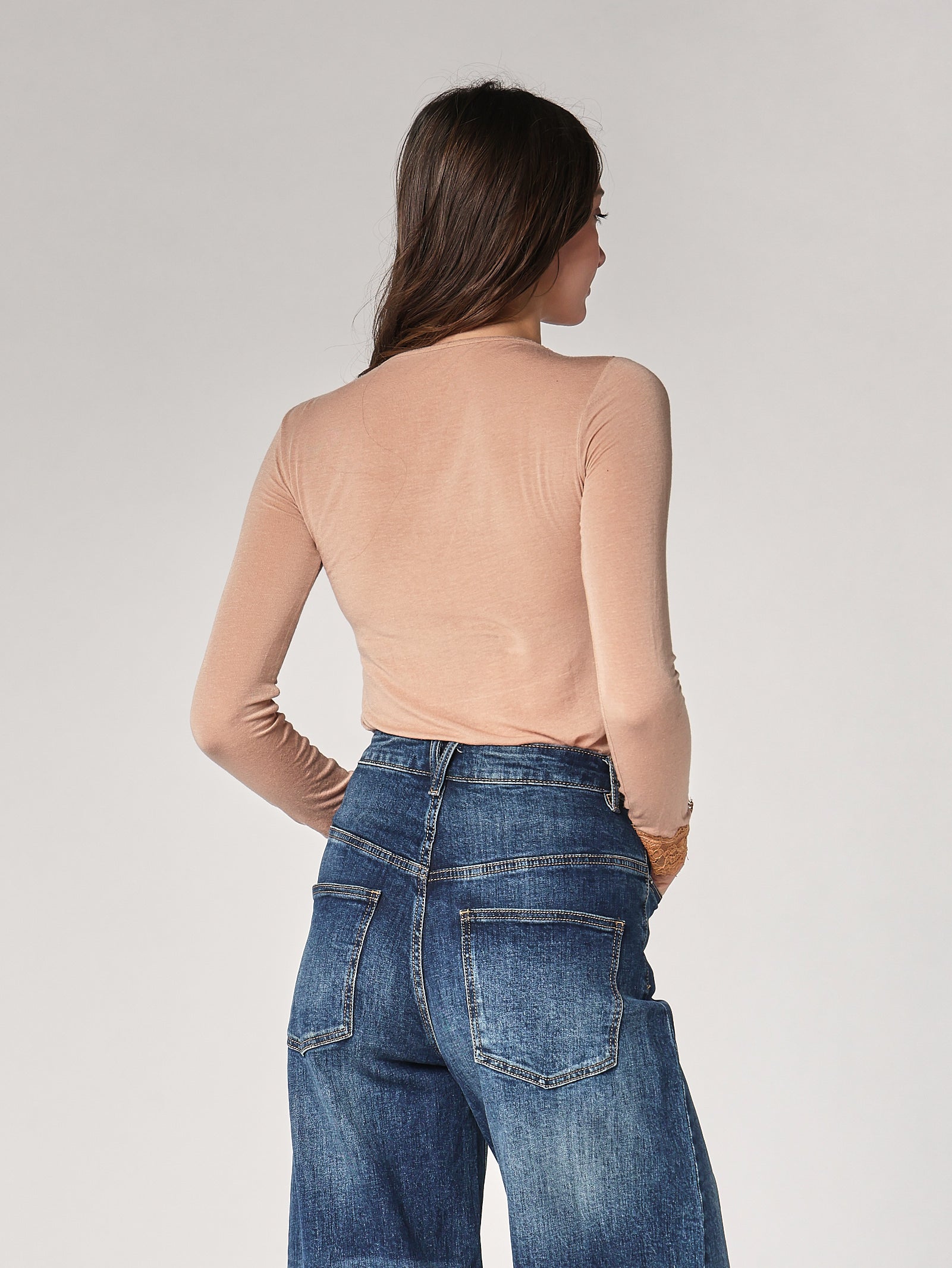 Maglia in cashmere con scollo a V rifinito in pizzo, un capo elegante e intramontabile. La texture morbida e la linea essenziale la rendono perfetta per valorizzare la femminilità con discrezione.