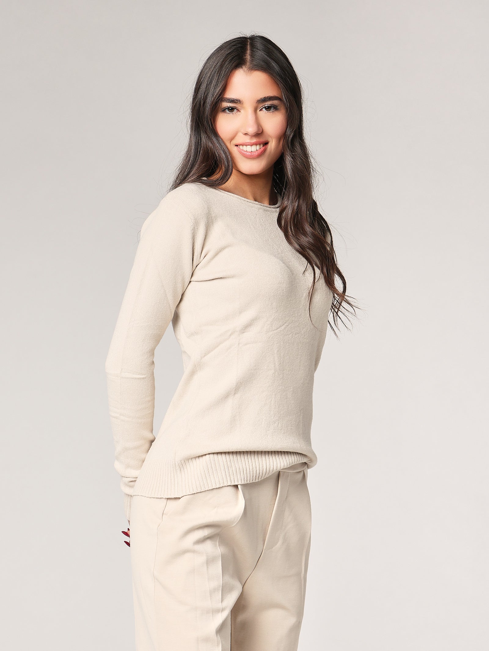 Maglia girocollo dal taglio minimal e contemporaneo, ideale per creare outfit puliti e versatili. La texture morbida avvolge con comfort, rendendola un capo perfetto per ogni momento della giornata.