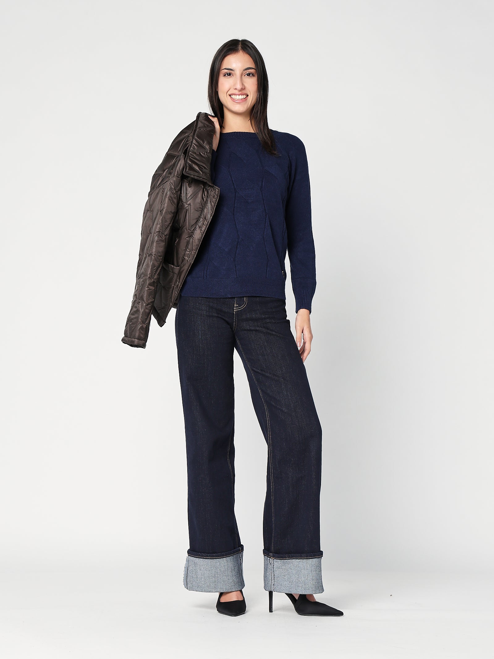 Maglia girocollo dal taglio essenziale e lineare, perfetta come base neutra da valorizzare. Indossala con jeans a vita alta e blazer oversize per un look urbano, oppure sotto salopette o abiti smanicati per un effetto stratificato. Completa con sneakers bianche o ankle boots per equilibrio.