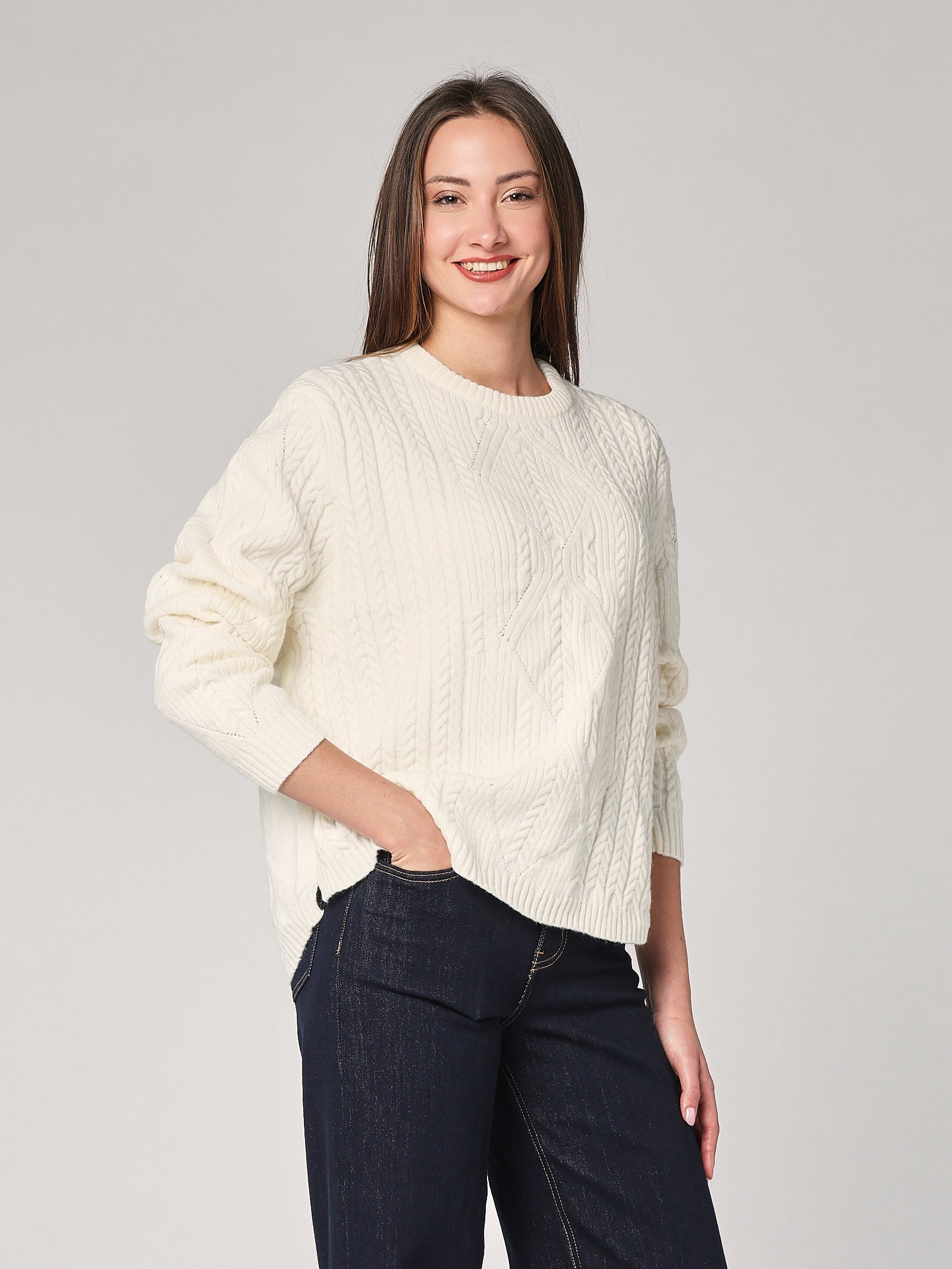 Maglia girocollo con trecce, un capo intramontabile che unisce comfort e raffinatezza. La lavorazione intrecciata dona texture e carattere, mentre la linea morbida e il filato caldo la rendono perfetta per la stagione fredda. Un must-have per chi ama lo stile cozy chic.