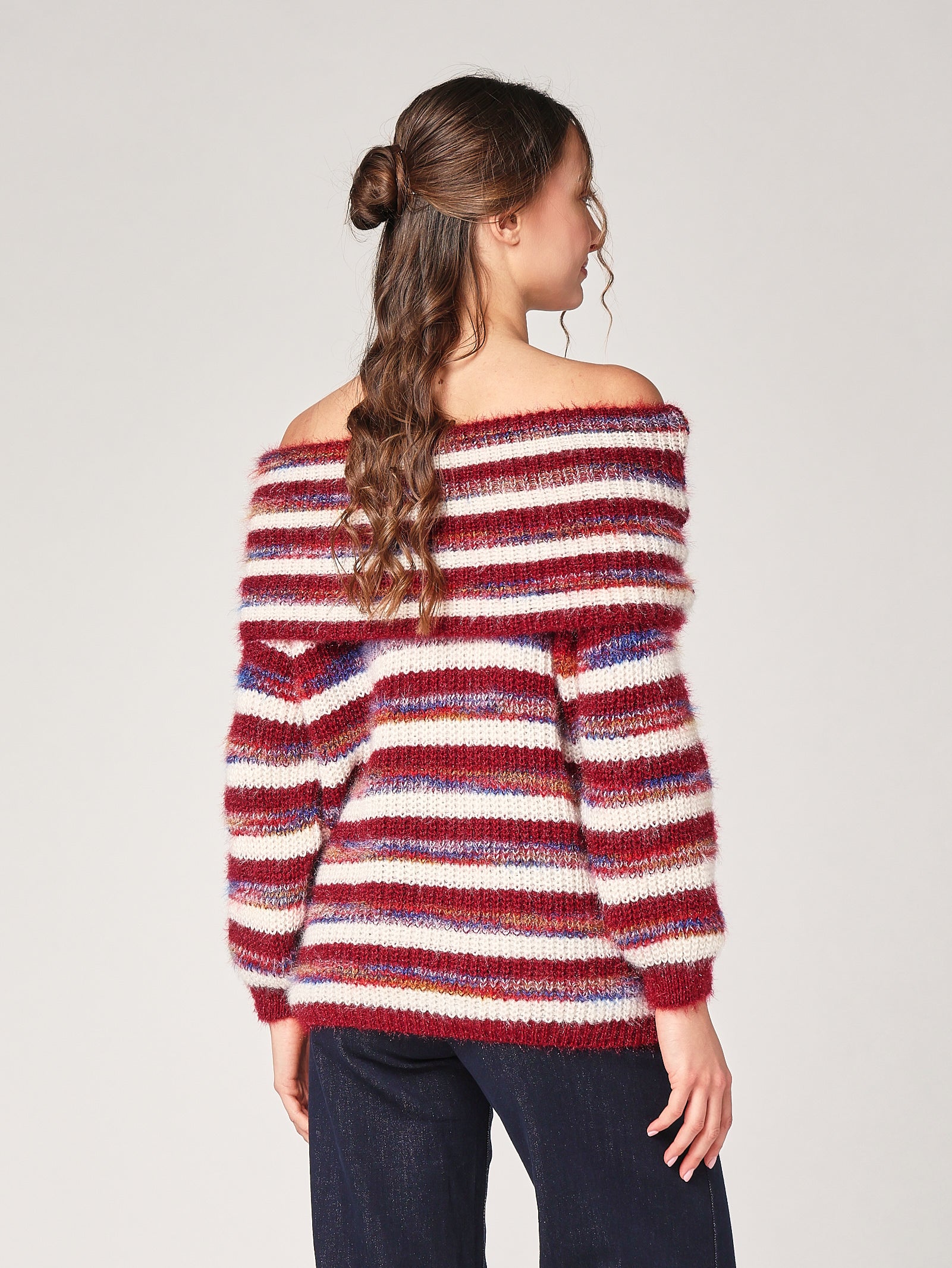 Maglione a righe con collo a fascia, perfetto per aggiungere un tocco sofisticato ai look di stagione. Le righe eleganti e il collo alto donano un’allure contemporanea, mentre la maglia morbida assicura calore e comfort tutto il giorno.