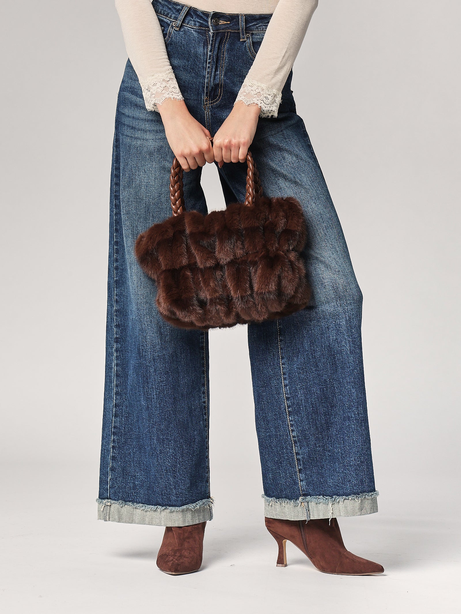 - Borsa pelliccia mani trecce
