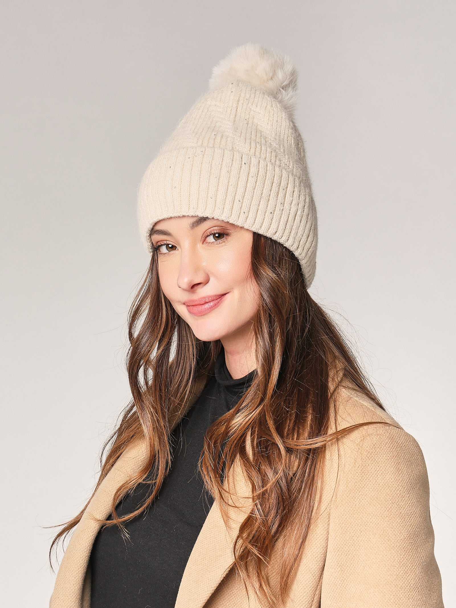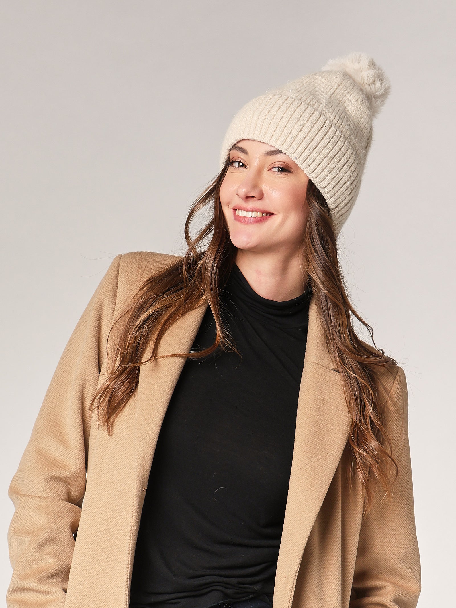 Cappello in maglia impreziosito da filo lurex, un accessorio caldo e luminoso pensato per dare un tocco elegante ai look di stagione. La lavorazione morbida e la struttura elastica assicurano comfort e una vestibilità avvolgente.