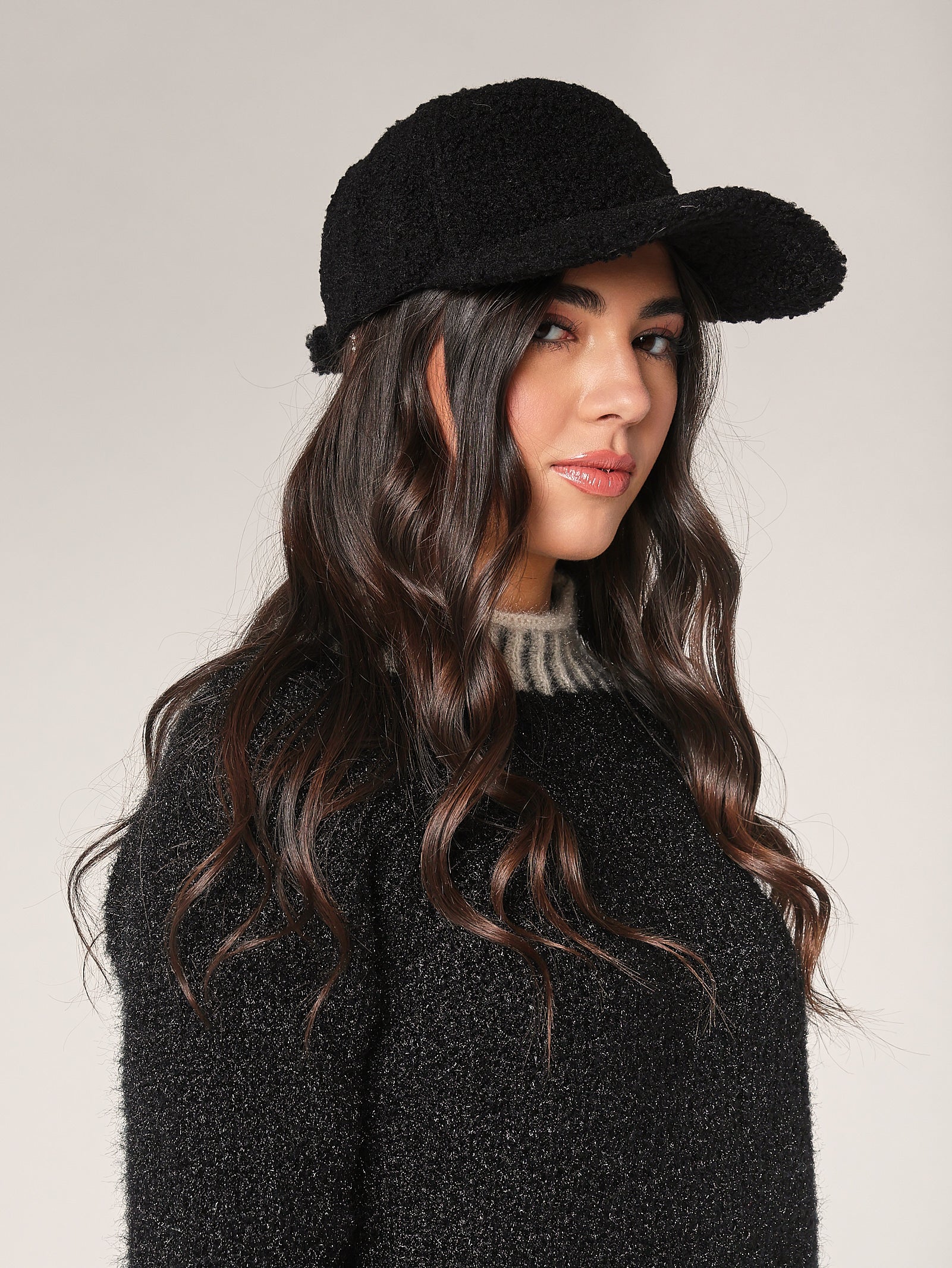 Cappello effetto peluche dal design soffice e moderno, ideale per chi cerca un accessorio caldo e di tendenza. La texture plush crea un look cozy e glamour allo stesso tempo, rendendolo un must-have per l’inverno.