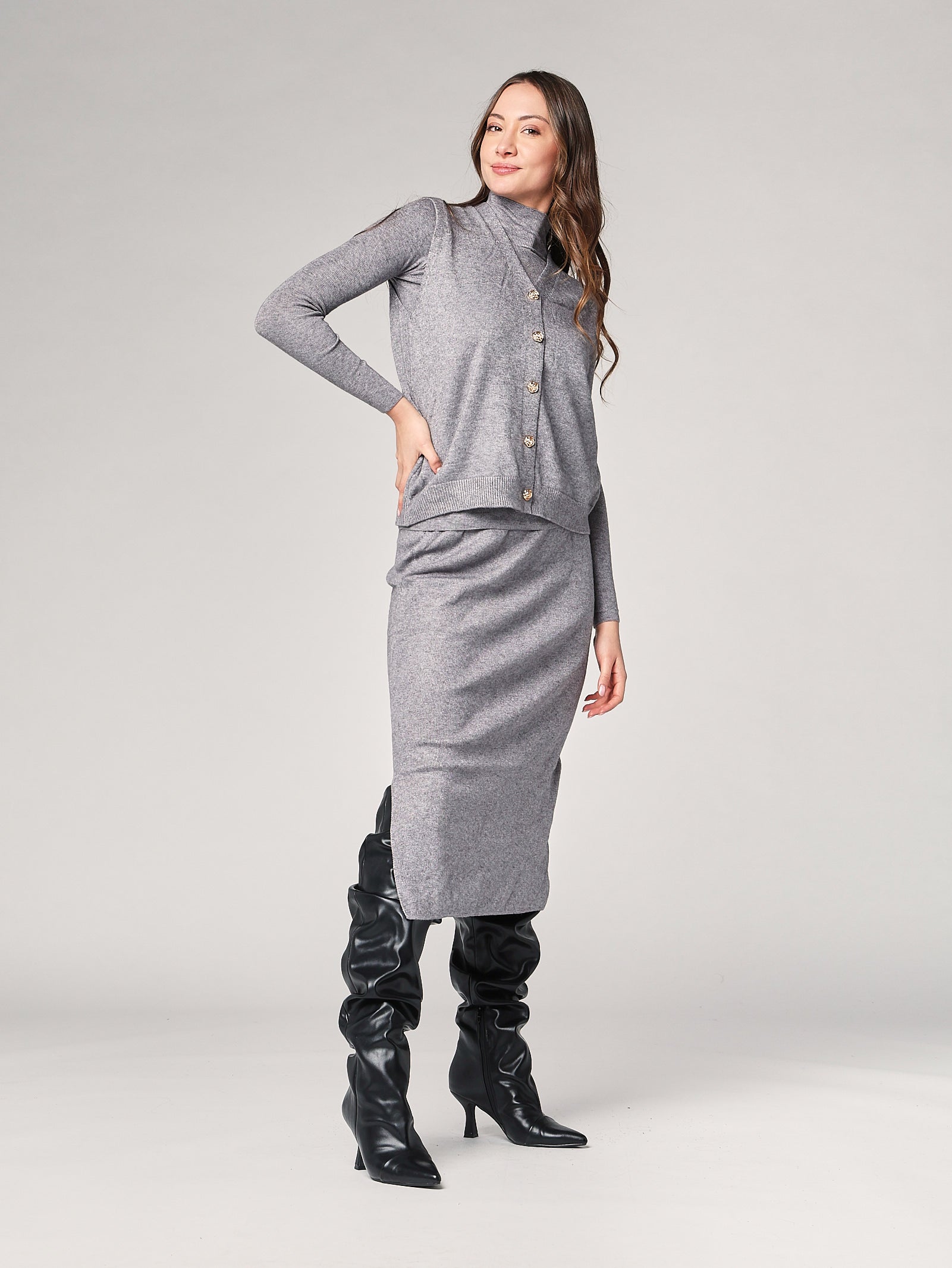 Completo tre pezzi dal design moderno e femminile, composto da top, cardigan e pantalone coordinati. La linea morbida e la texture confortevole rendono questo set ideale per creare look curati con un solo gesto, perfetto sia per la routine quotidiana che per momenti più chic.