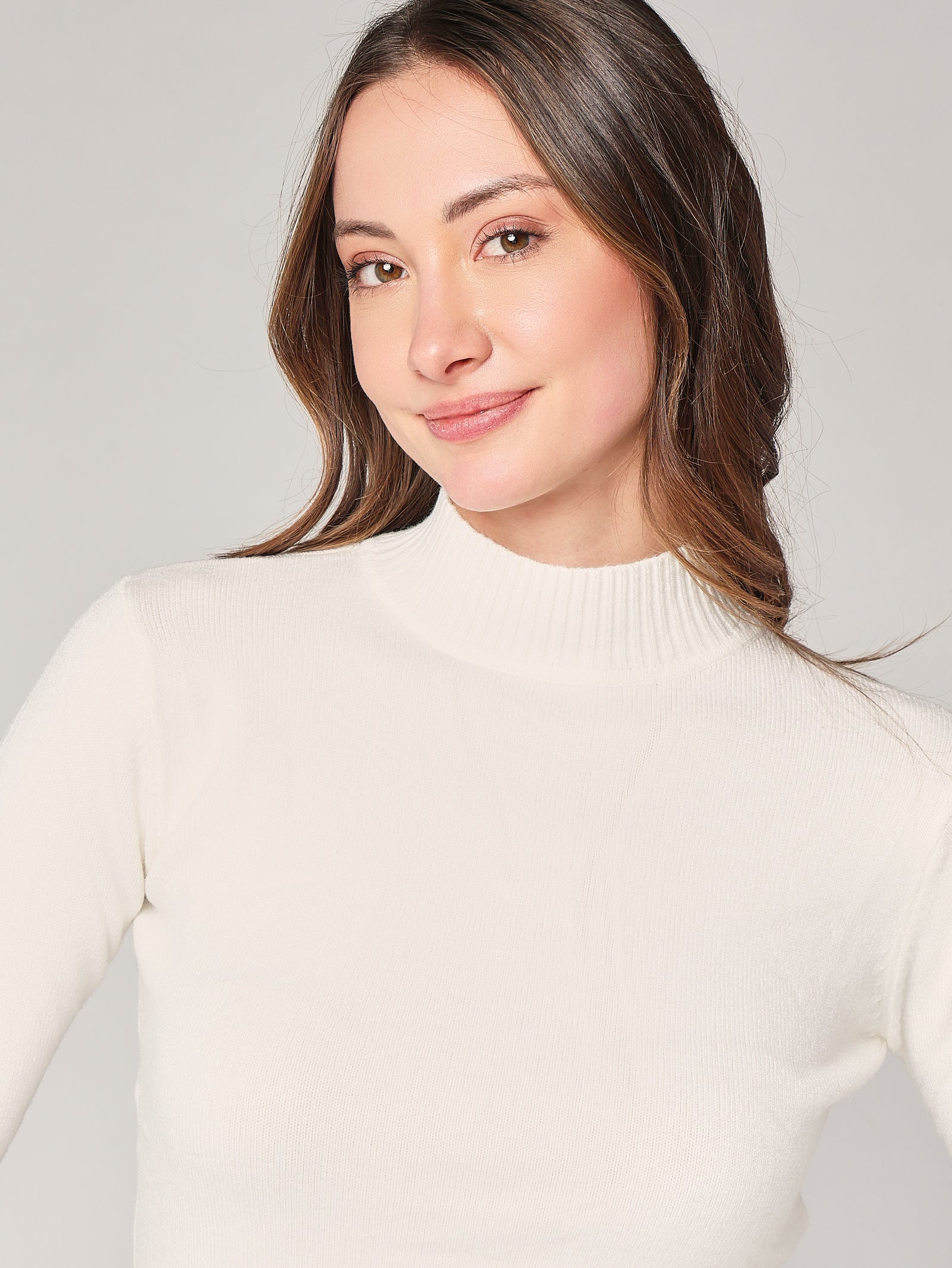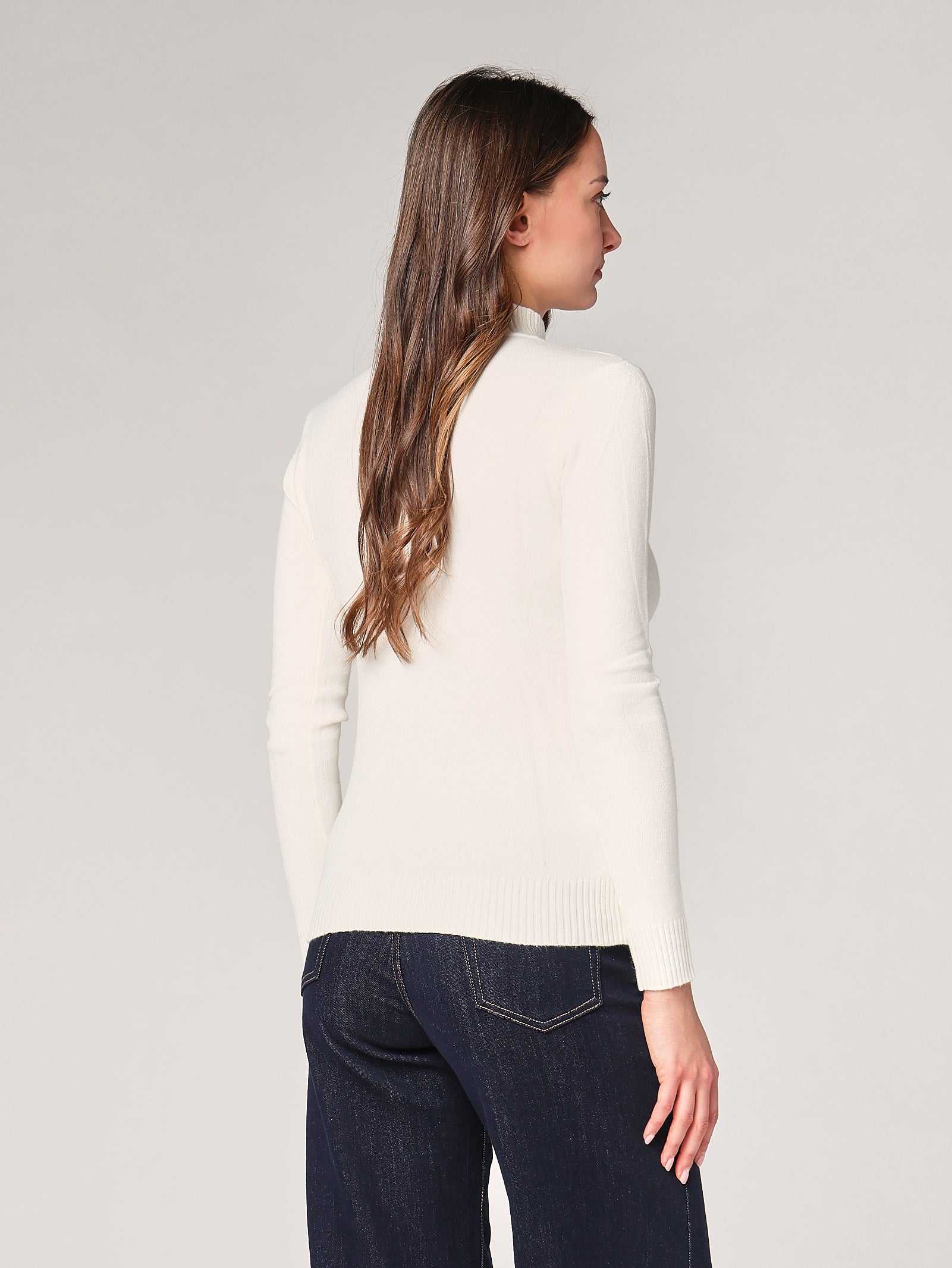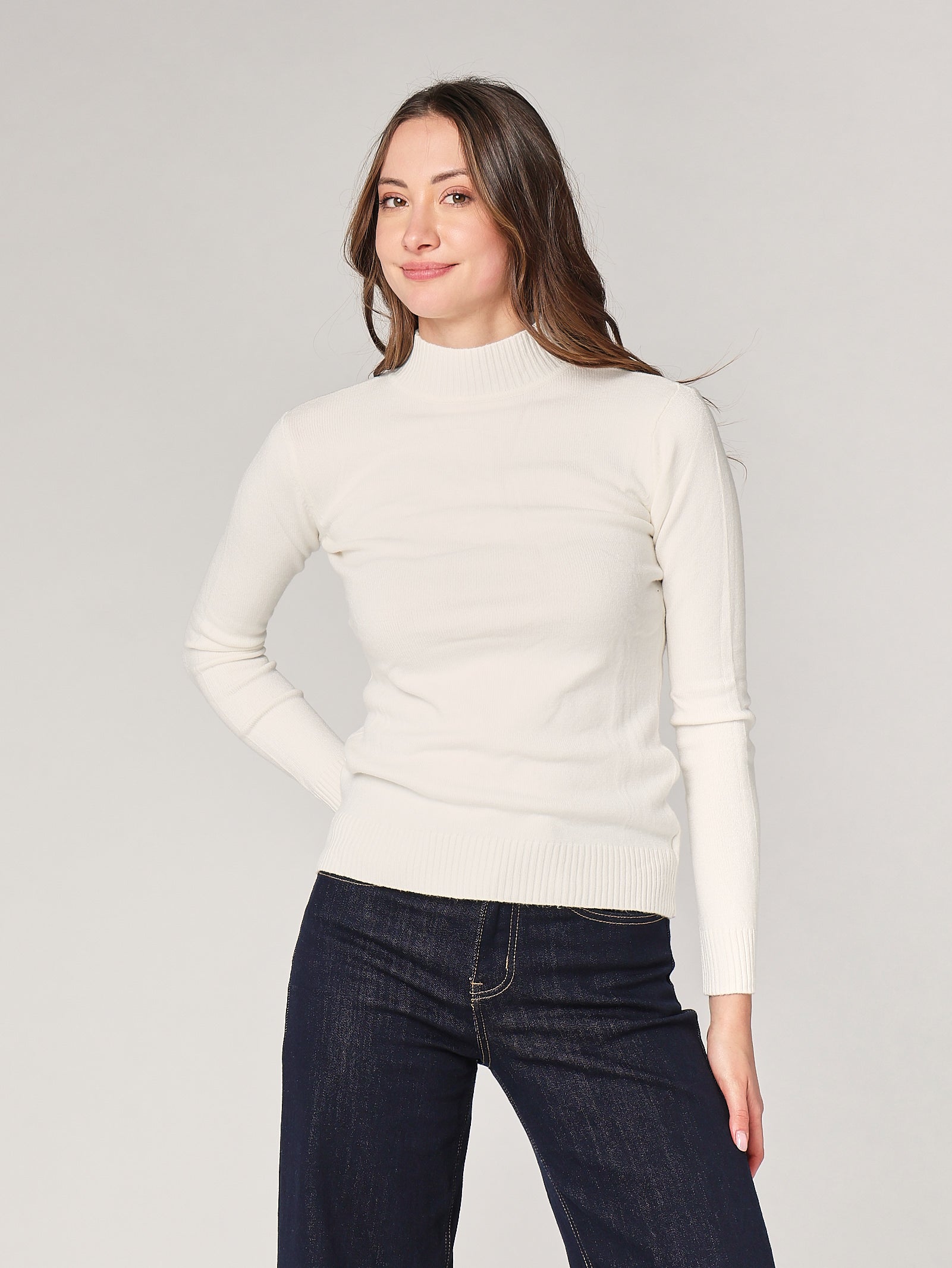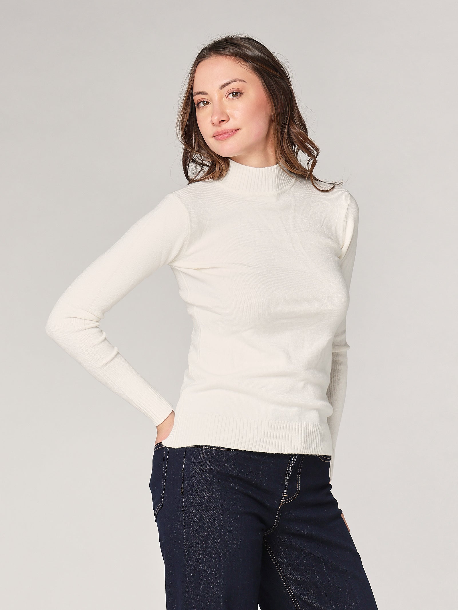 Lupetto in maglia dal design essenziale e femminile, pensato per accompagnare i look quotidiani con un tocco pulito e raffinato. La texture morbida e il collo alto avvolgente lo rendono un capo versatile, ideale per la stagione.