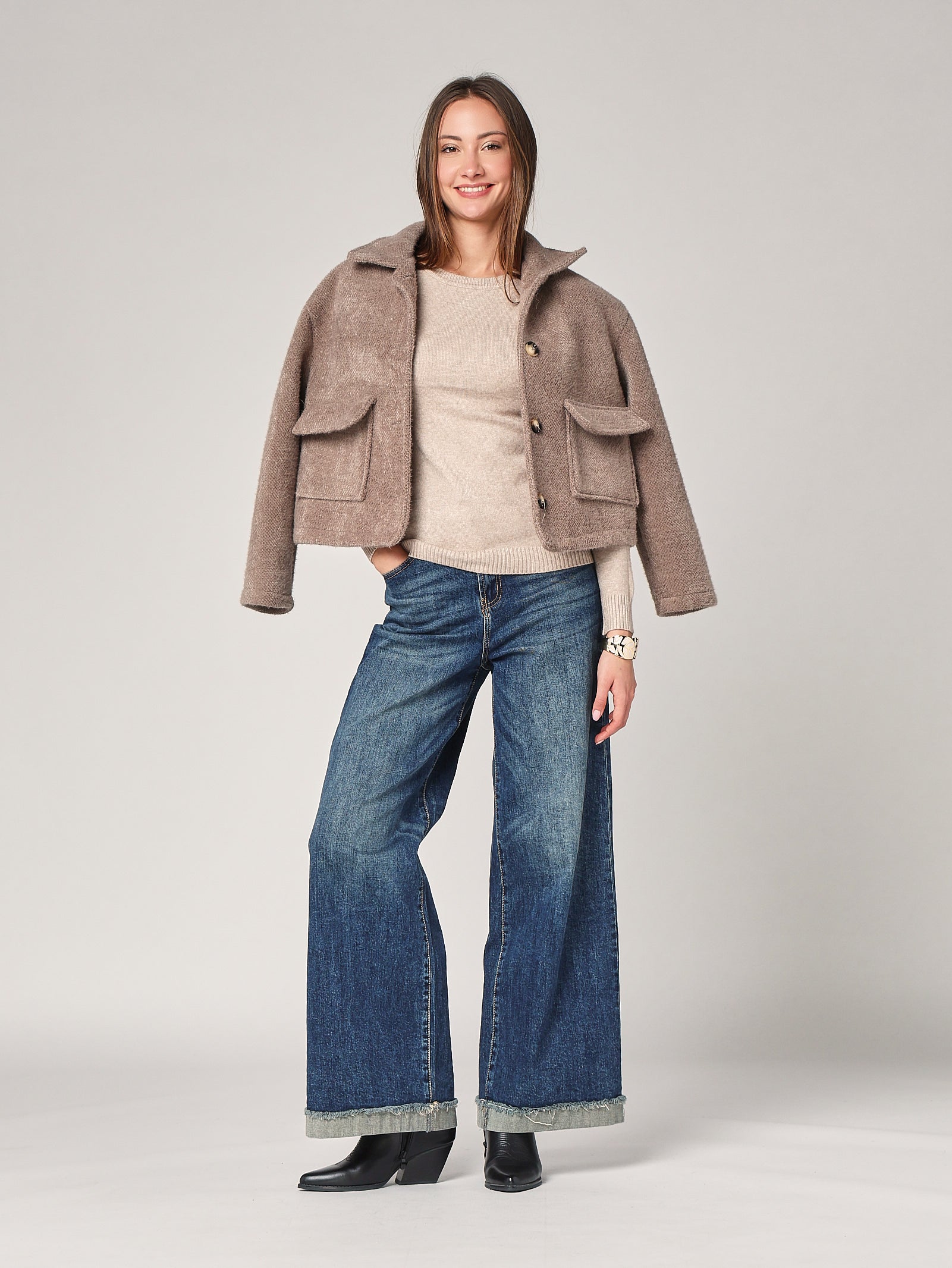 Dettaglio sartoriale: girocollo classico e finiture pulite