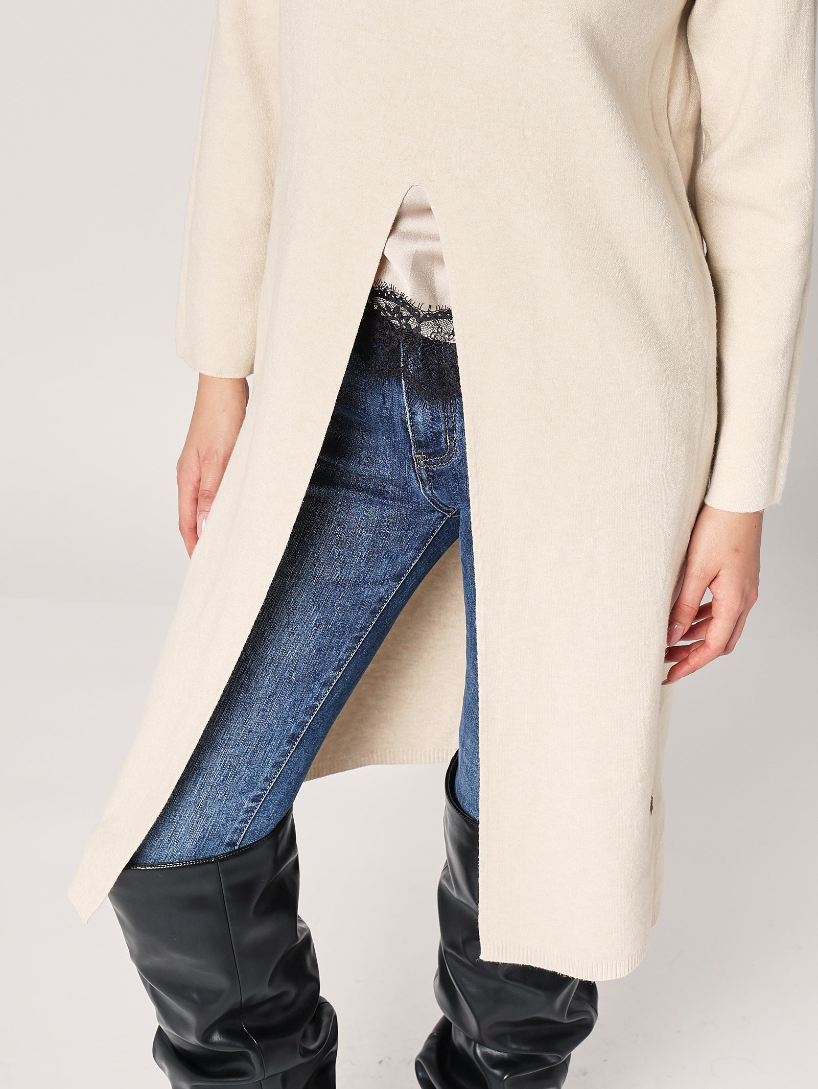 Maglia lunga con spacco moderno, dal fascino urban e sofisticato. Il taglio pulito e la lunghezza asimmetrica la rendono perfetta per chi ama uno stile minimal ma deciso. Facile da abbinare, è un capo che trasforma anche l’outfit più semplice in qualcosa di unico.