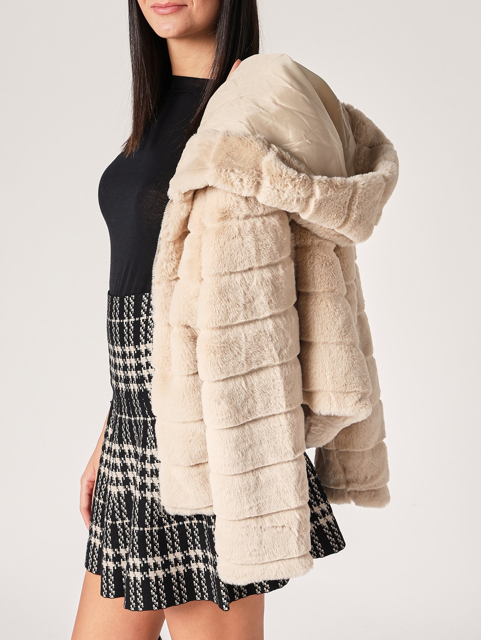 - Pelliccia con cappuccio