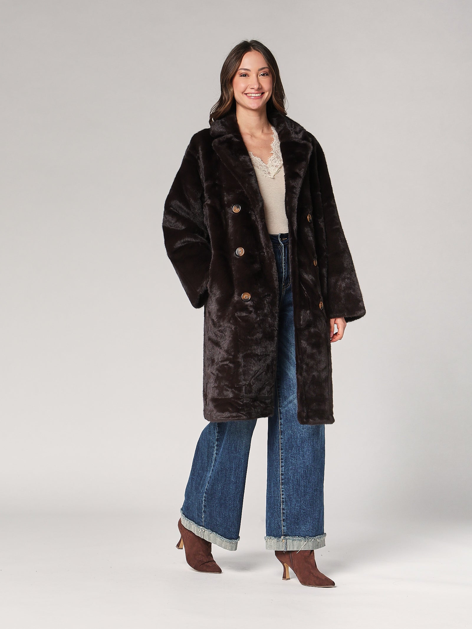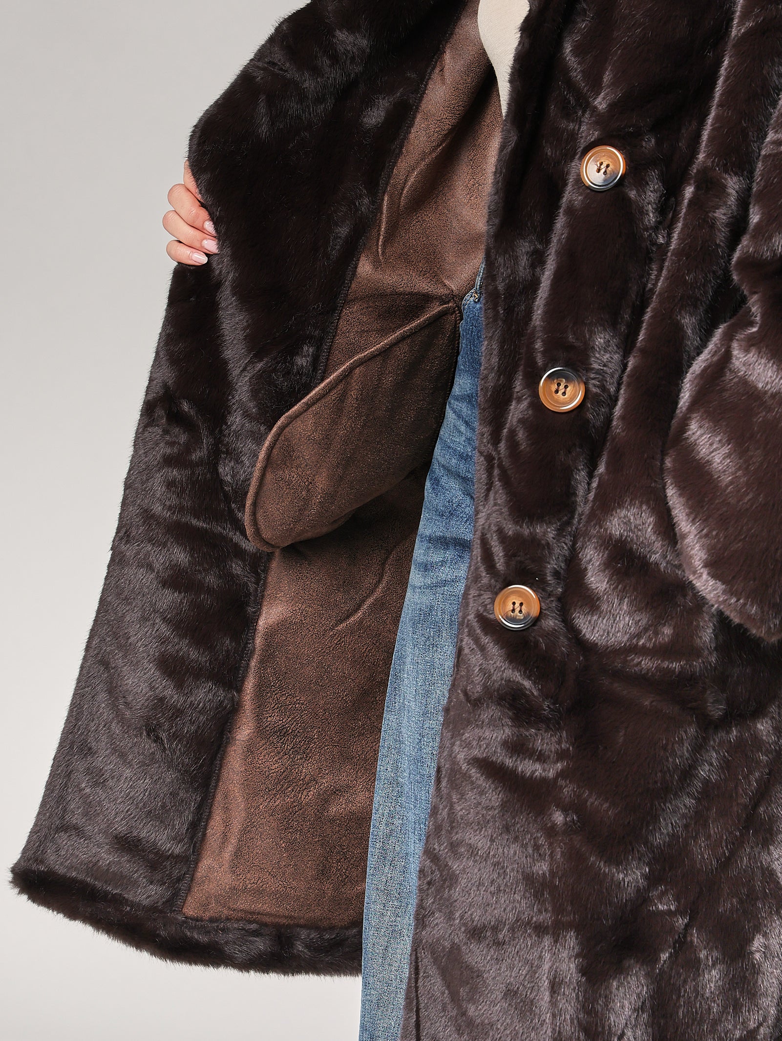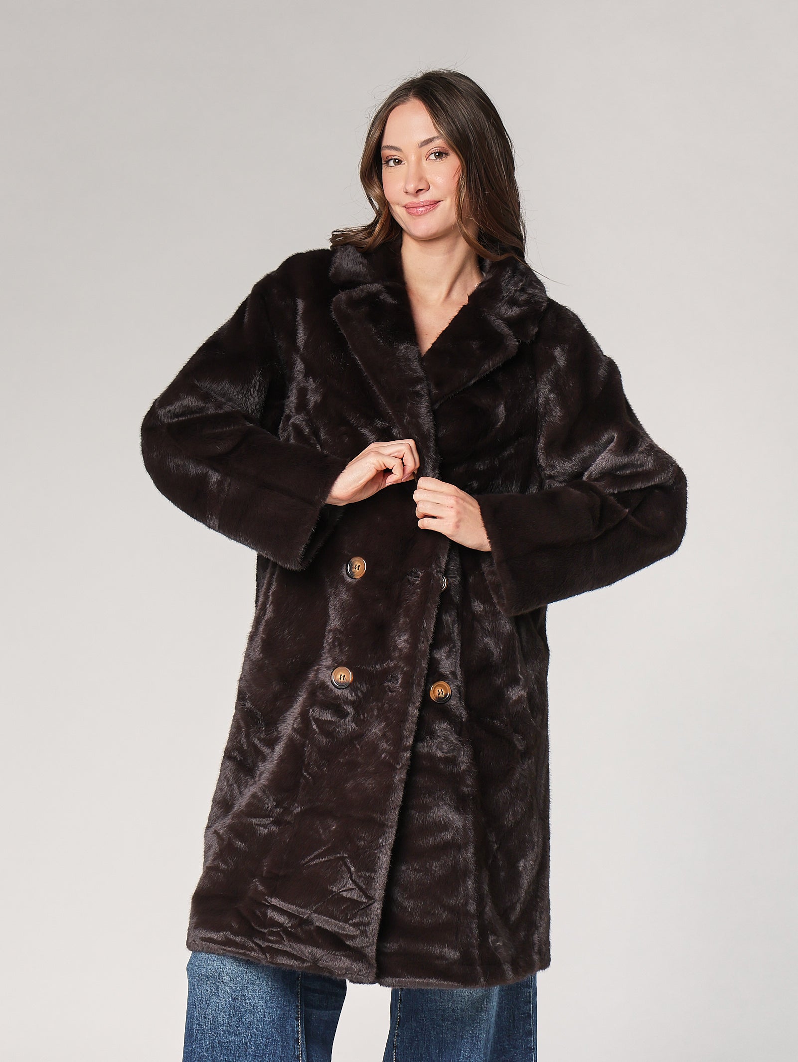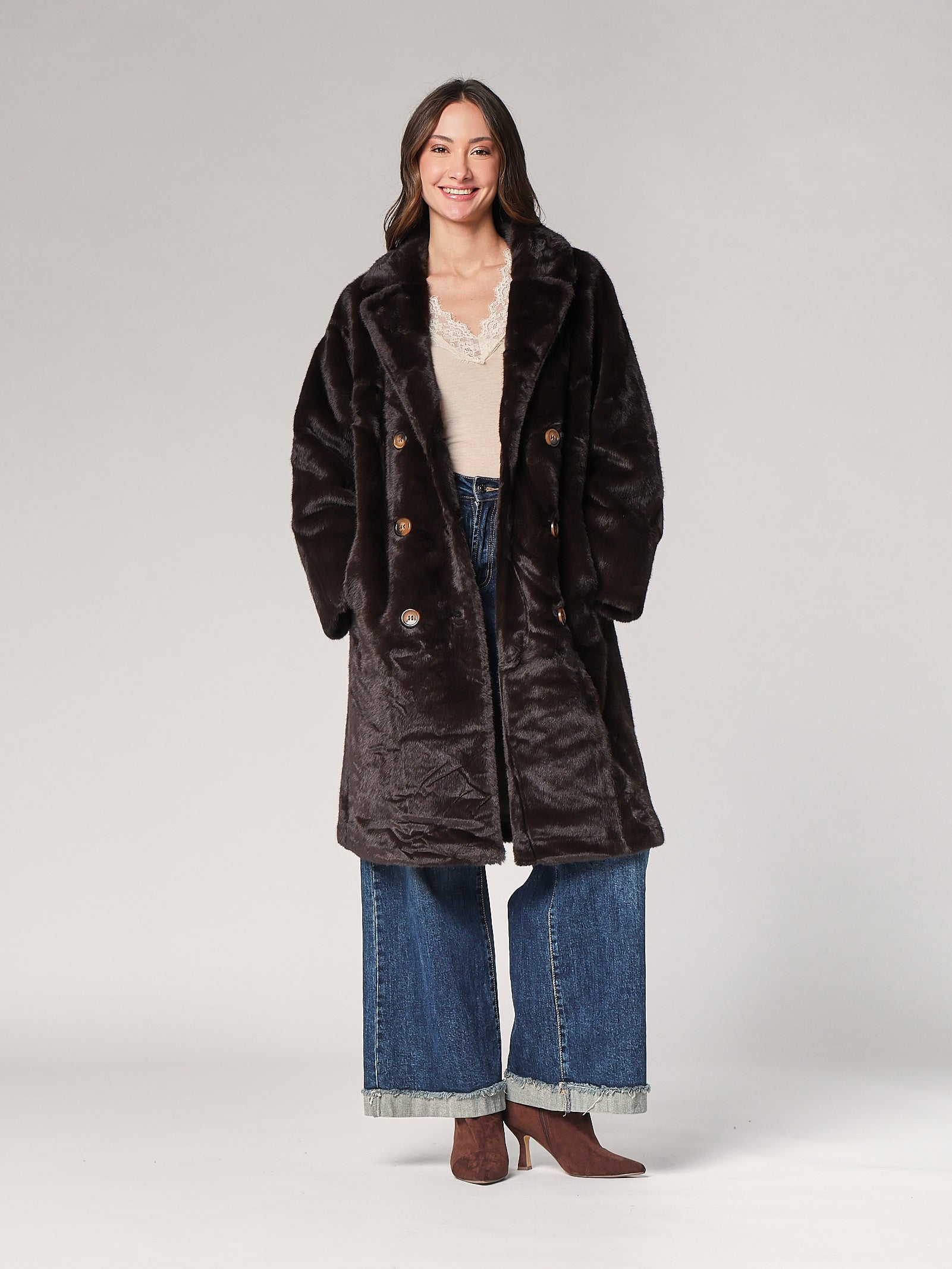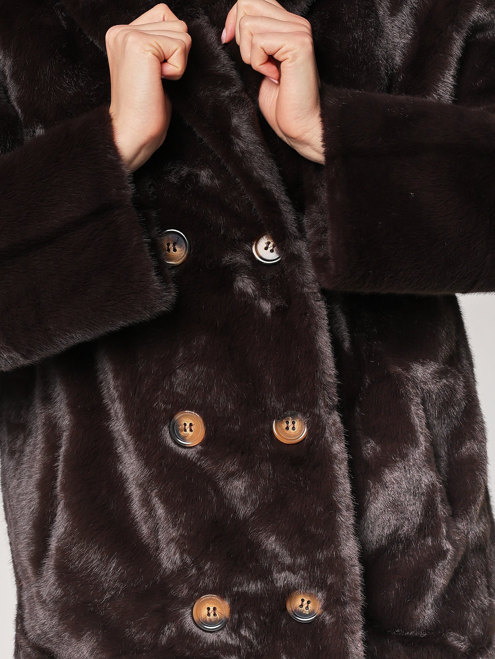 Pelliccia lunga doppiopetto dal fascino sofisticato, pensata per chi ama capi caldi ma dallo stile impeccabile. La struttura morbida e il taglio pulito donano un effetto elegante e versatile, ideale per completare look sia casual che eleganti.