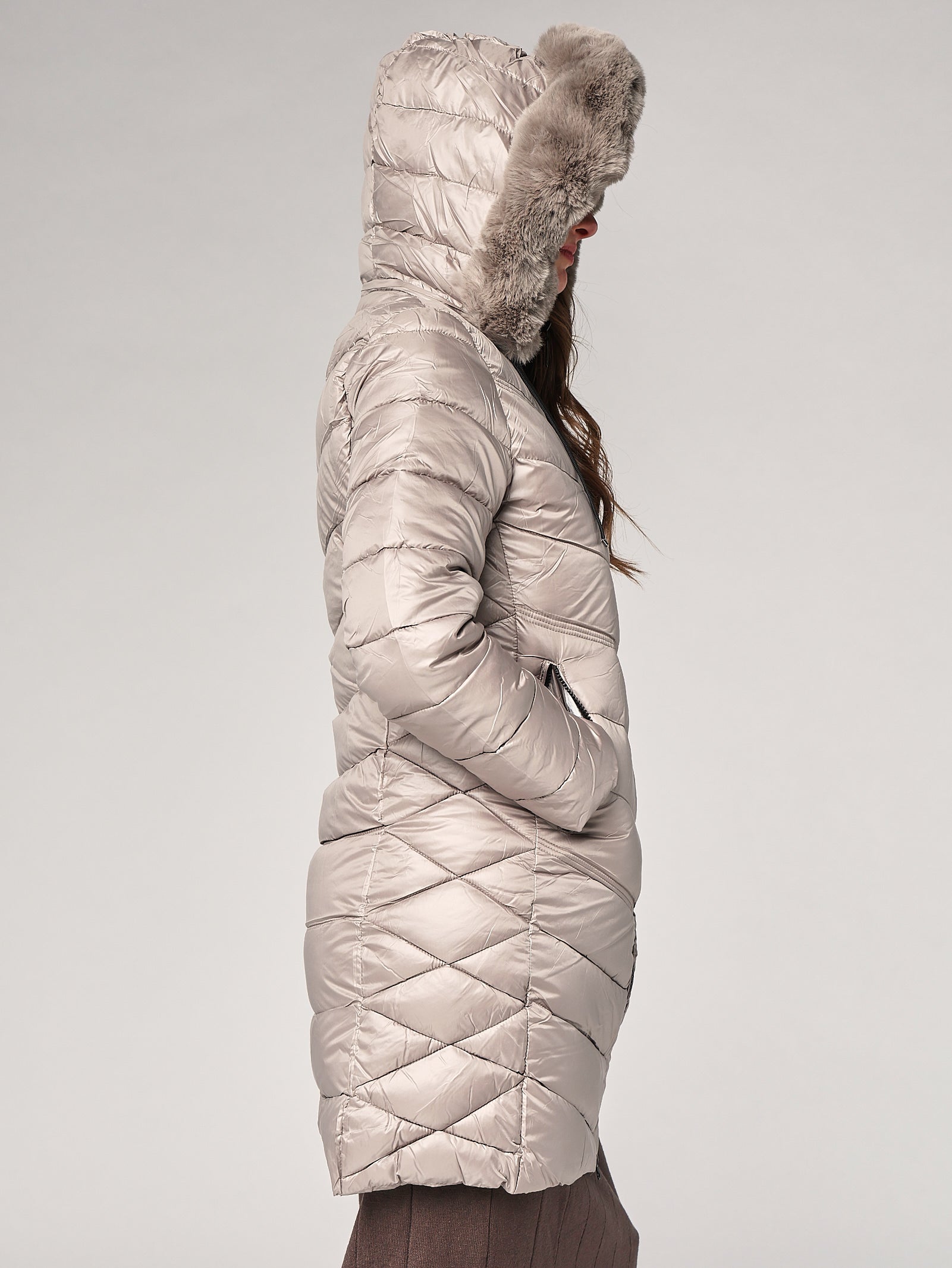Dettagli sartoriali: cappuccio comodo, trapuntatura lineare, rifiniture pulite