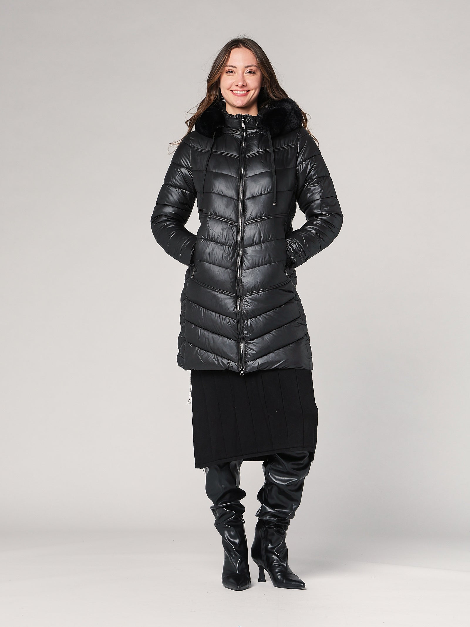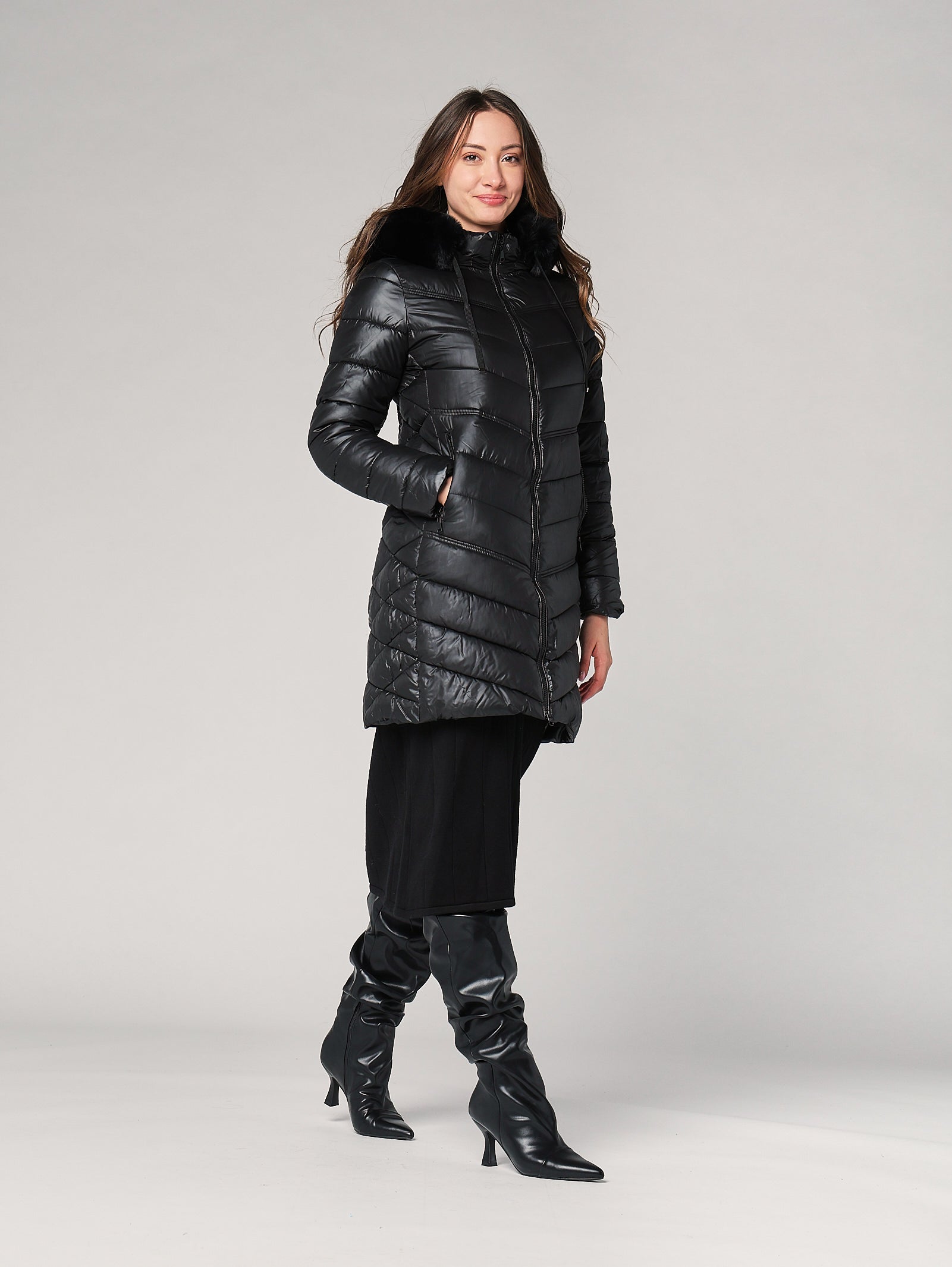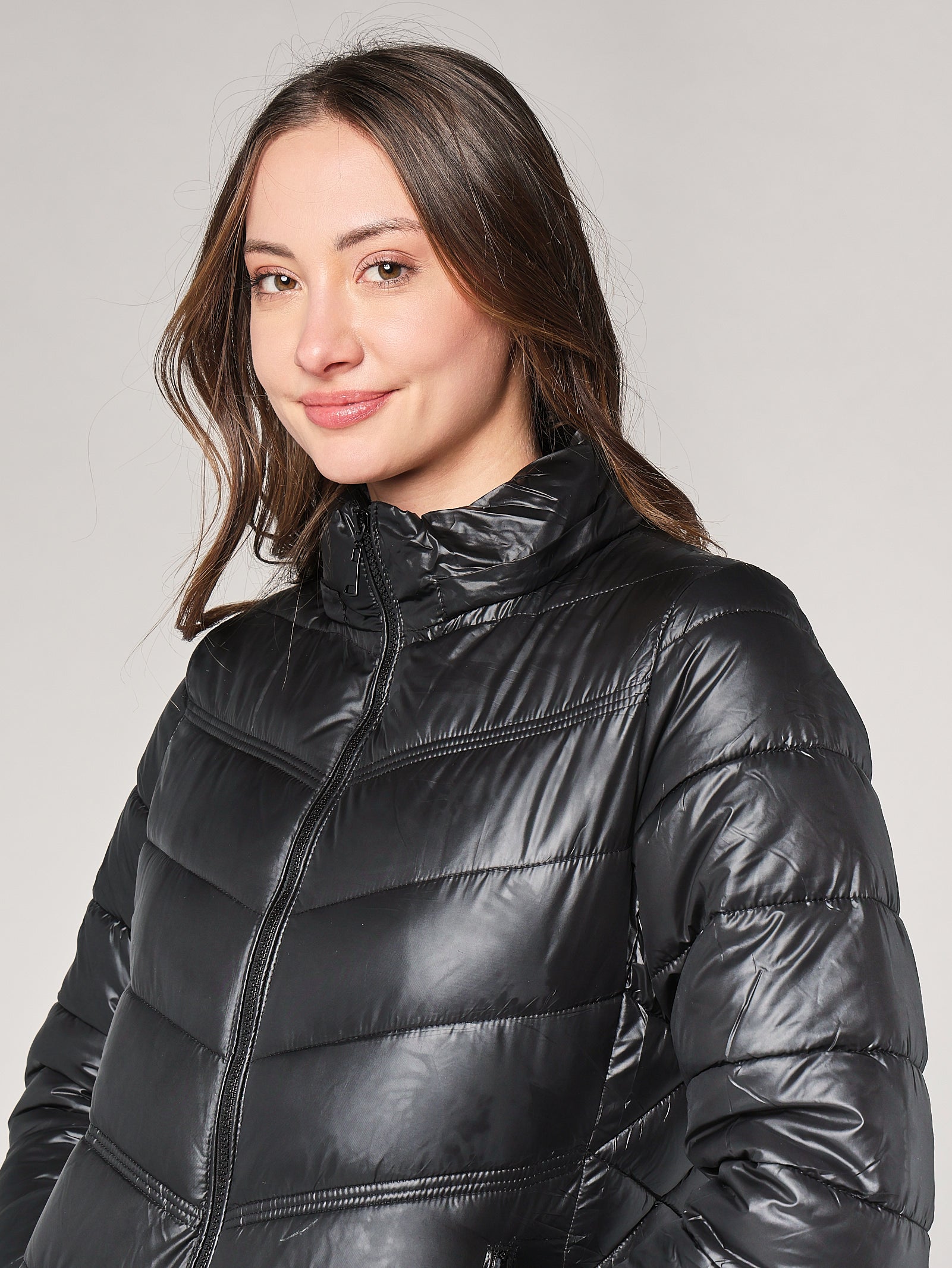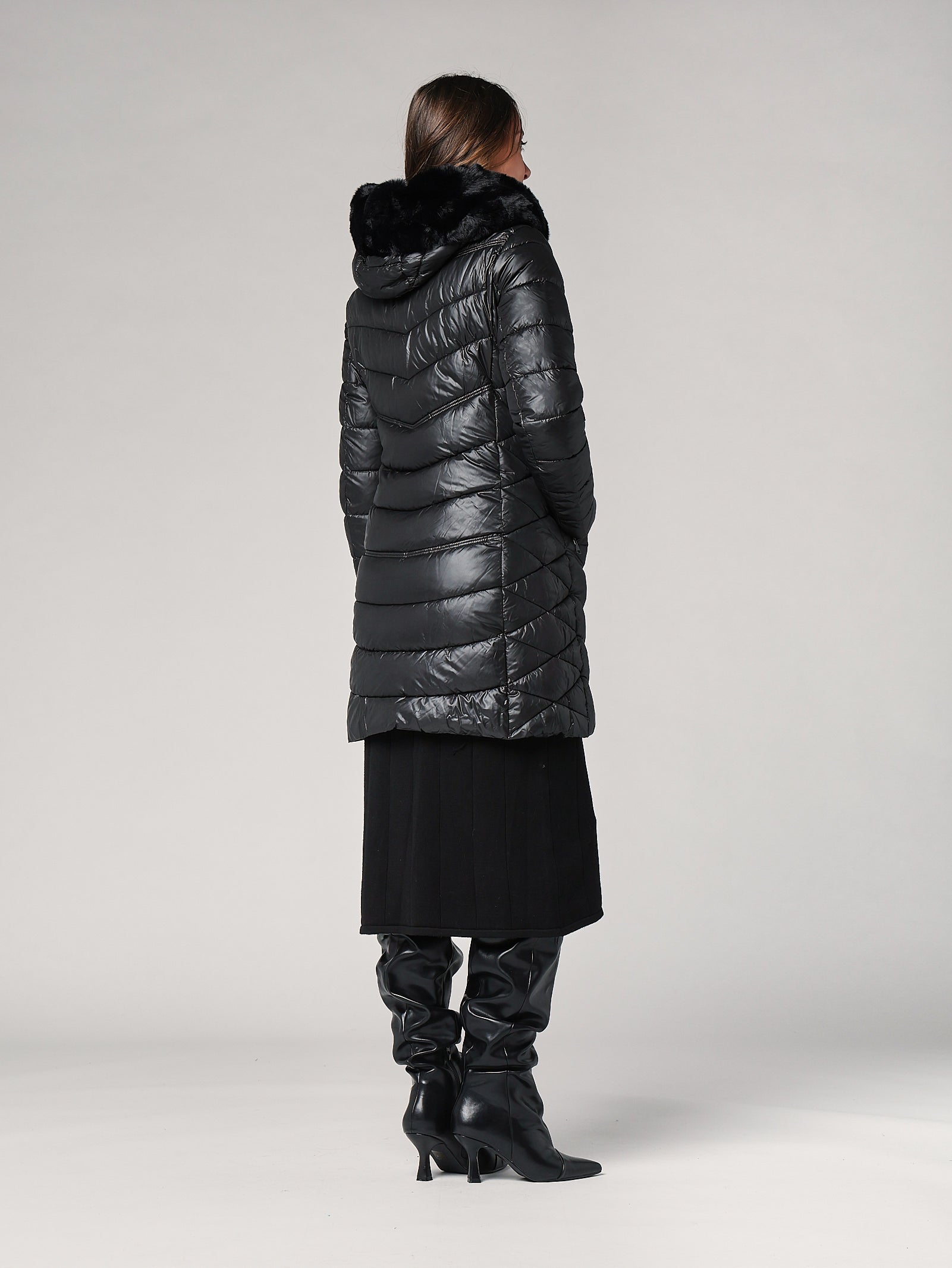 Piumino medio con cappuccio dal design moderno e versatile, pensato per garantire calore e leggerezza durante tutta la stagione fredda. La trapuntatura uniforme valorizza la silhouette, mentre il cappuccio avvolgente aggiunge praticità e un tocco contemporaneo.