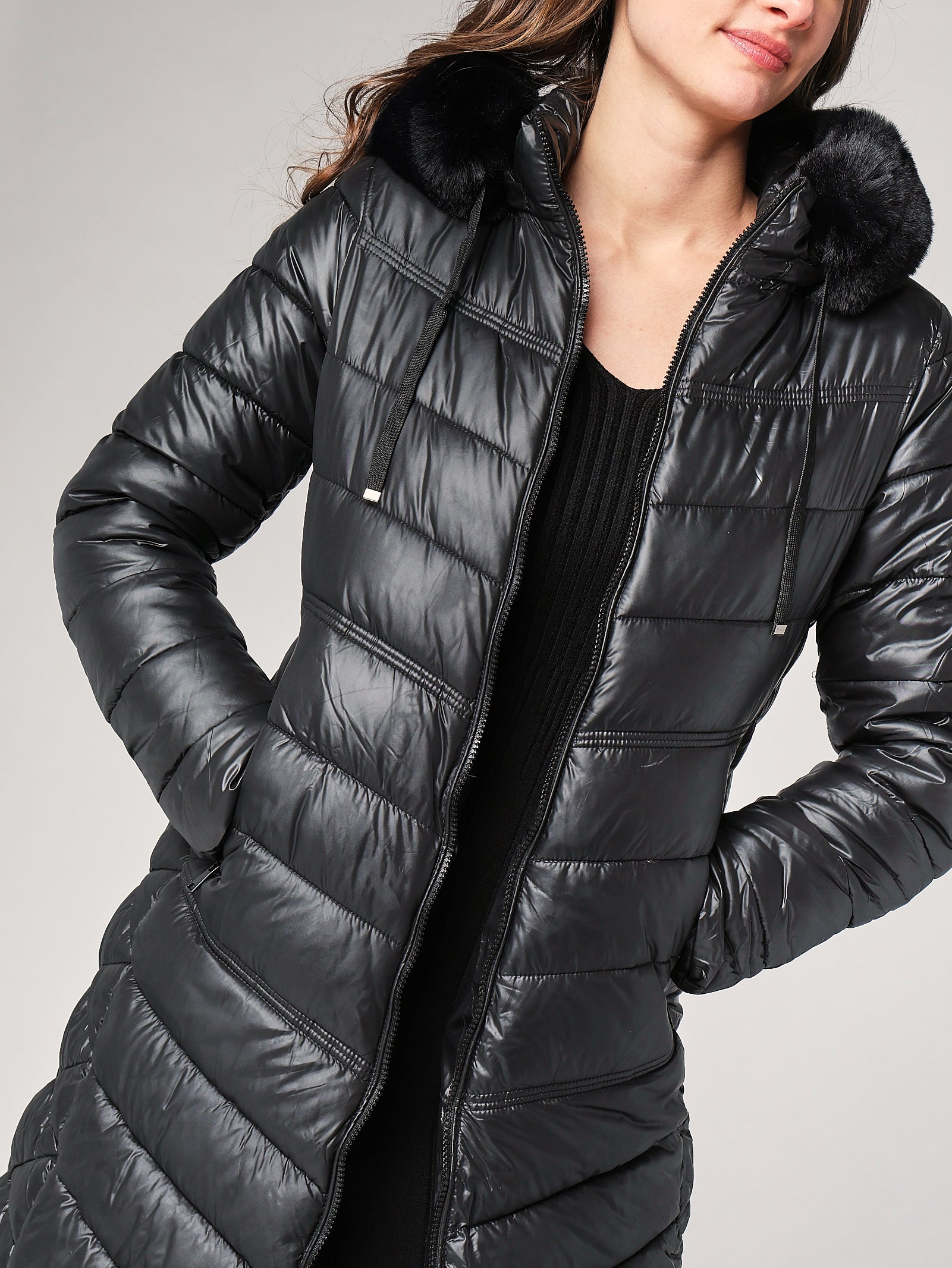 Dettagli sartoriali: trapuntatura compatta, cappuccio morbido, finiture curate