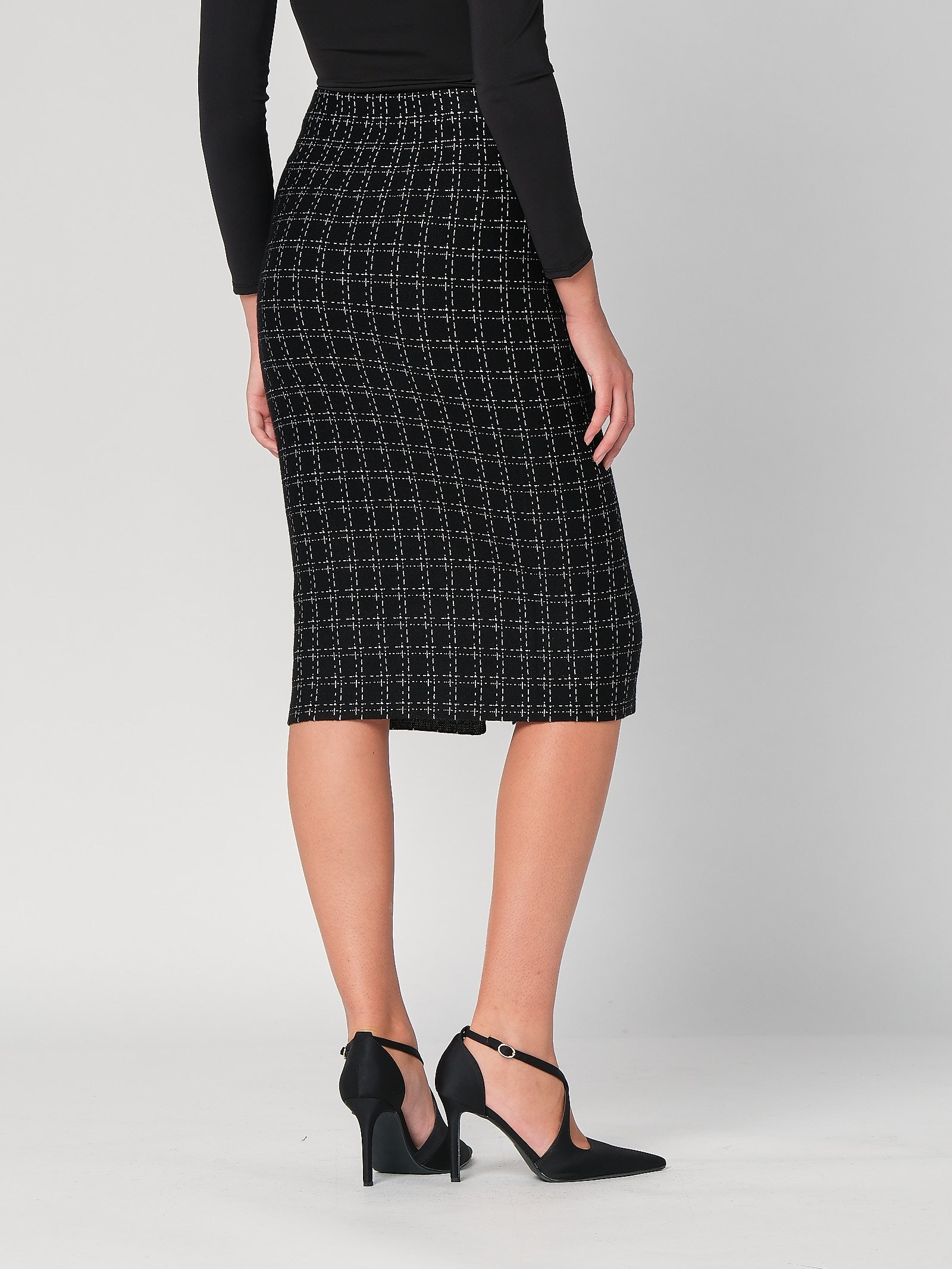 Linea slanciante: taglio dritto che allunga la figura, proporzioni bilanciate stile gonna midi