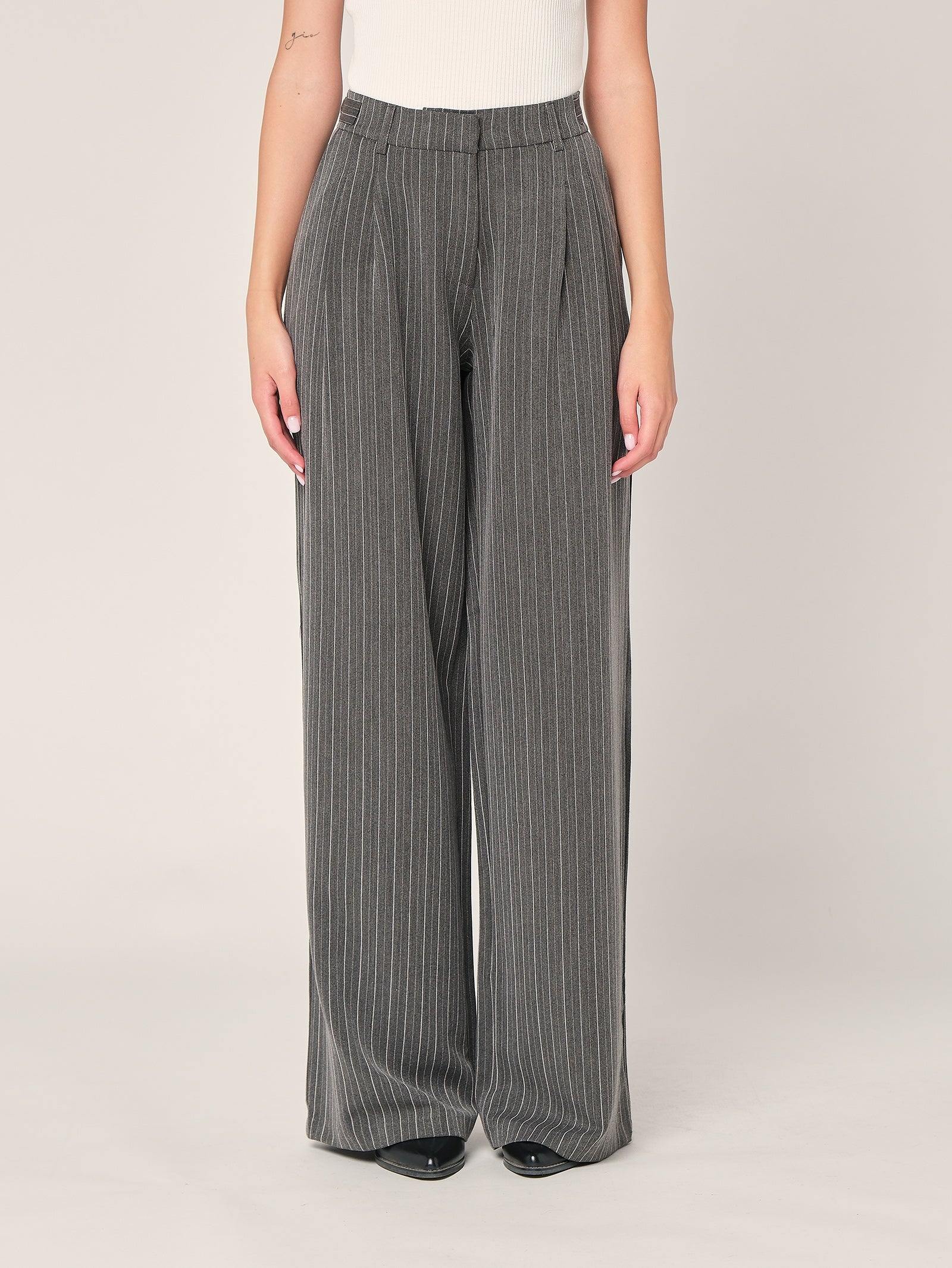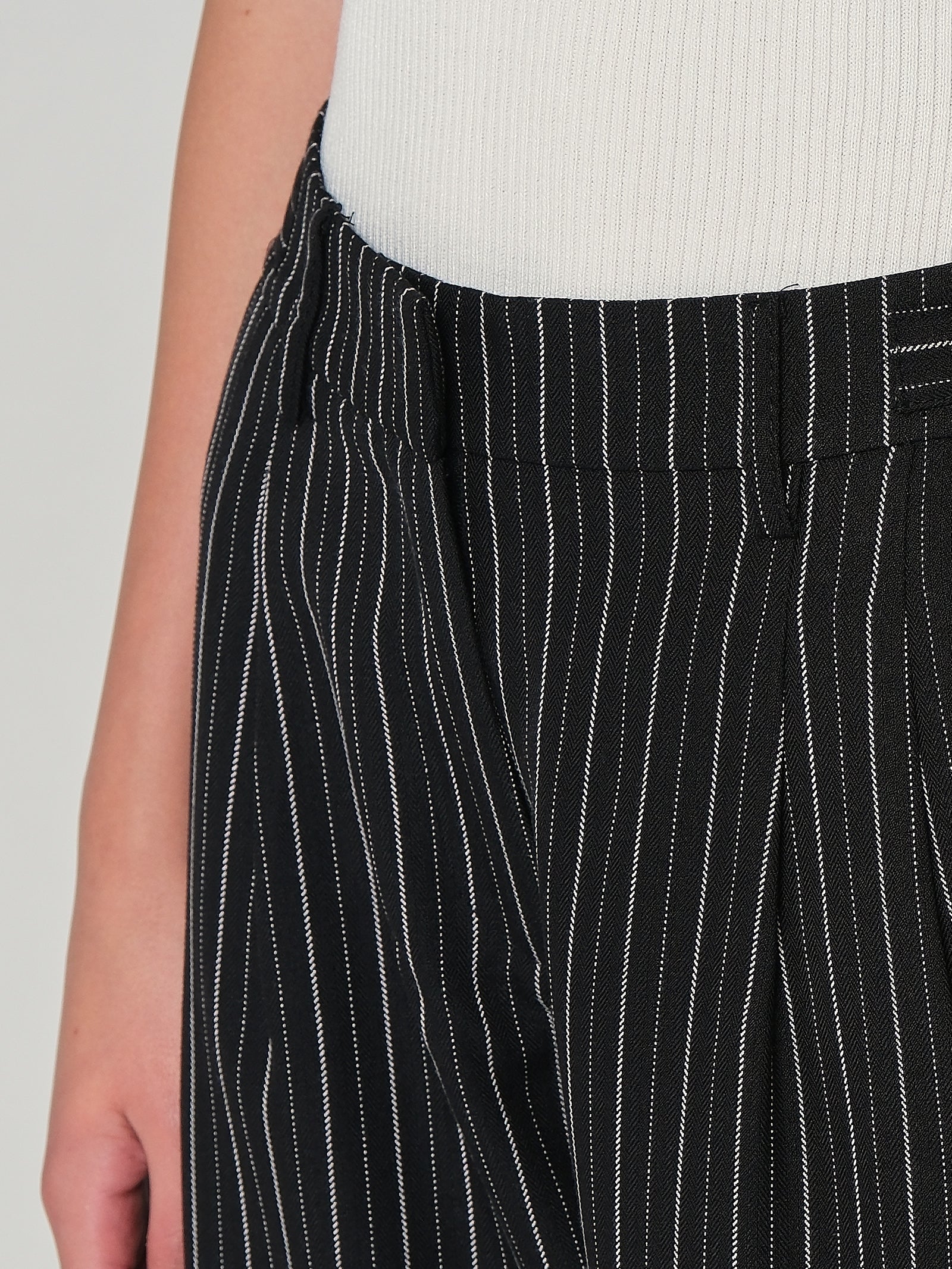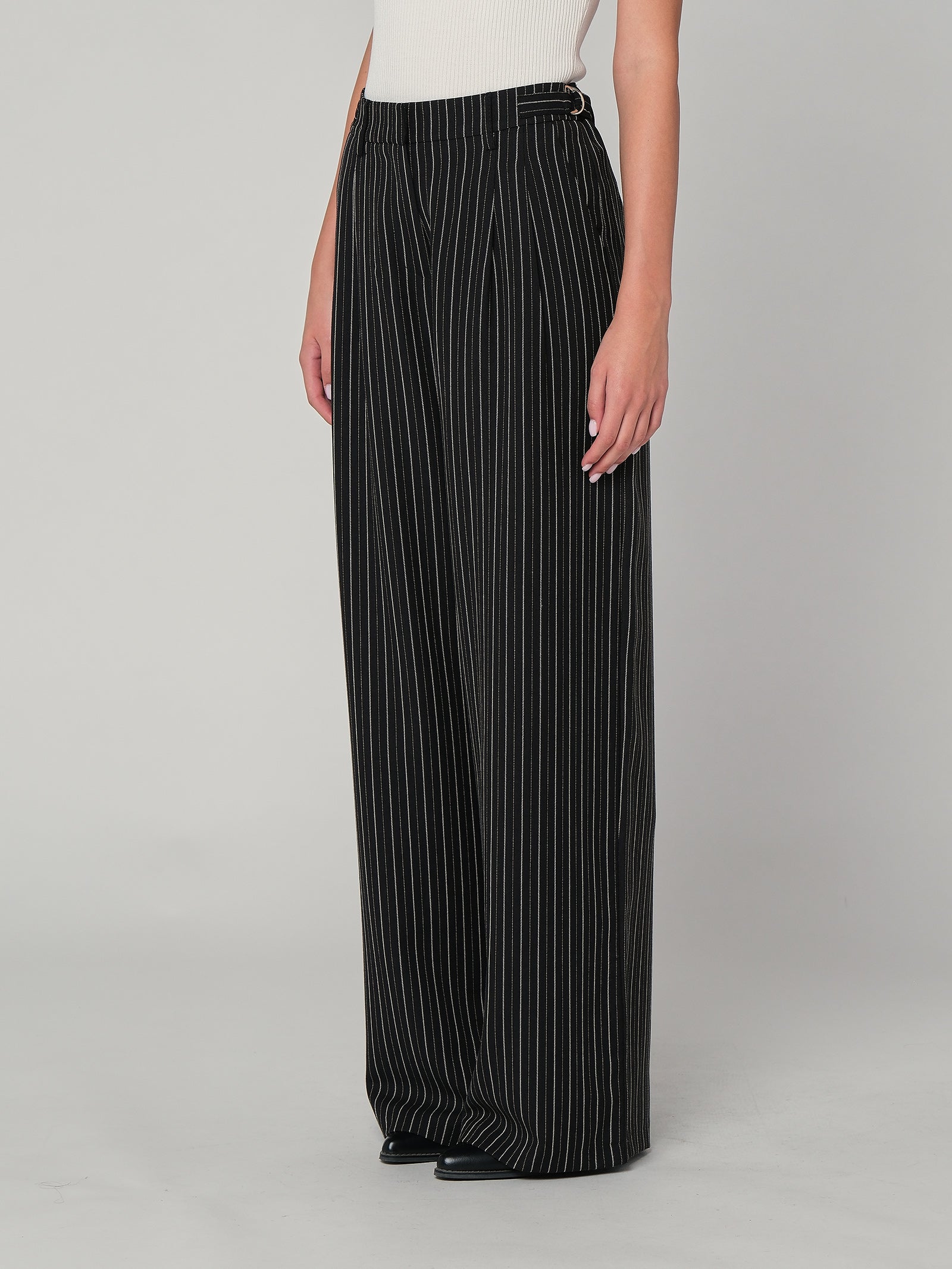 Pantaloni a palazzo a righe, con elastico in vita e dettaglio con fibbia laterale.