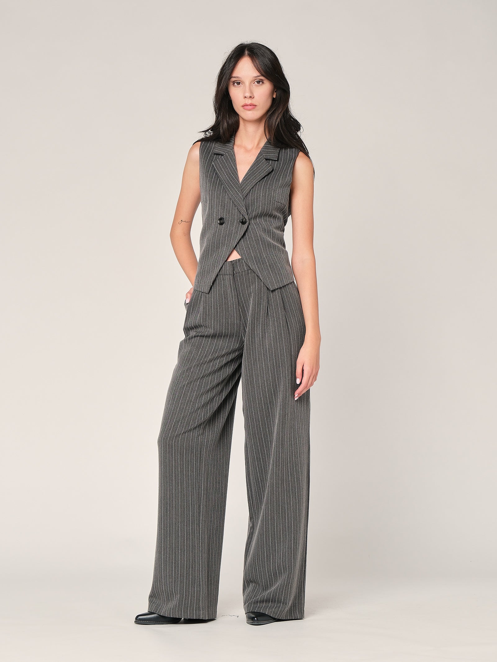Un capo versatile che unisce eleganza e praticità, perfetto sia con il blazer coordinato che con una camicia basica.