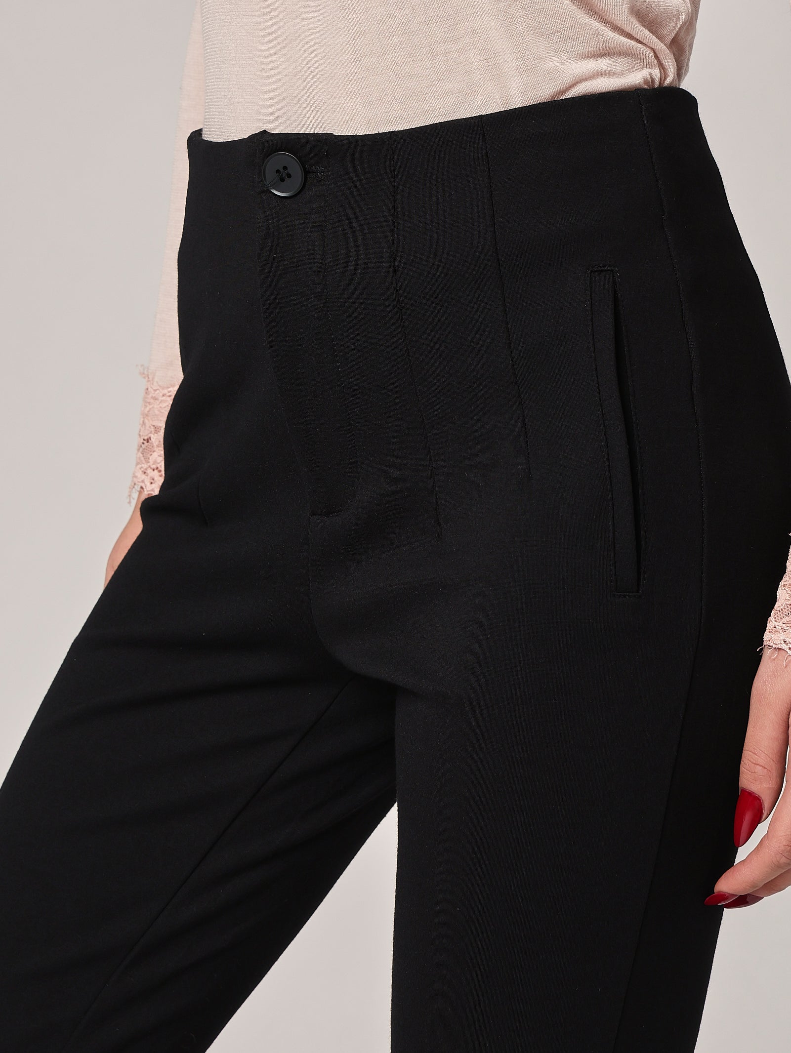 Pantalone a sigaretta essenziale e raffinato, ideale per creare outfit impeccabili con una linea sempre ordinata. La sua struttura lo rende perfetto per look professionali o casual chic, mantenendo comfort e stile dalla mattina alla sera.