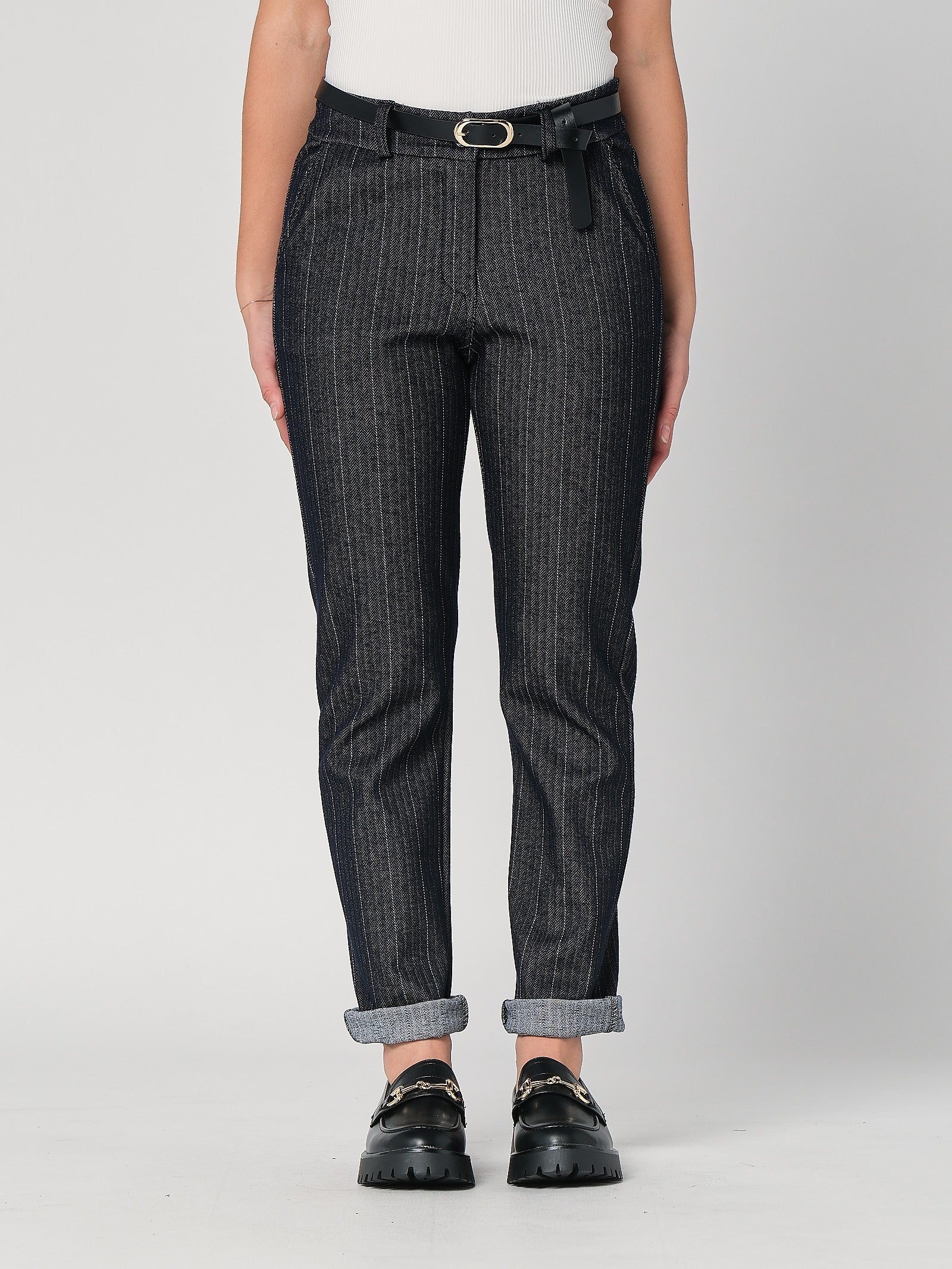Categoria: pantalone donna in chambray, fantasia a righe
